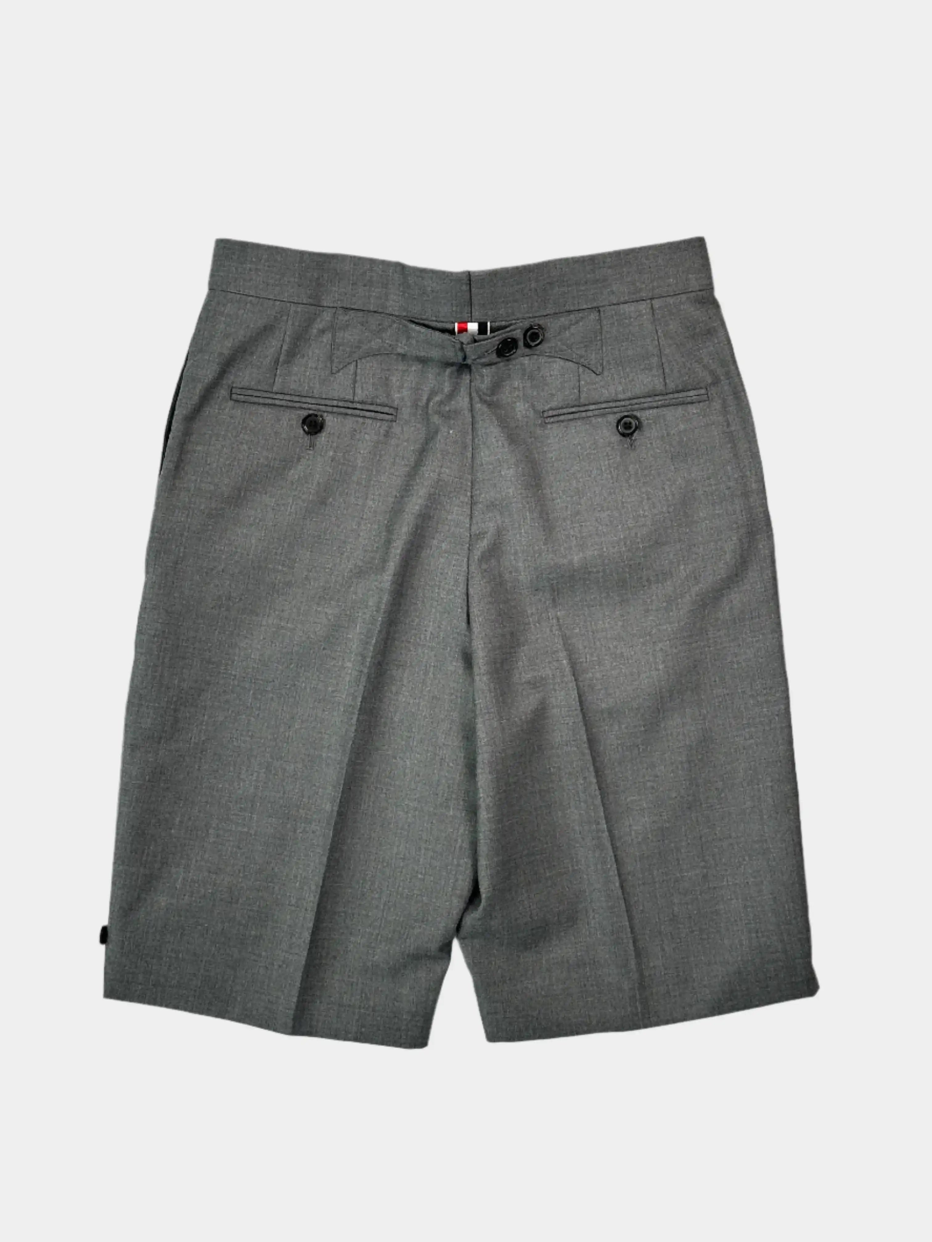 The Thom Browne Bermuda Shorts in Grey represent the essence of elegant and minimalist design. Crafted from high-quality fabric, these shorts stand out for their tailored cut and iconic brand details, such as side buttons and a clean design. Ideal for a casual chic or formal look, they are perfect for those seeking a refined and versatile style.
