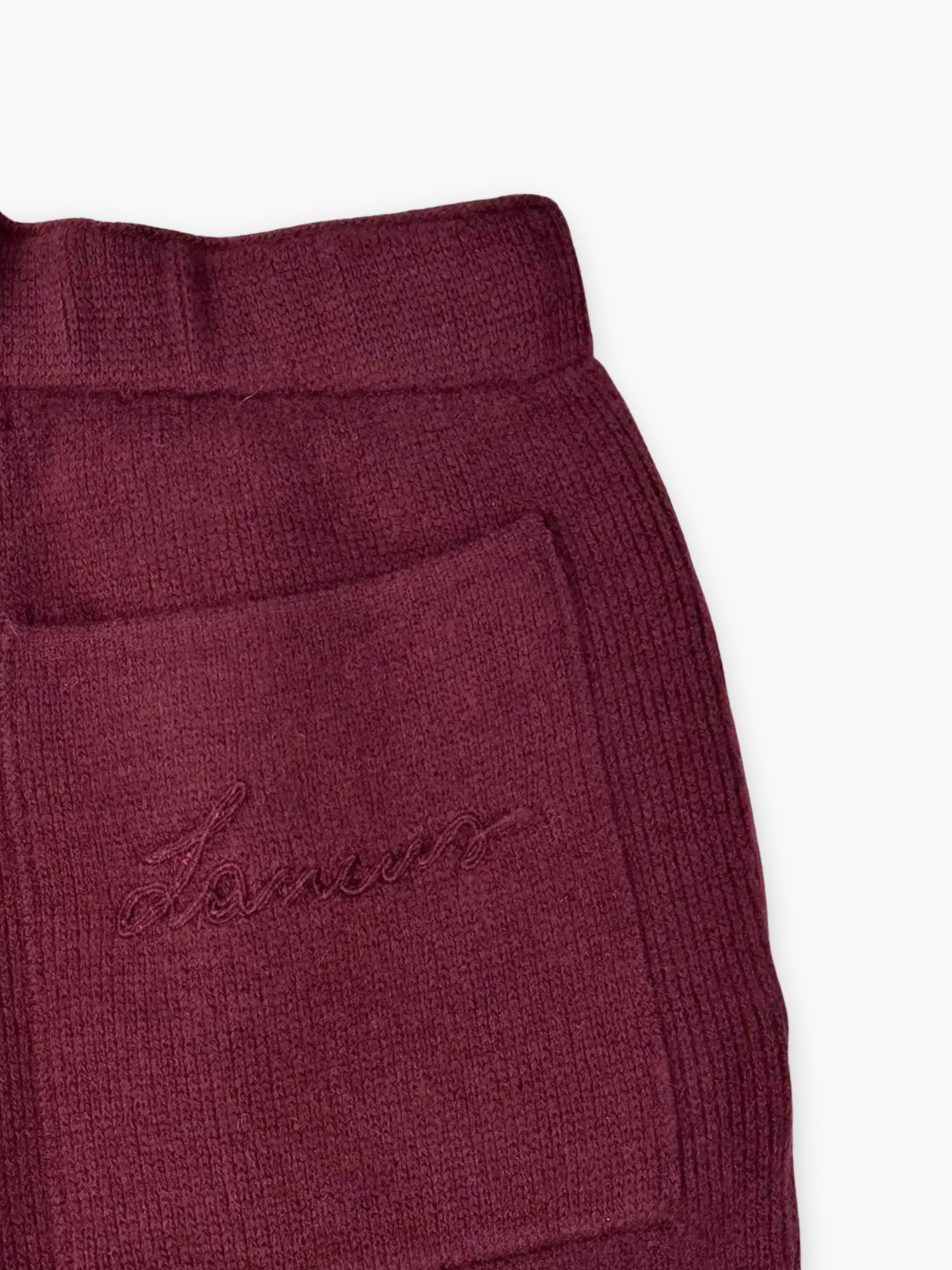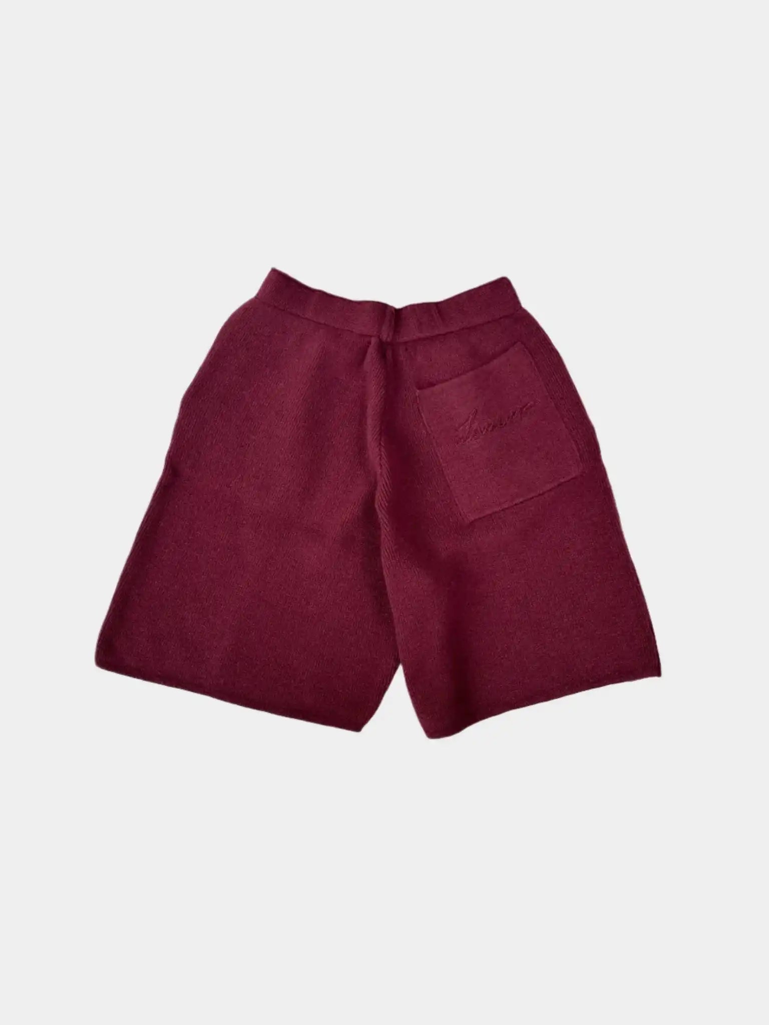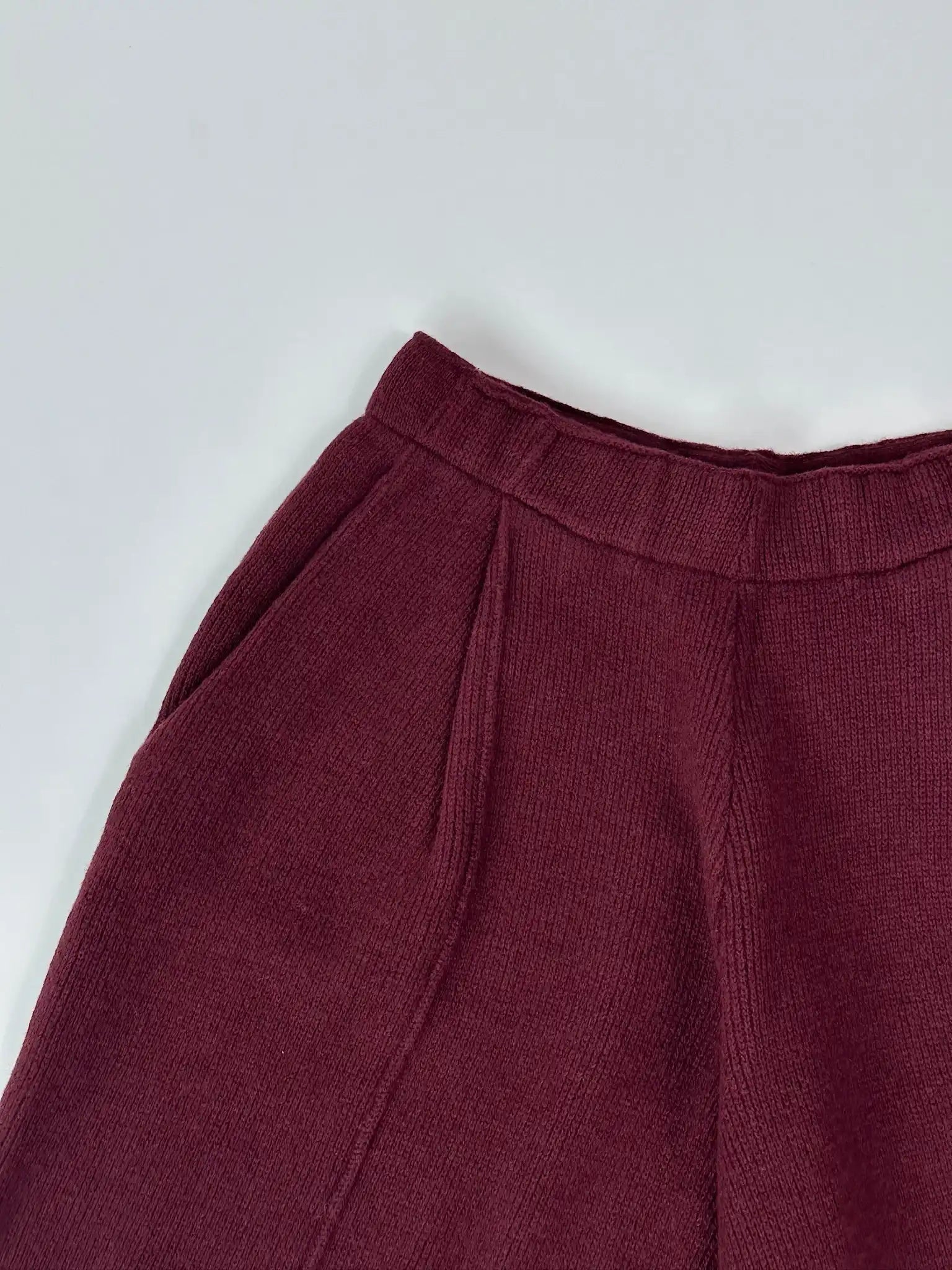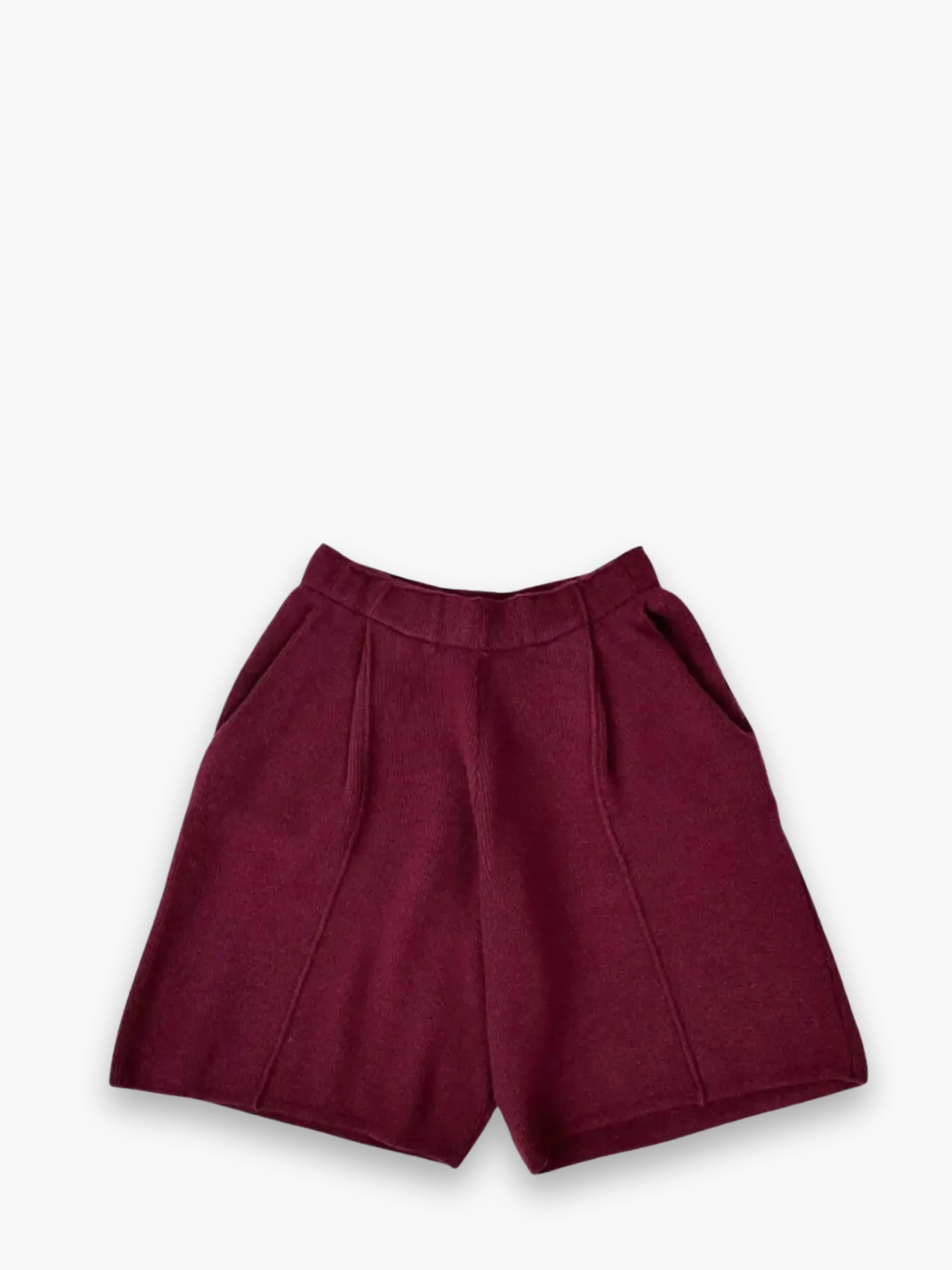 Knit Bermuda shorts with a relaxed and sophisticated line, made of a warm and soft blend of merino wool and cashmere. The intense burgundy color makes them ideal for casual outfits with character, with a comfortable and refined fit.