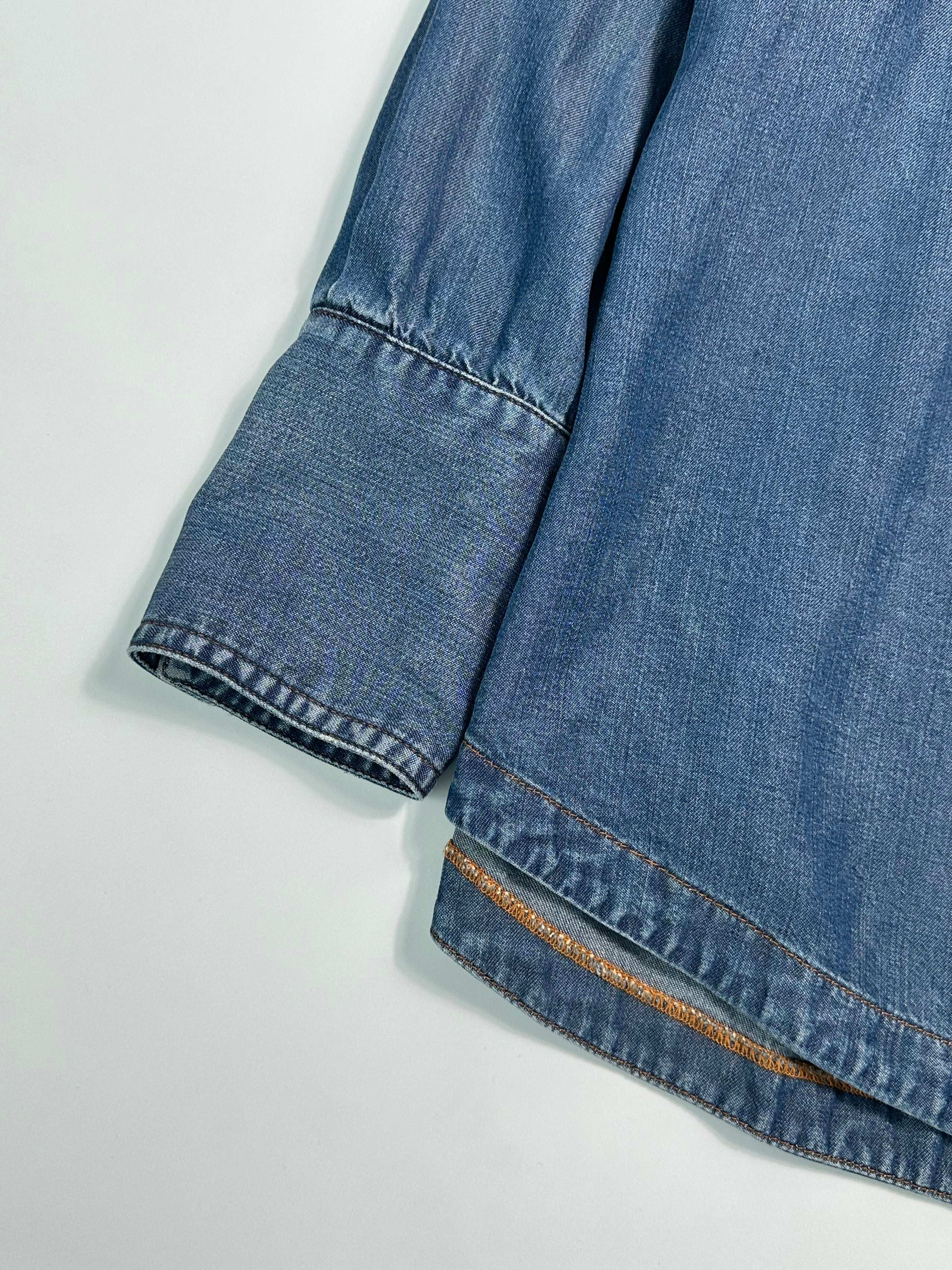 Relaxed elegance and a fluid texture, this 100% Tencel shirt combines comfort and style in a simple yet sophisticated design. The washed blue shade recalls a vintage denim effect, while the soft silhouette is enhanced by refined details such as the classic collar, the wide sleeves with wide cuffs and the front button closure. Ideal for casual-chic looks and seasonal layering.