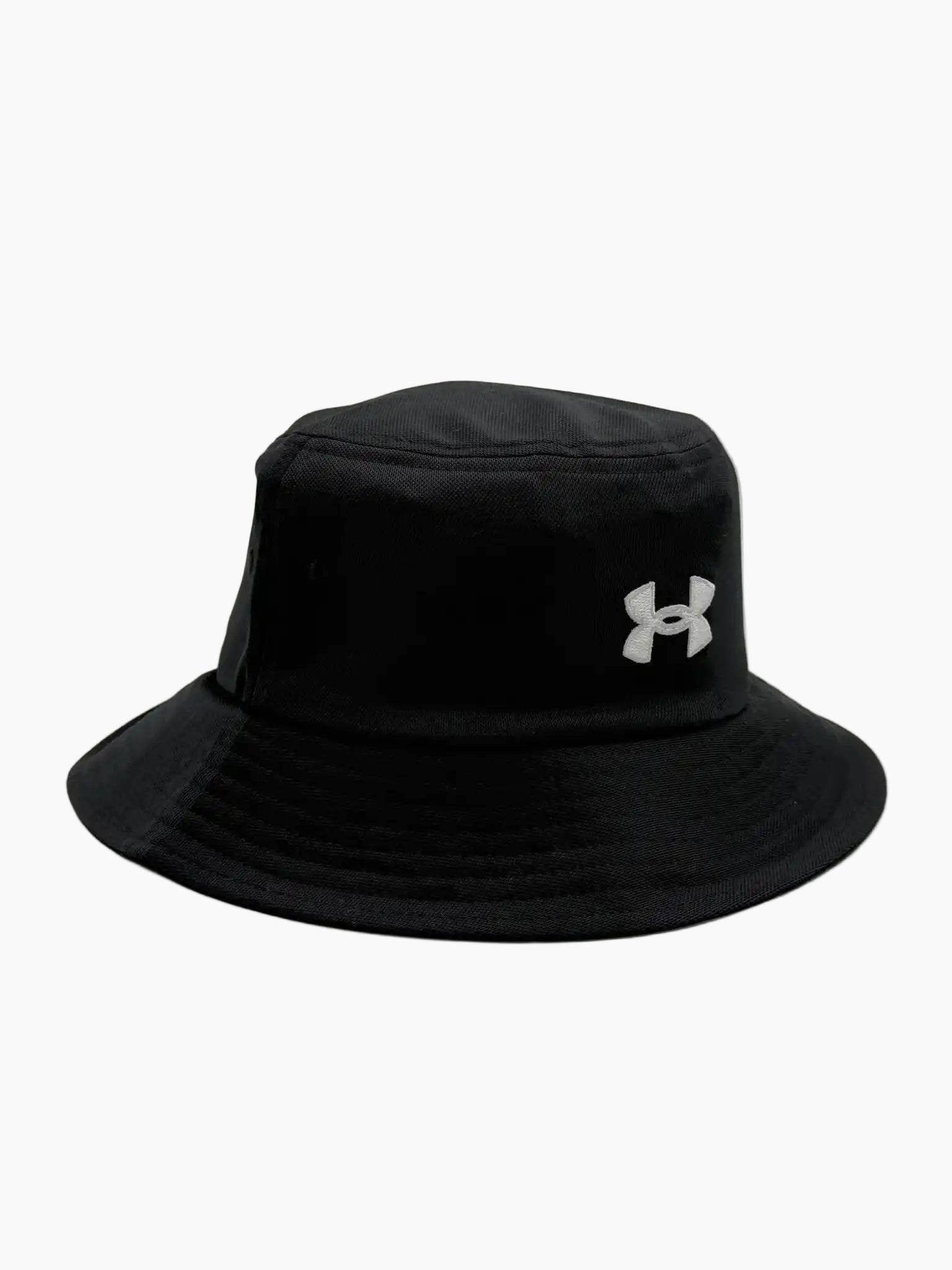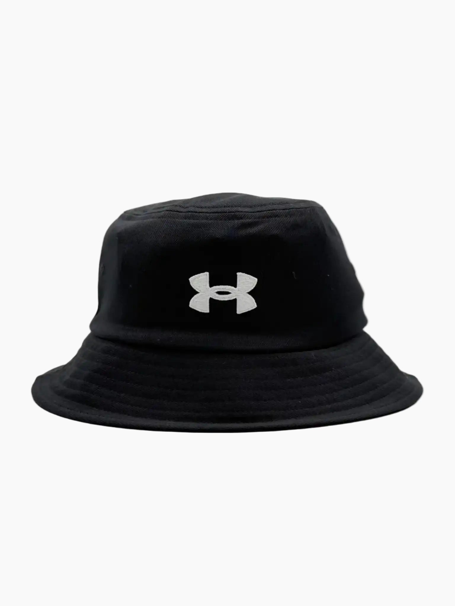The black bucket hat from Under Armour combines streetwear style with athletic functionality. Made from durable, breathable fabric, it features a soft brim design with a white embroidered UA logo on the front. Perfect for adding a distinctive touch to any casual outfit or for outdoor training.