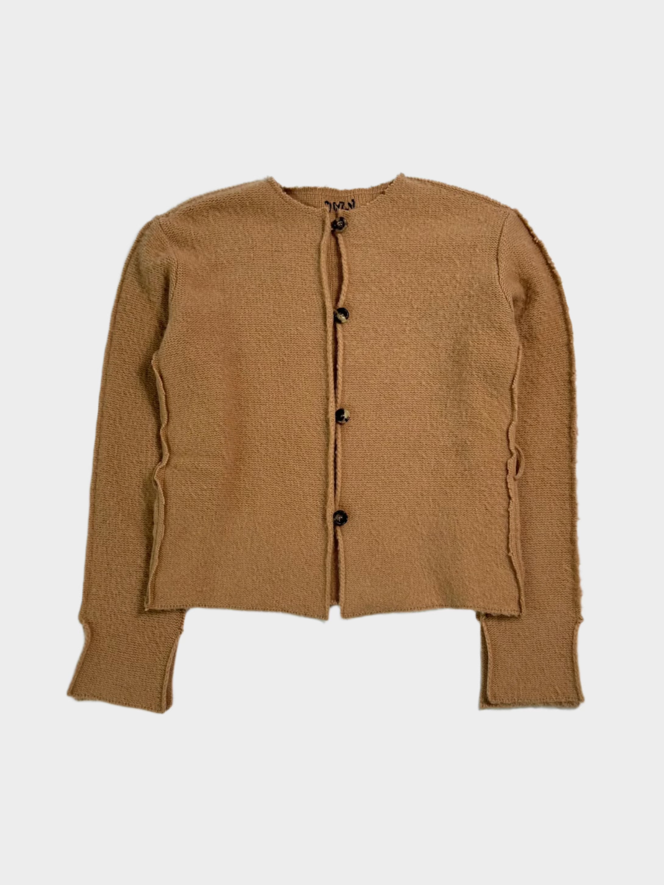 This cardigan by Marni combines the relaxed elegance of the brand with the quality of fine yarns. Made from a warm blend of wool and cashmere, it comes in a delicate beige shade. The exposed stitching and button closure add a modern, artisanal touch to the garment, making it perfect for any refined yet informal look.