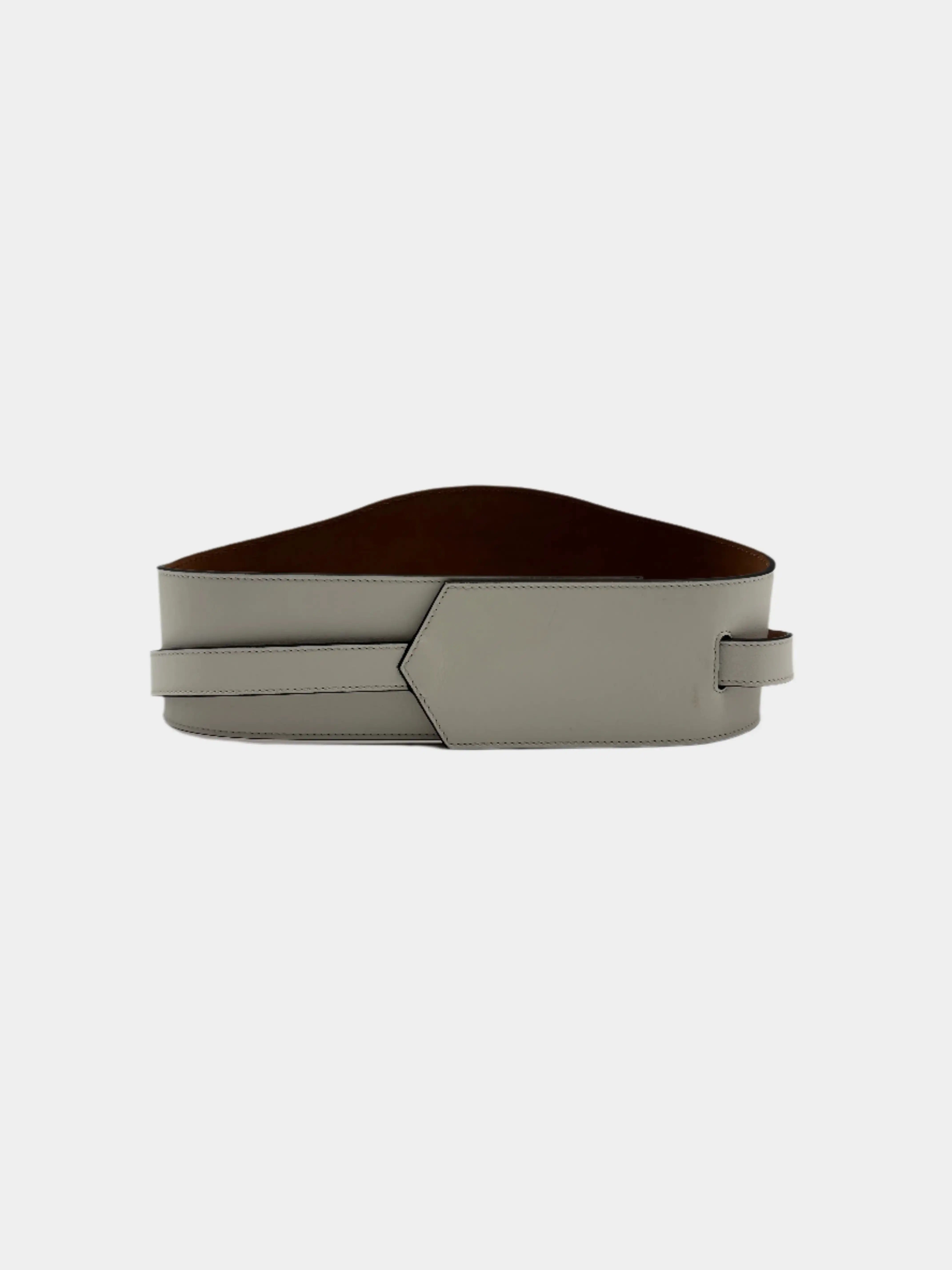 This Givenchy belt is an accessory with a bold and contemporary design. Crafted from matte white leather, it features a high and structured silhouette, enriched by a square metal buckle and an arrowhead on the back. Ideal for enhancing the waist with a touch of bold style, perfect with dresses or tailored garments for an elegant and impactful look.
