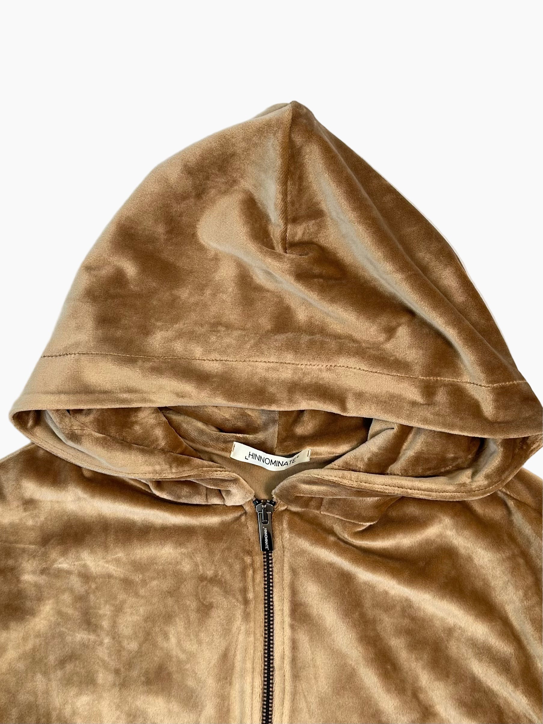 Hinnominate hoodie in soft dove grey chenille with full zip and hood, in a short and modern cut. The elasticated bottom and cuffs give comfort and structure, while the label applied on the sleeve adds a distinctive detail. Ideal for a casual look with a sophisticated touch.