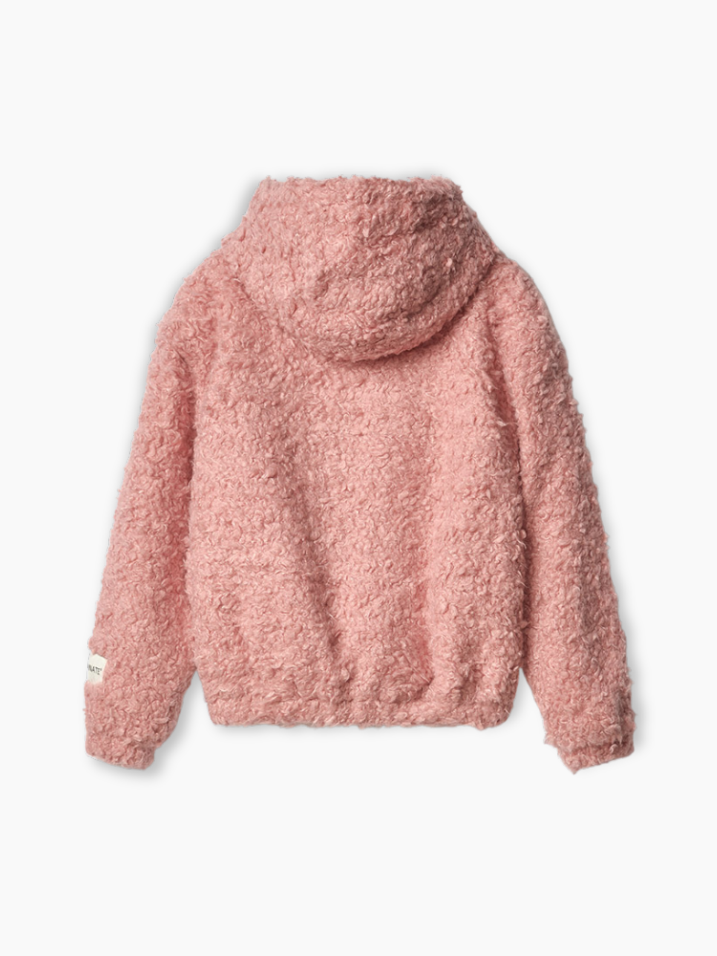Hinnominate jacket in soft pink teddy-effect fabric with an adjustable hood. Featuring a front zip closure and side pockets, it's a warm and trendy piece ideal for casual and cozy looks on cold days.