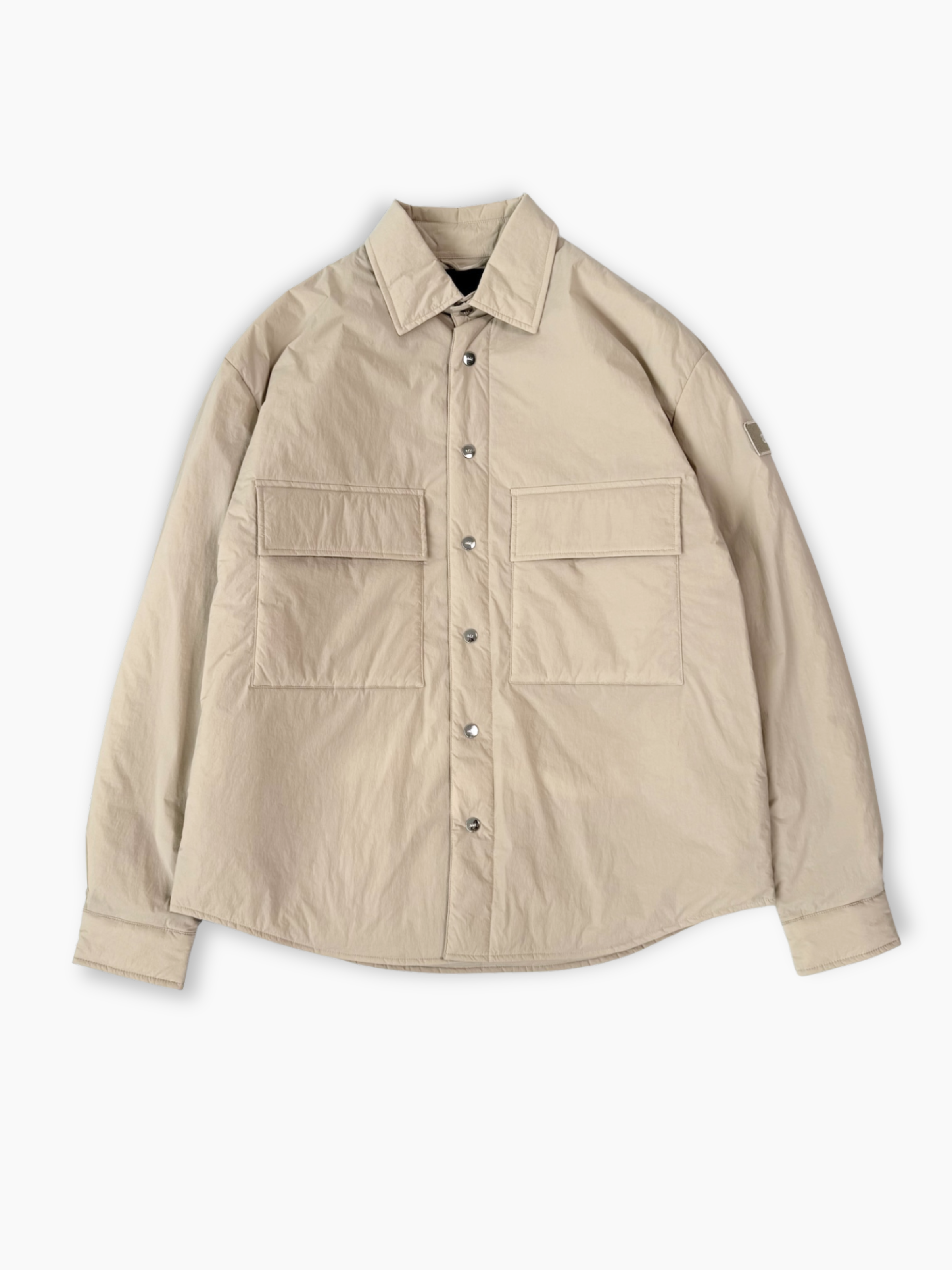 ADD jacket in beige technical fabric, inspired by the design of overshirts. Featuring clean lines, snap buttons, and large patch pockets, it combines casual style and practicality. A versatile piece, perfect as a lightweight jacket for the transitional period.