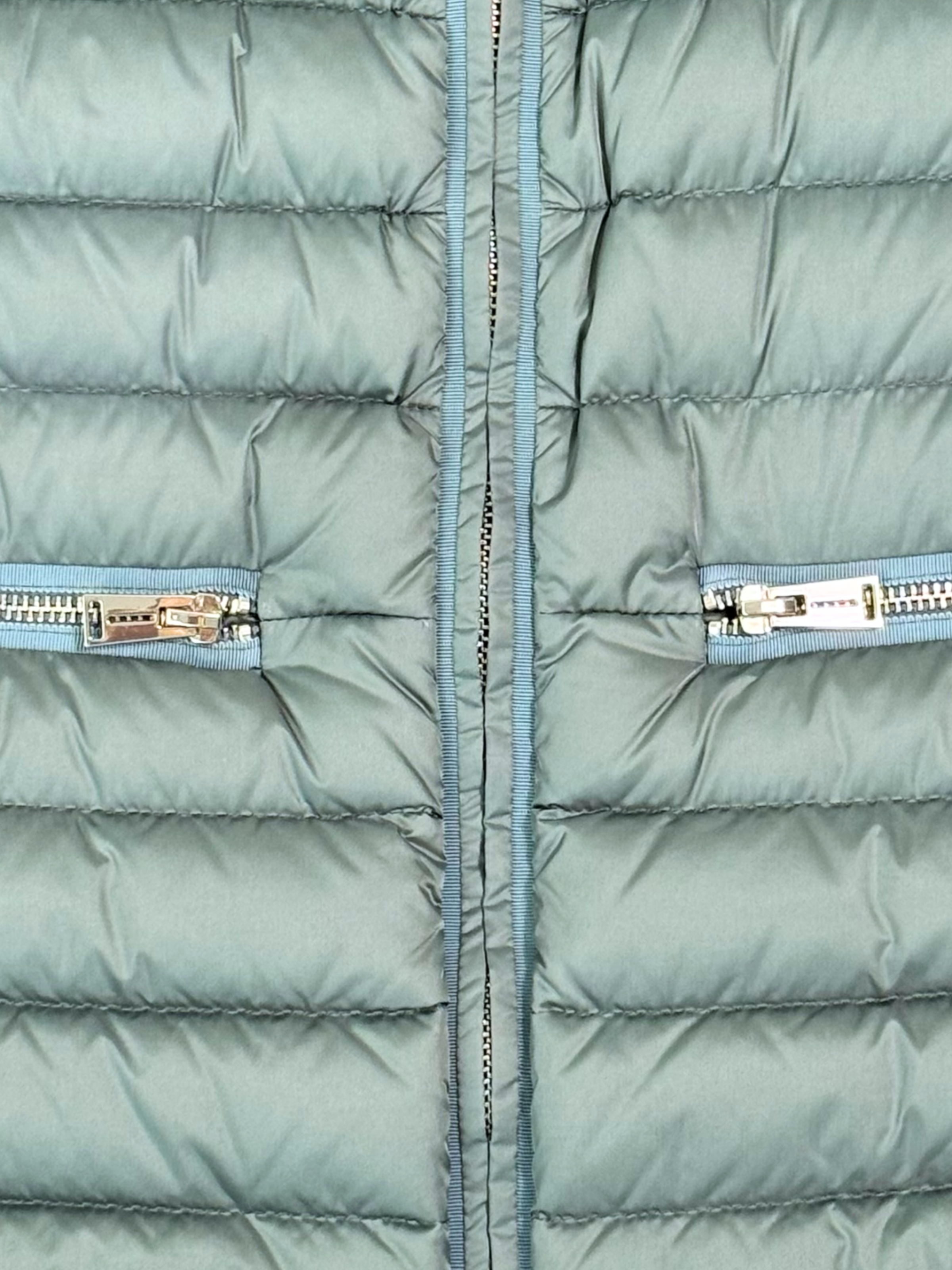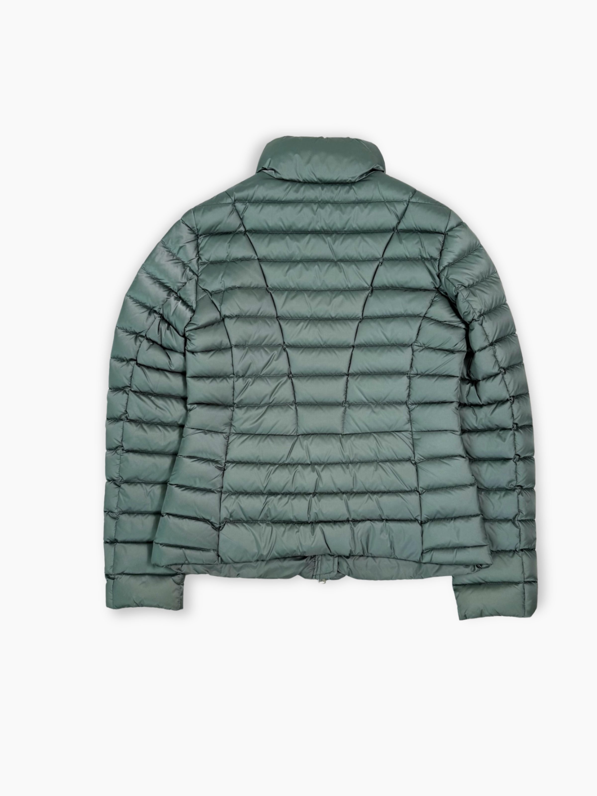 • Lightweight sage green down jacket in technical fabric