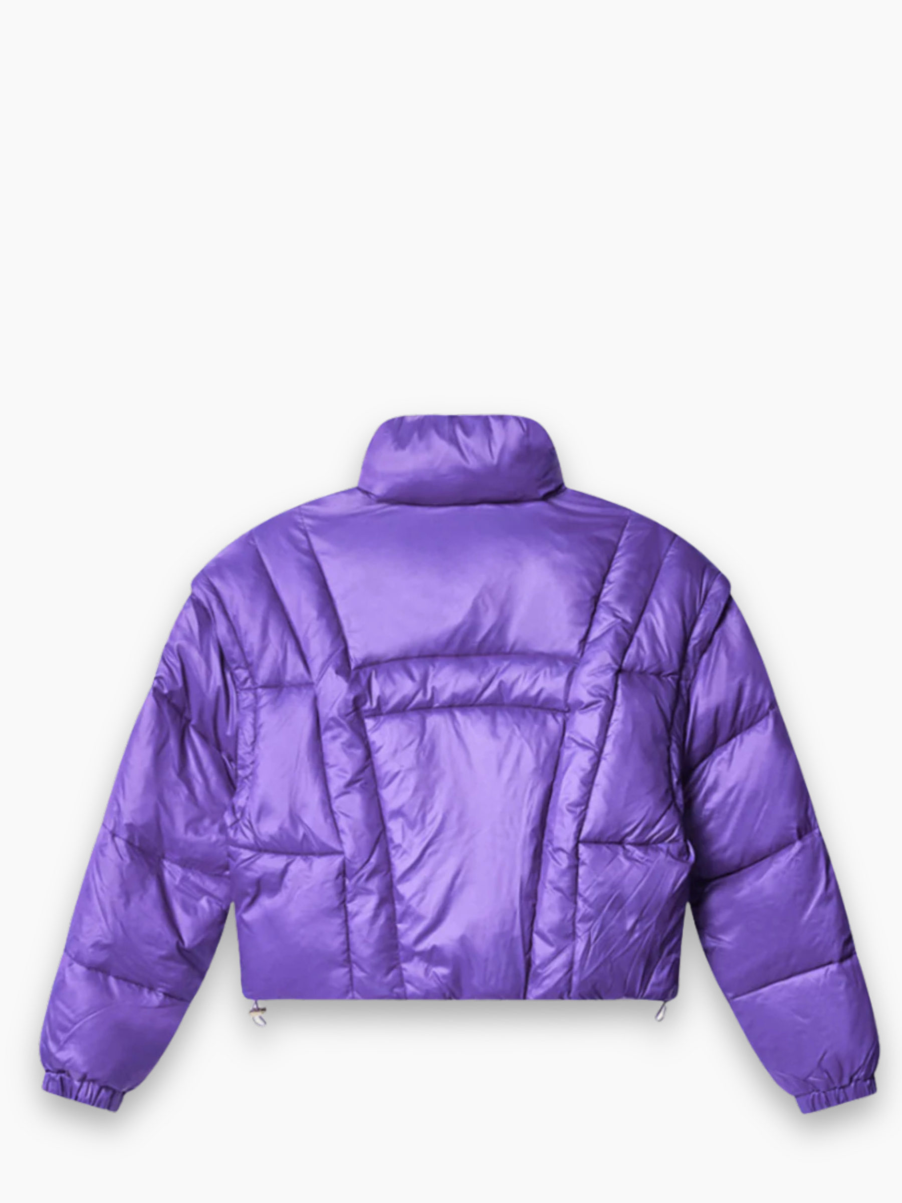 Hinnominate short down jacket in shiny purple nylon, with a modern and bold design. Featuring warm and voluminous padding, a high, enveloping collar, and a front zip and snap closure, it's ideal for a contemporary, urban style on colder days.