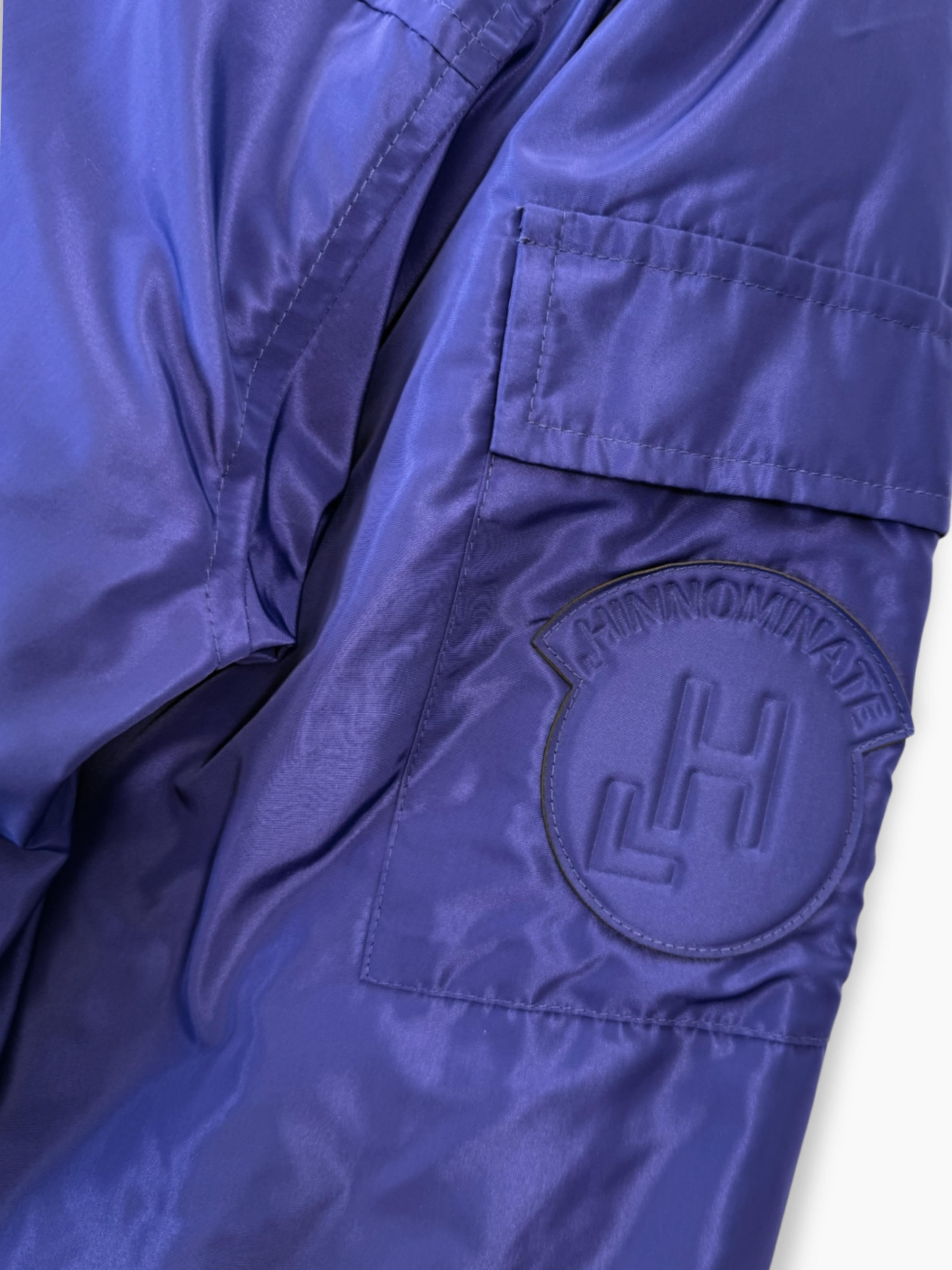 The Hinnominate oversized down jacket in deep purple nylon is designed for those who love comfort and urban style. Crafted with warm, lightweight padding, it features a concealed zip fastening, large front pockets with snaps, and an adjustable drawstring hem. A versatile piece that combines functionality and style.
