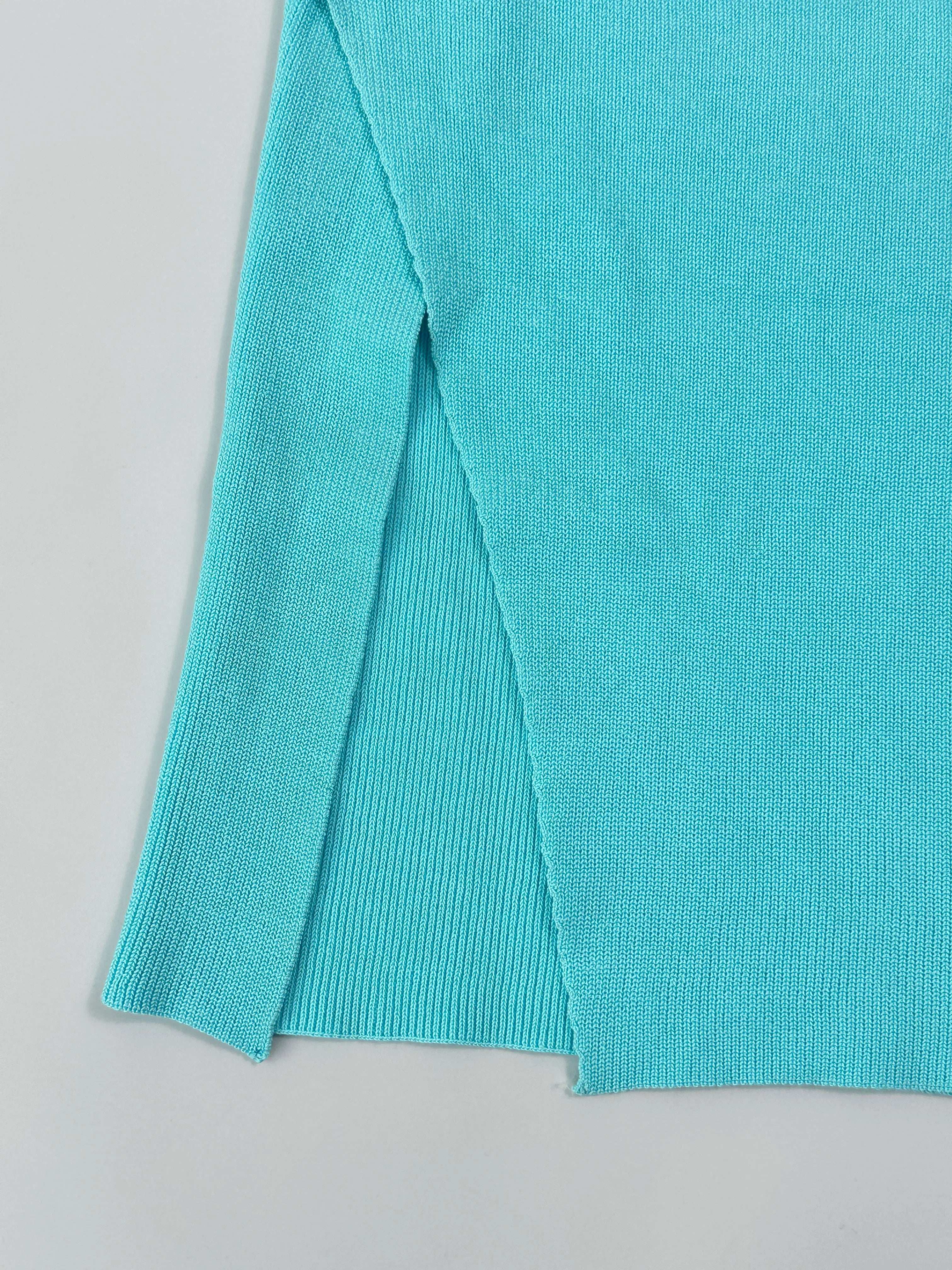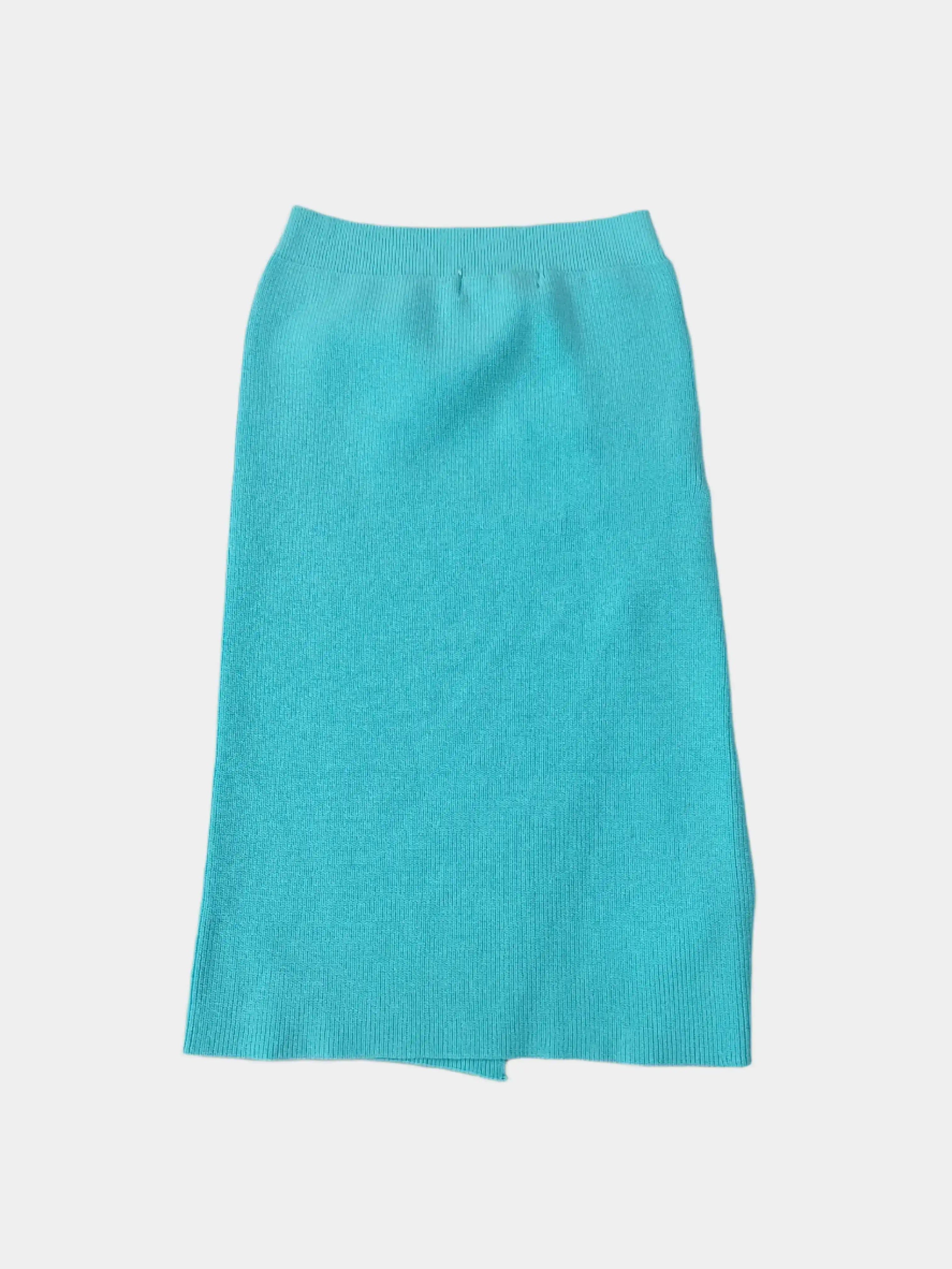 Midi skirt by Laneus in stretch cotton jersey, with fine ribbing and a figure-flattering fitted line. The solid light blue color and front slit give the garment a perfect balance between essentiality and sensuality. Ideal for everyday looks or more elegant outfits.