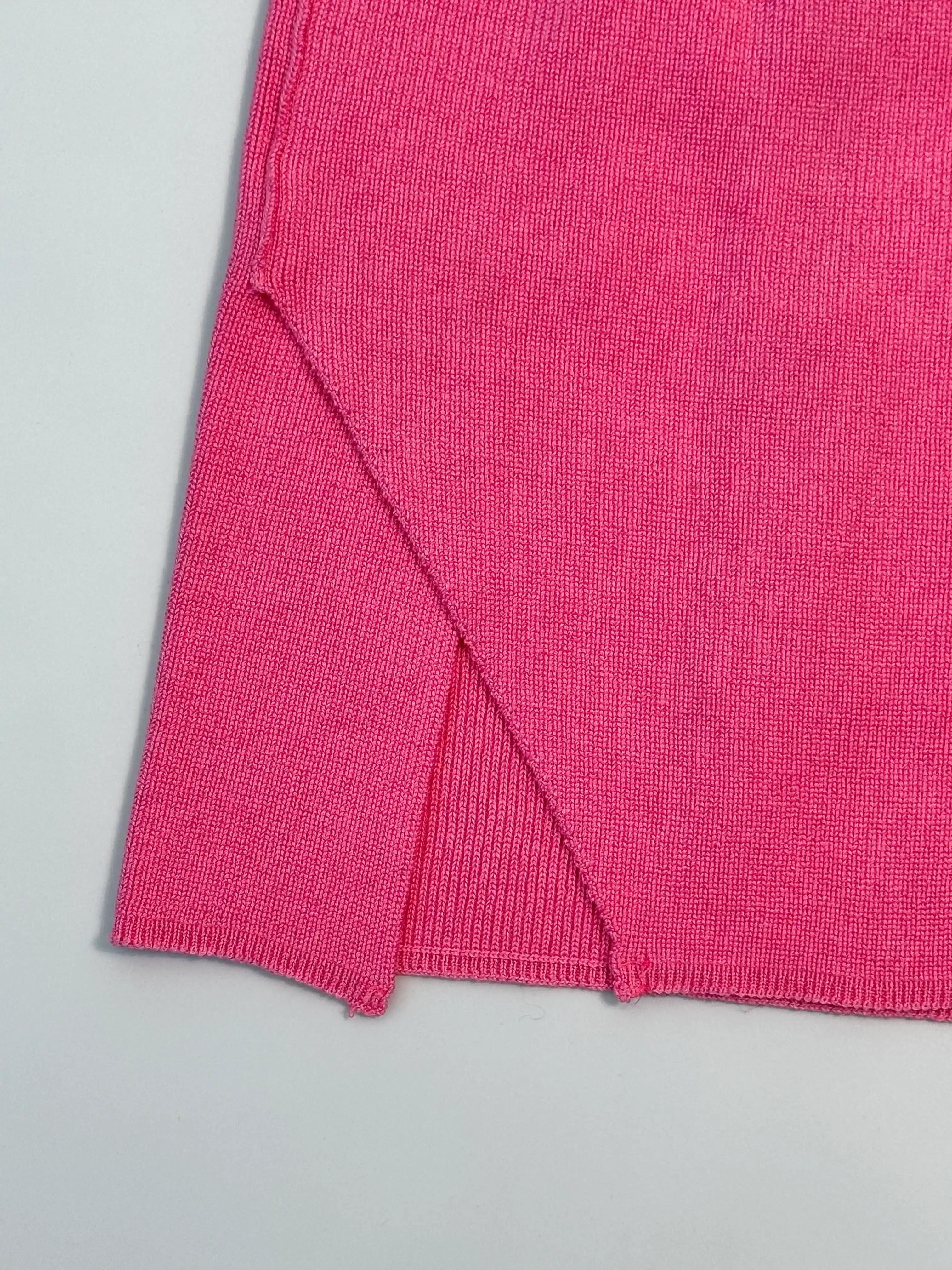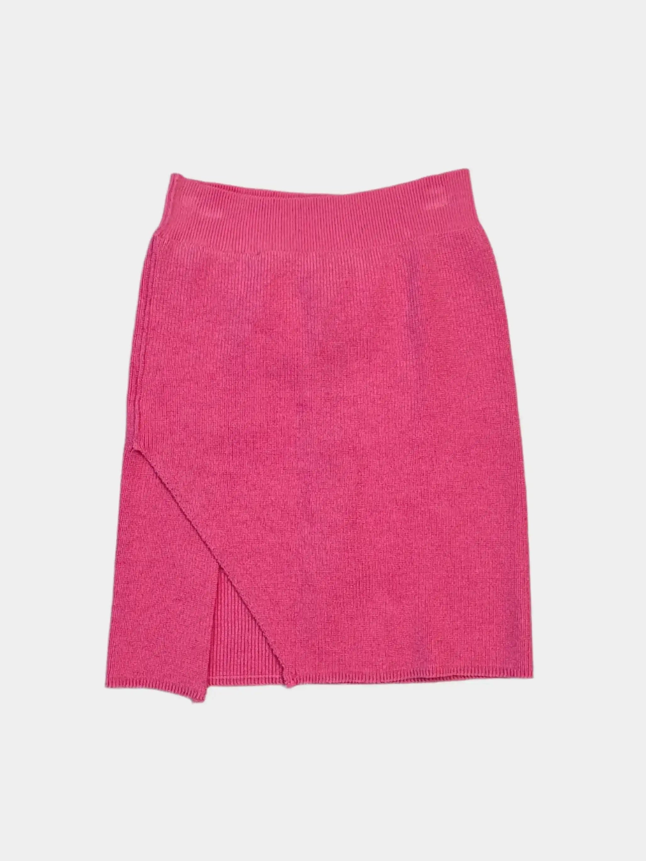 This pink skirt by Laneus adds a pop of color to your summer wardrobe. The ribbed knit design with side slit is perfect for feminine yet relaxed looks. A versatile piece that combines comfort and style in perfect balance.