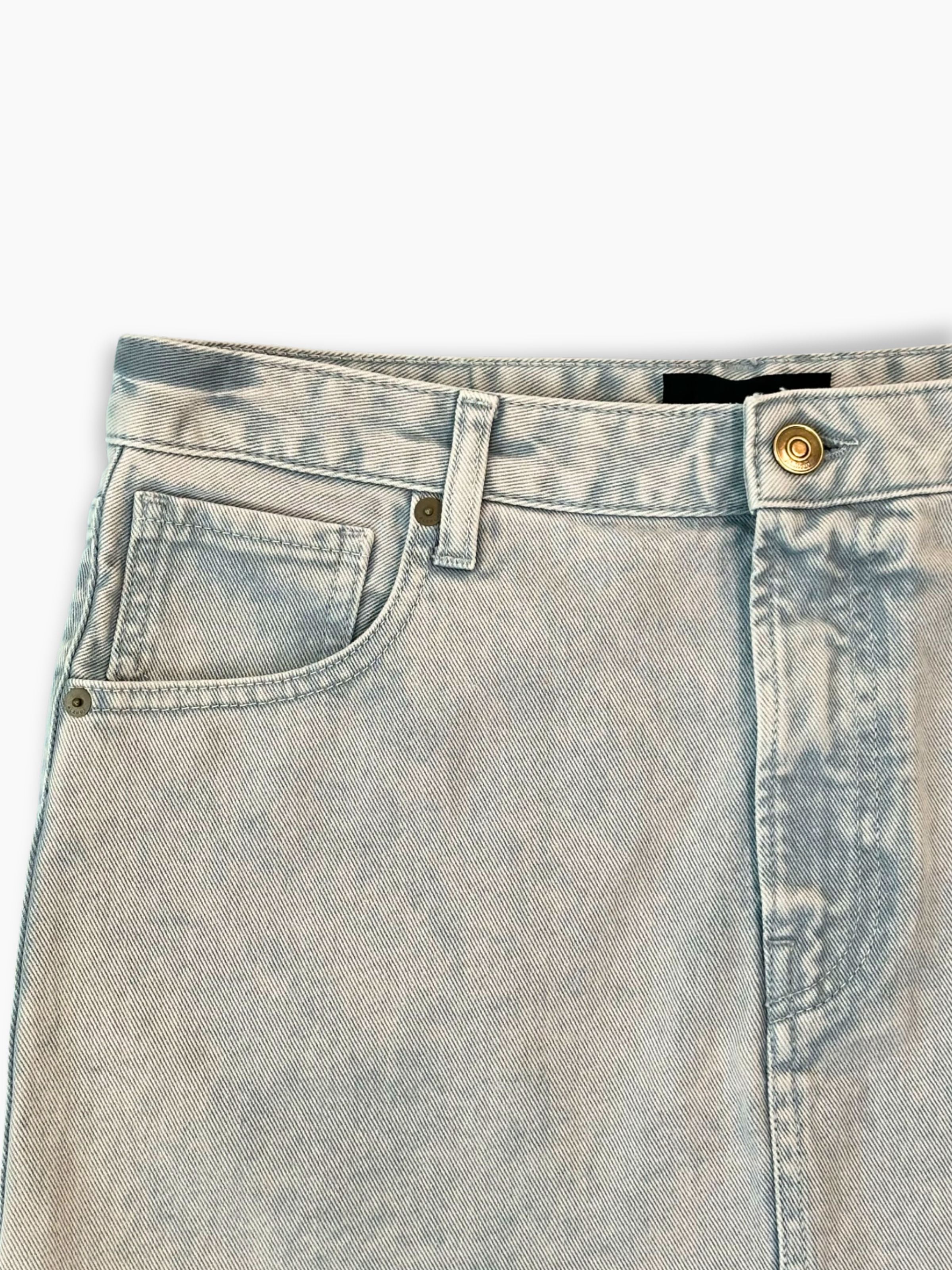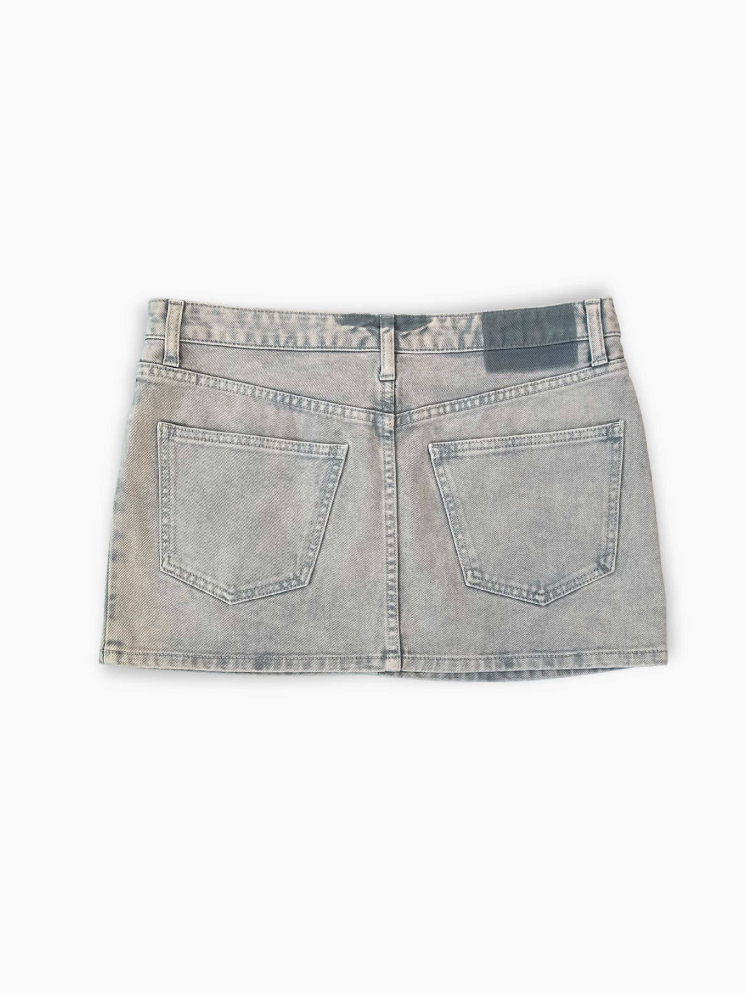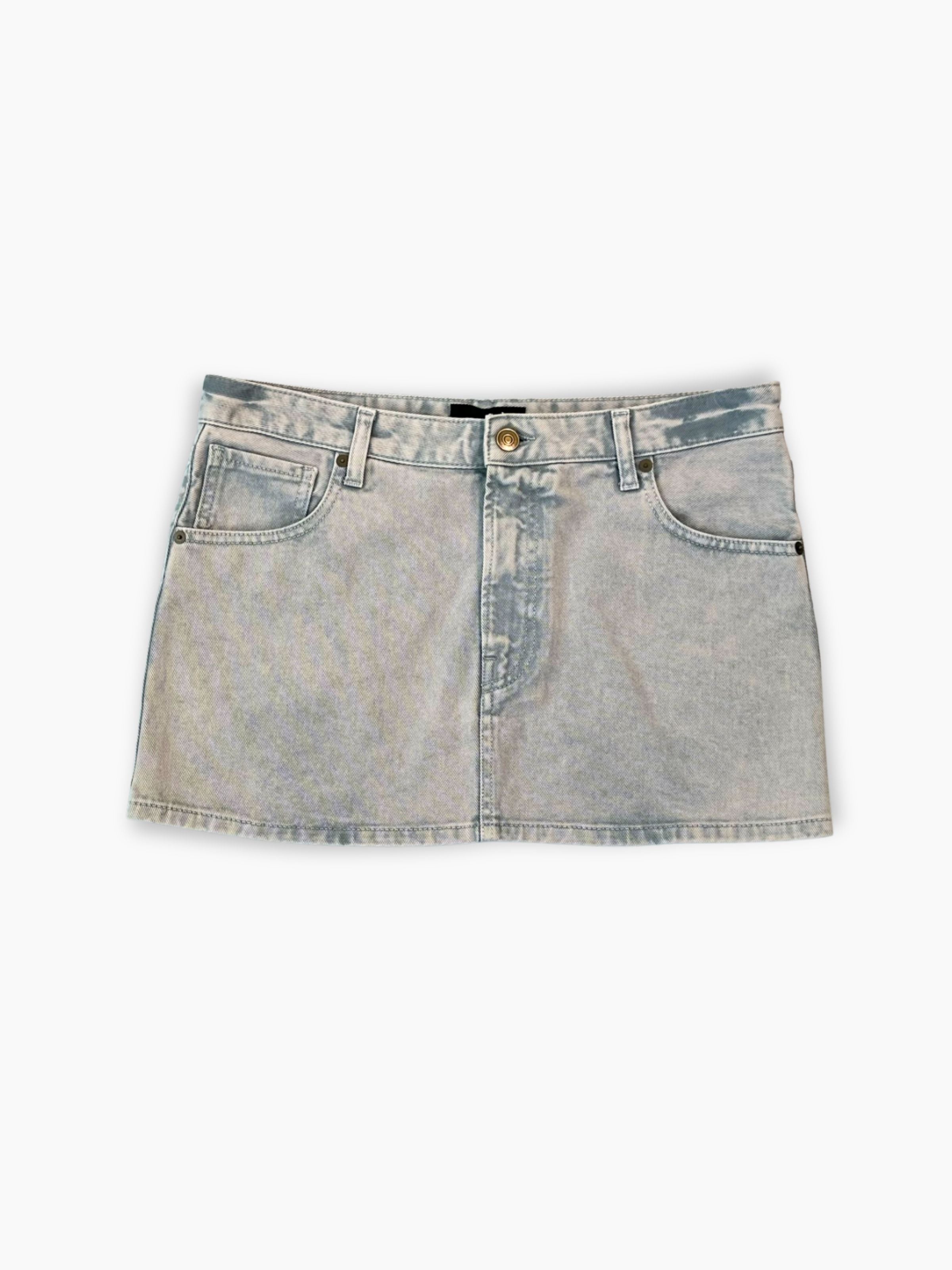 The Alanui stonewashed gray denim miniskirt is a versatile piece with a casual and contemporary feel. Crafted from vintage-washed cotton denim, it features a short, straight fit, five pockets, and a front button and zip closure. A simple, on-trend piece, it pairs perfectly with sneakers or sandals for a modern summer look.