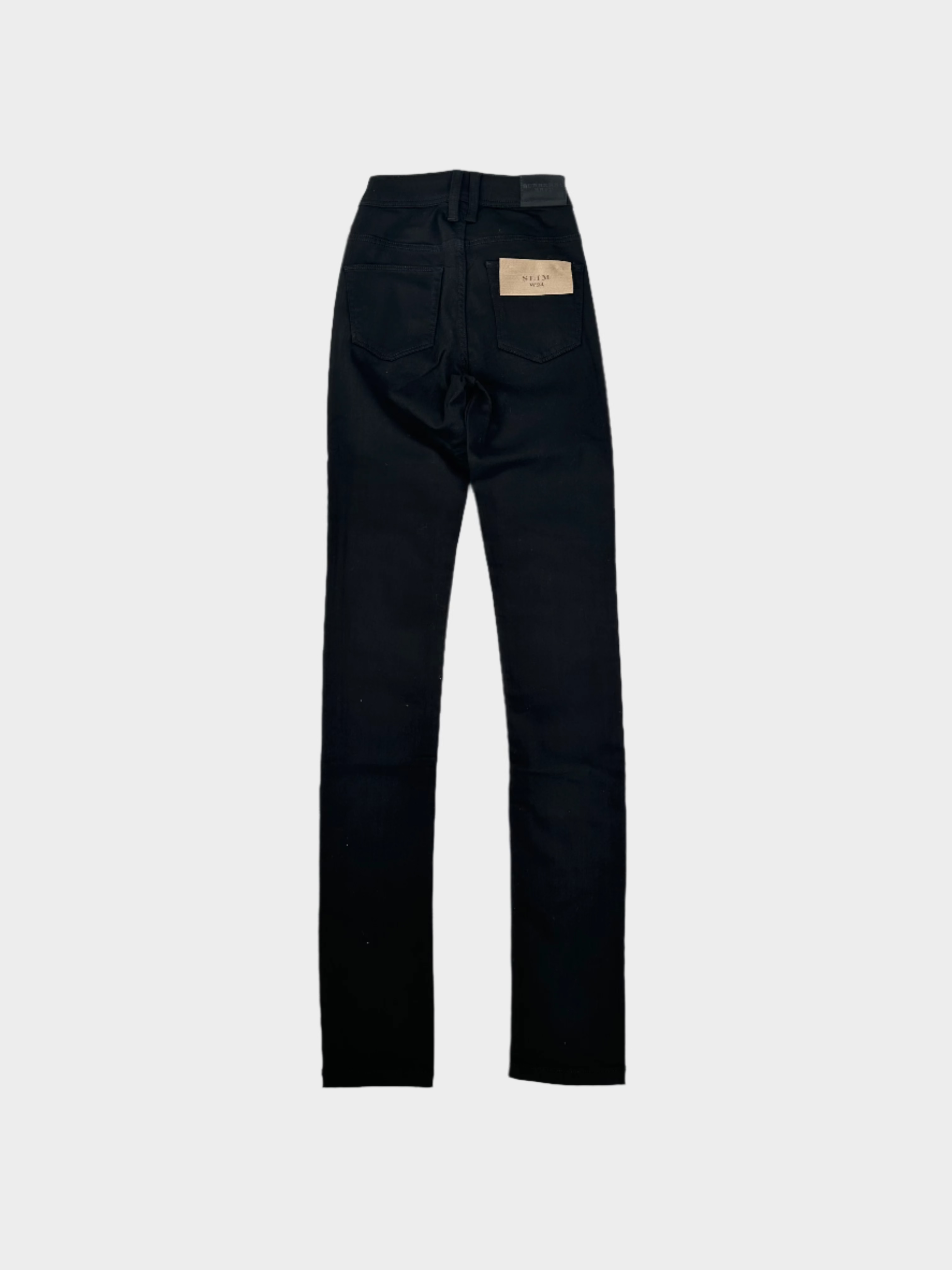 These slim-fit black trousers by Burberry are perfect for those looking for a snug fit without sacrificing comfort. Crafted from stretch denim, they enhance the silhouette and easily adapt to casual or more refined looks. The tone-on-tone Burberry label at the waist and the minimal construction complete the design with discreet elegance.