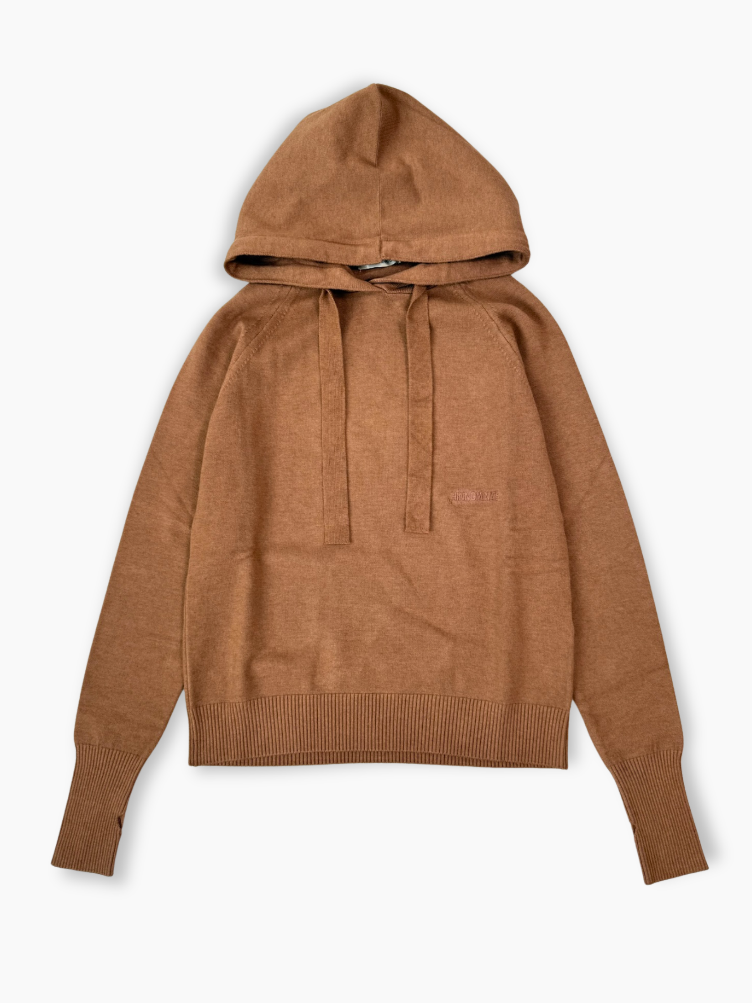 Felpa Hinnominate in morbido tessuto misto viscosa, poliestere e poliammide, dal colore marrone caldo. Il modello presenta cappuccio con coulisse tono su tono, maniche lunghe e bordi a costine, offrendo un look pulito e contemporaneo. Grazie alla texture morbida e leggera, è perfetta per la mezza stagione o per un outfit casual raffinato.