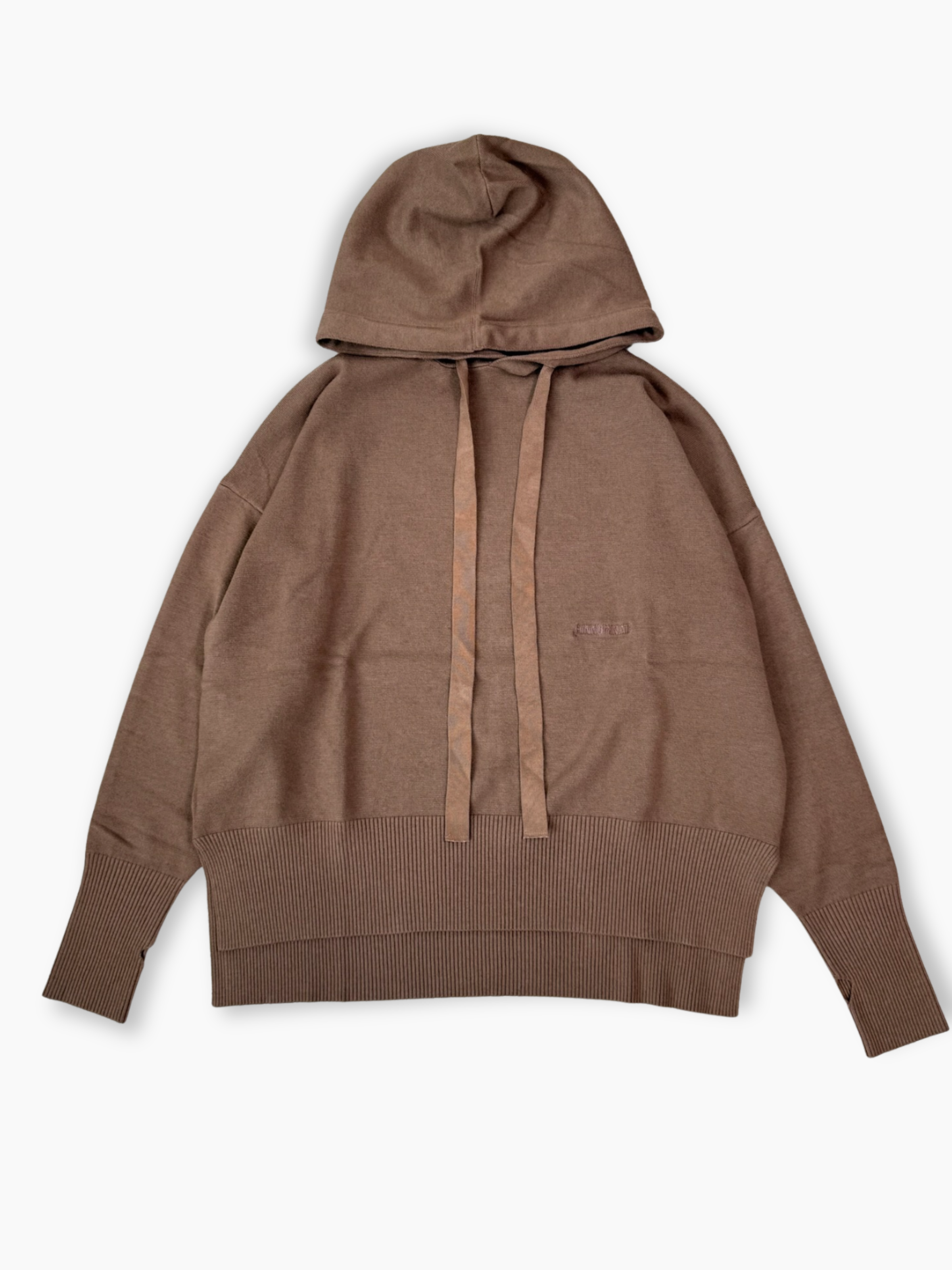 Hinnominate sweatshirt made of a viscose, polyester, and polyamide blend in a warm, enveloping brown. It features an adjustable hood with a matching drawstring, long sleeves, and ribbed cuffs. The minimal design and relaxed fit make this piece perfect for a relaxed yet refined look.