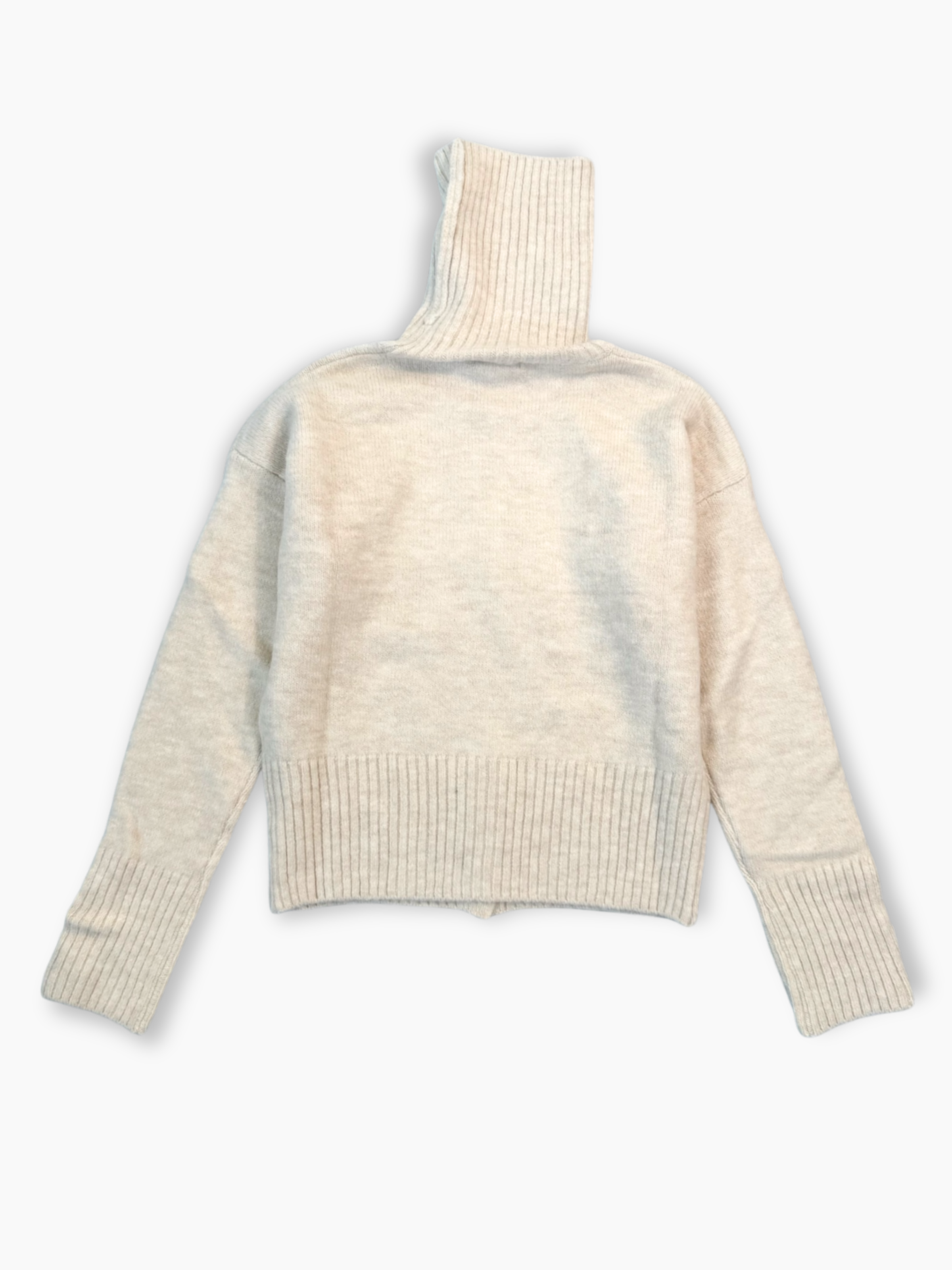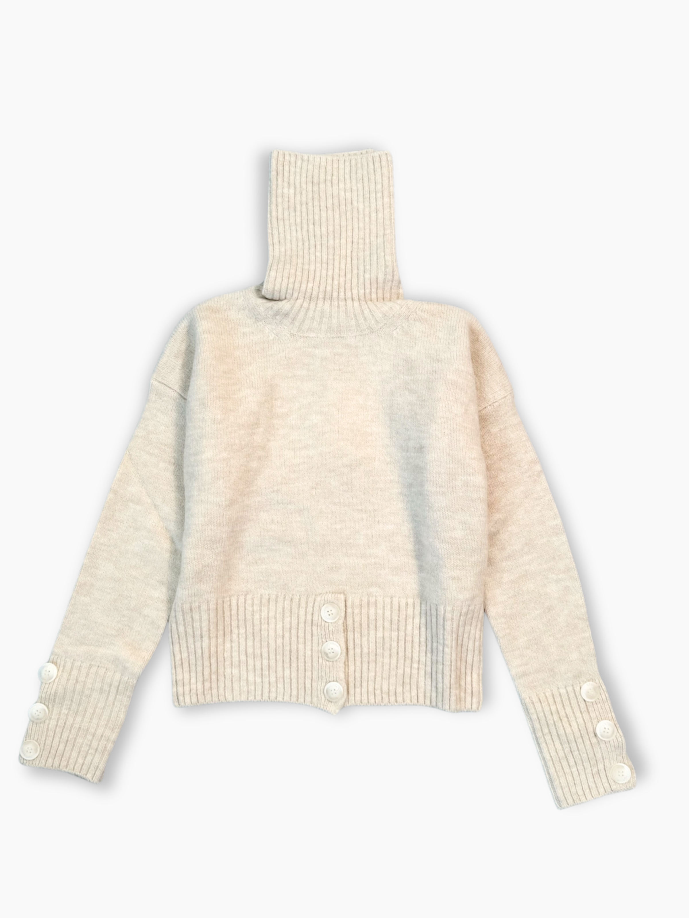 Minimalist elegance and enveloping warmth in this cream-colored Hinnominate sweater. The ribbed turtleneck pairs with a boxy fit and iconic details like the buttons at the hem and cuffs. Perfect for completing refined winter looks.