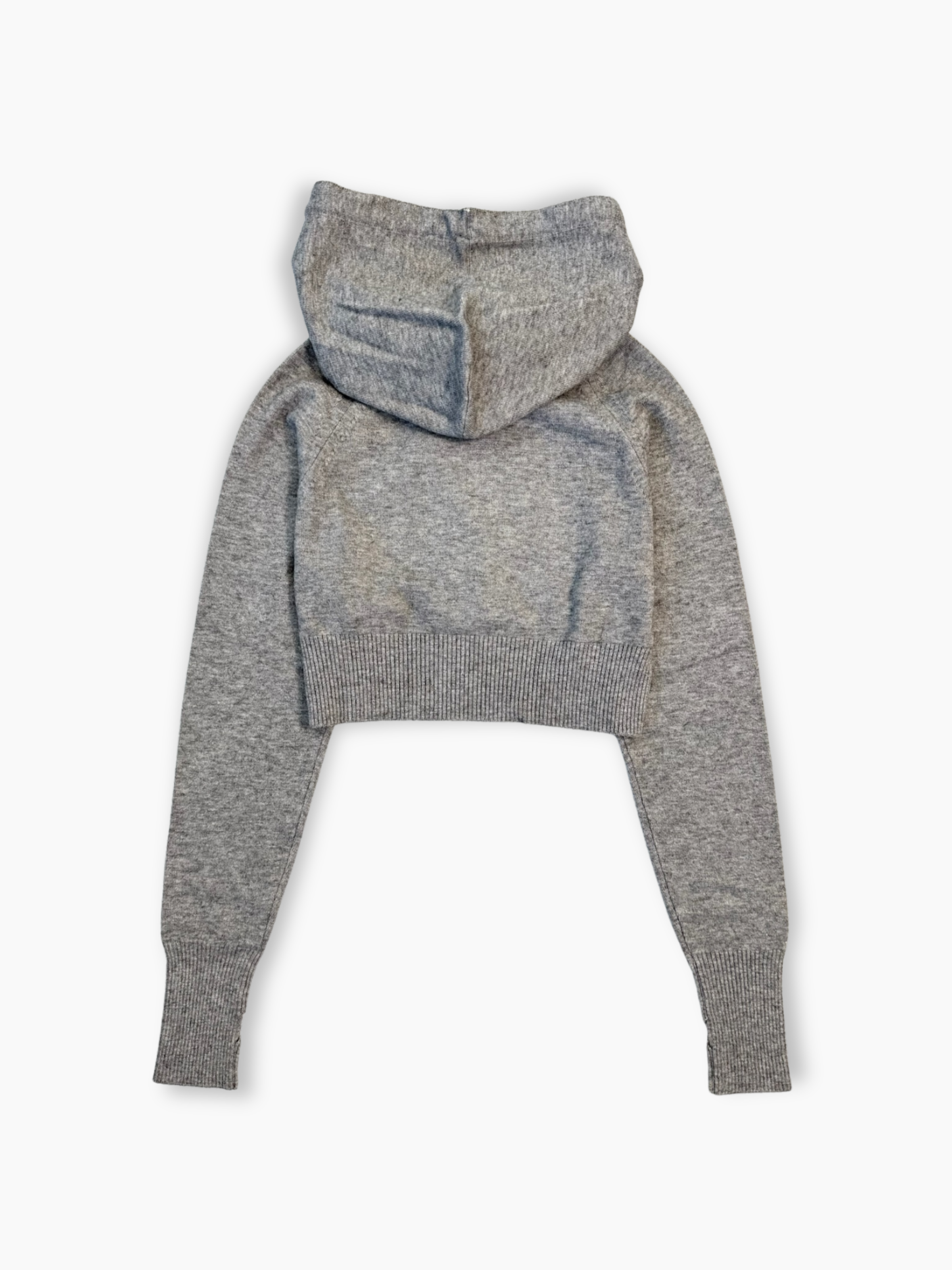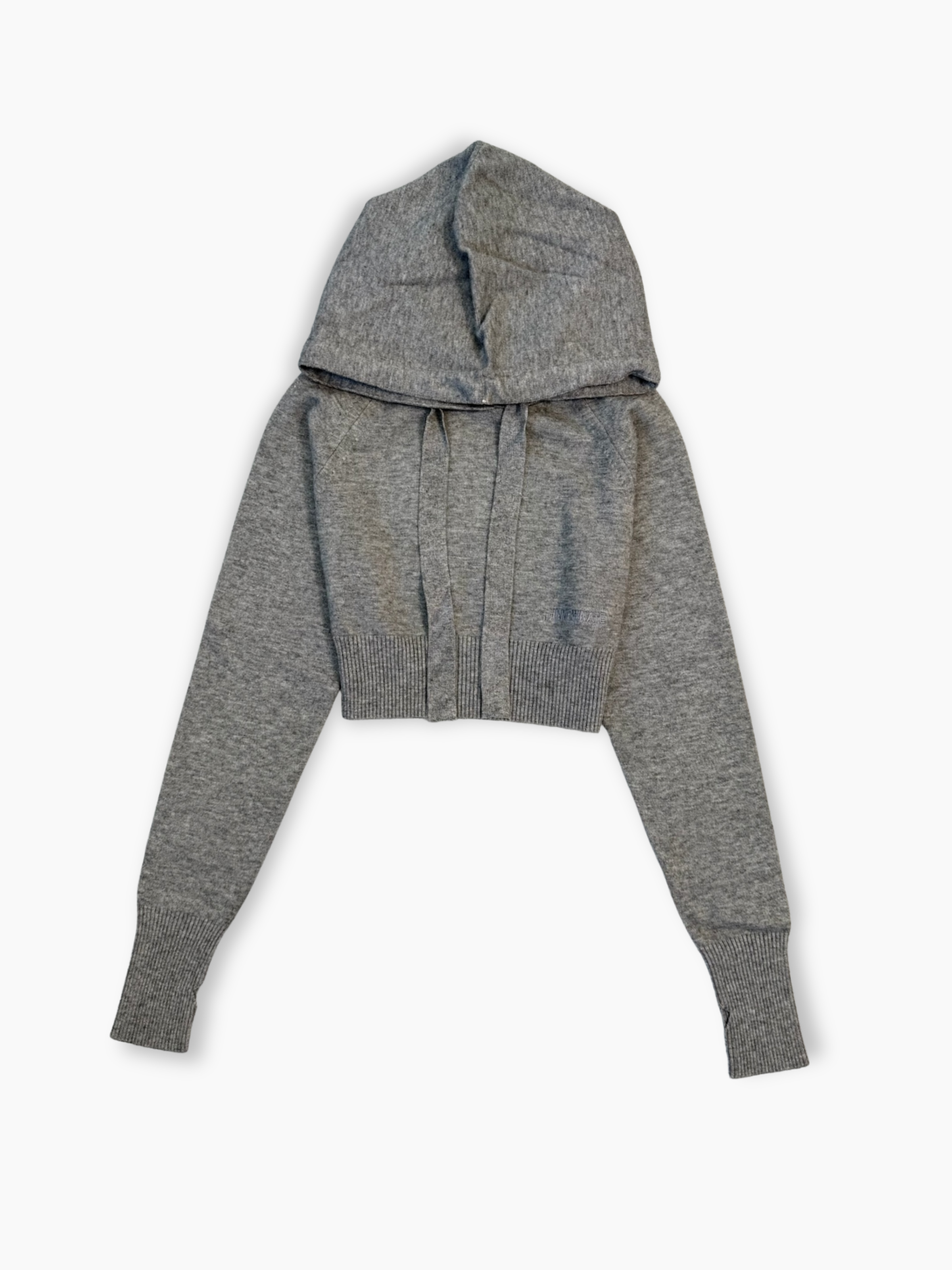 Maglia Grigio Melange Corta Con Cappuccio E Ricamo