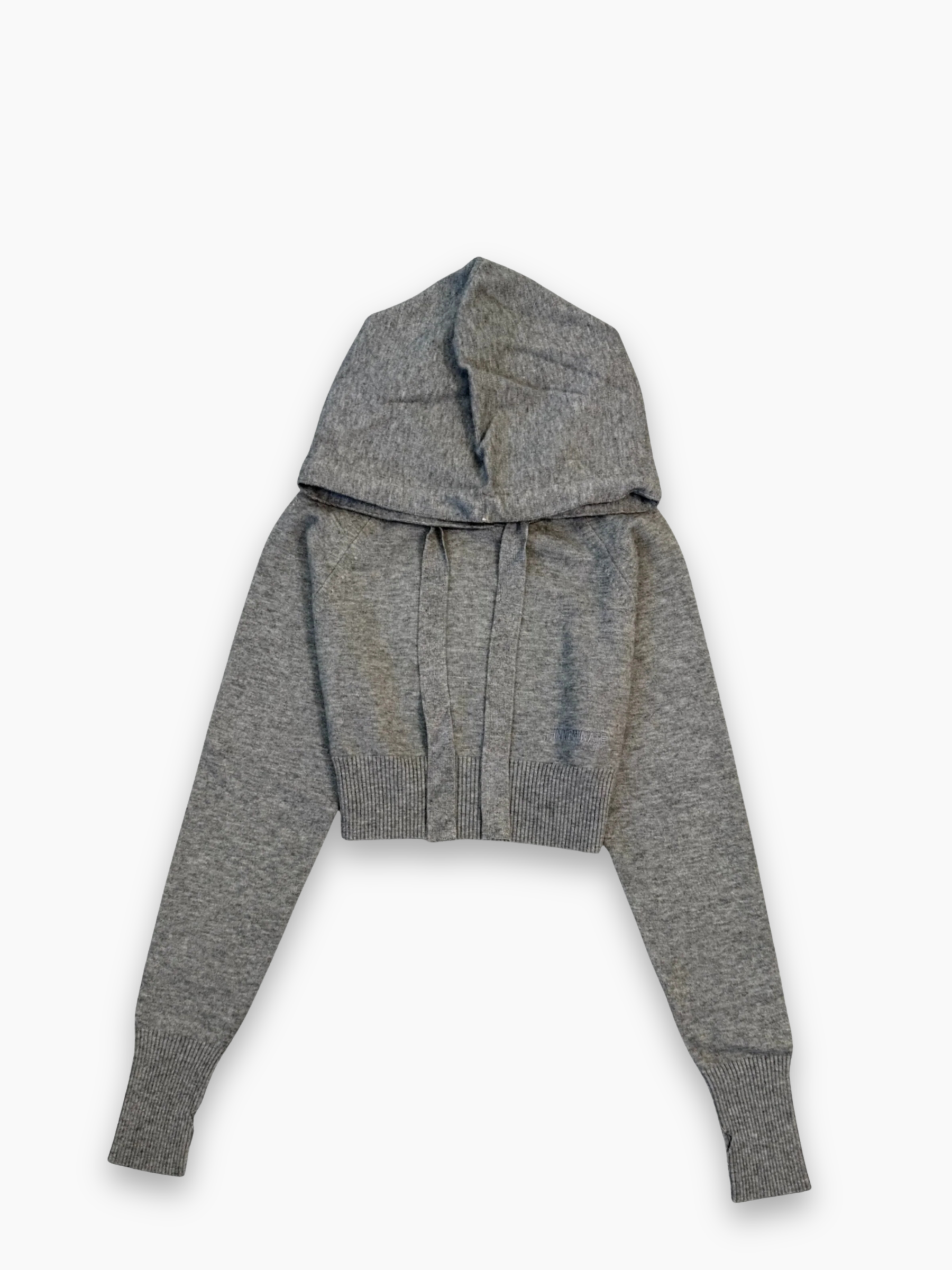 Hinnominate cropped sweater in soft, warm yarn, featuring a modern design with a hood and tone-on-tone logo embroidery on the front. The cropped fit and ribbed hem enhance the silhouette, adding a sporty-chic touch perfect for casual, contemporary looks.