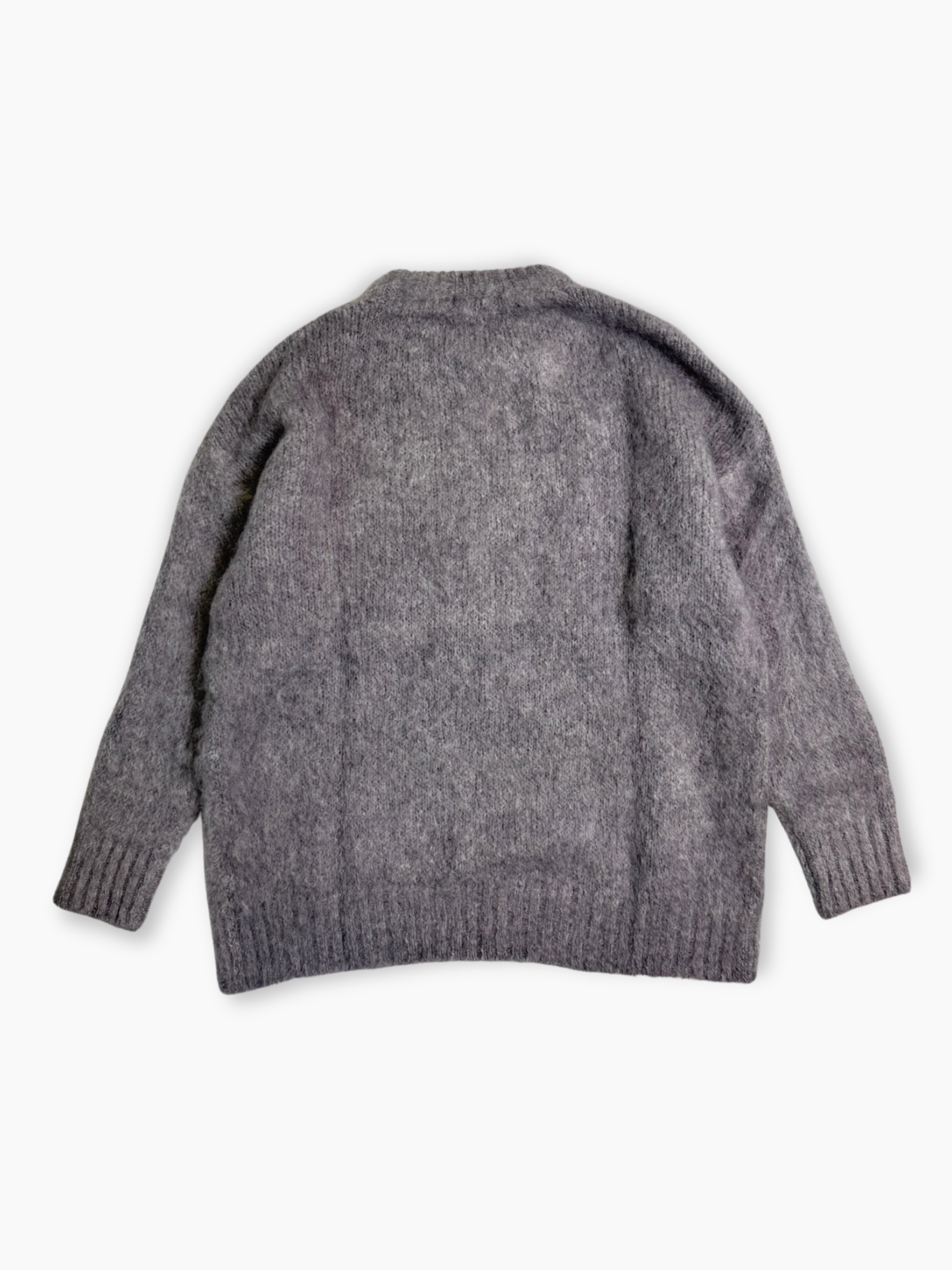 Minimalist and enveloping, this gray mohair sweater from Hinnominate is an elegant go-to for the colder months. Its simple cut and soft yarn make it perfect worn alone or under an oversized blazer for a relaxed yet refined look.