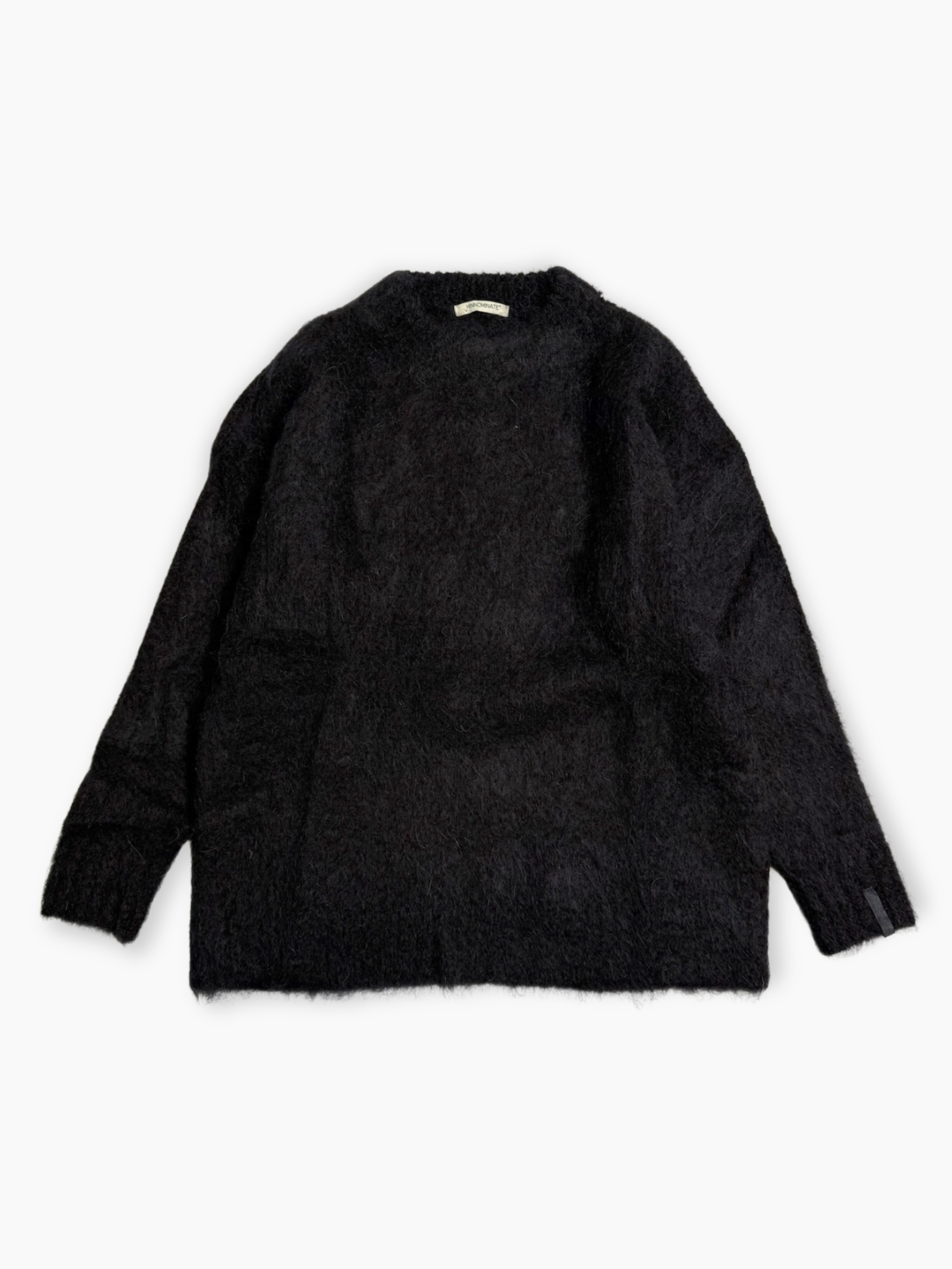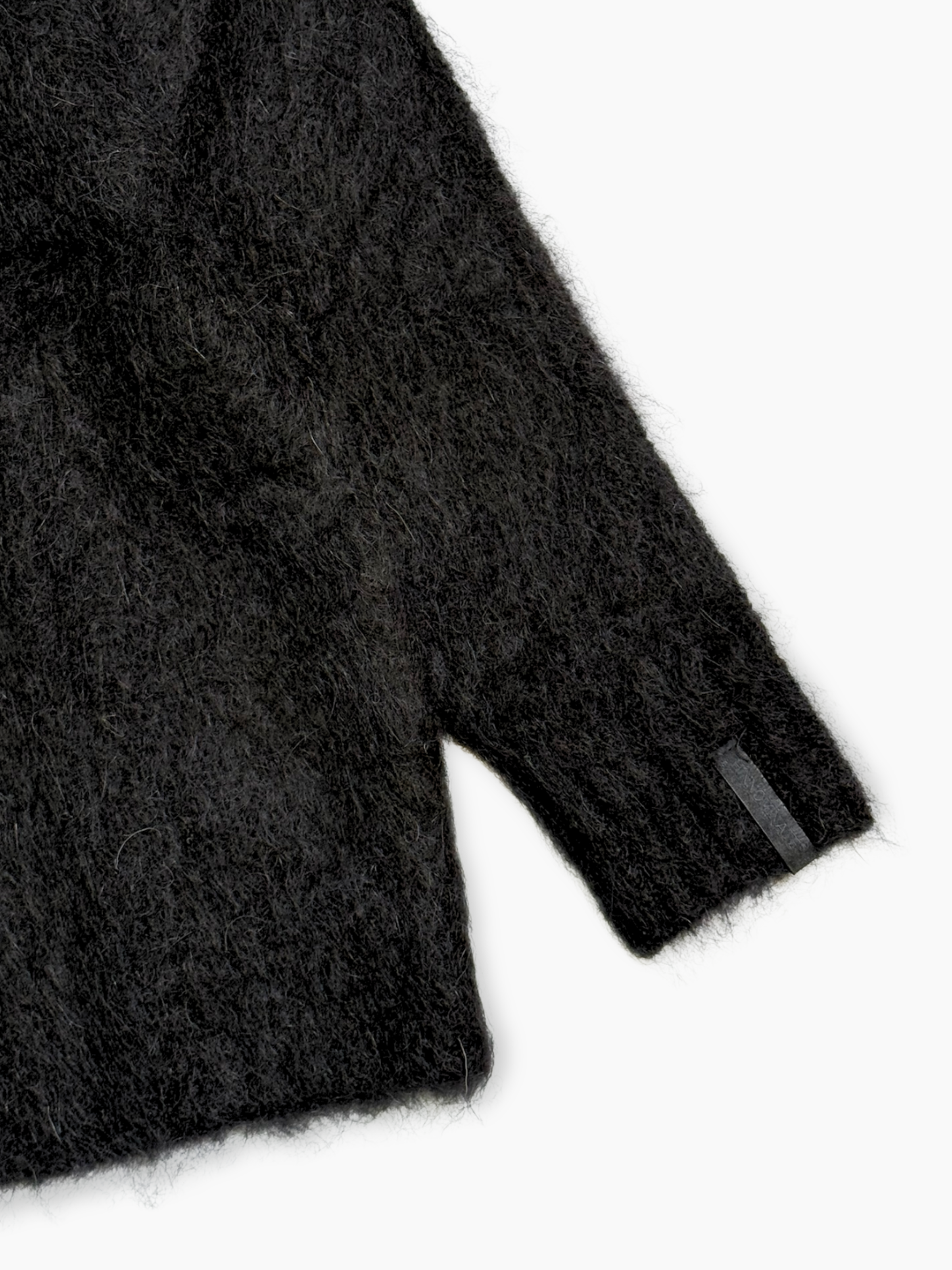 A simple and refined piece, the black mohair sweater from Hinnominate combines warmth and lightness in a clean design. Perfect with high-waisted jeans or tailored trousers, it's the ideal base for minimal yet impactful looks.