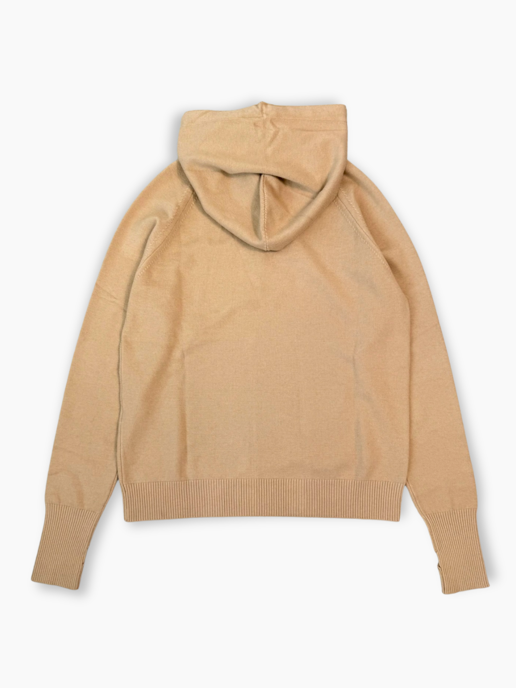 Versatile e calda, questa maglia nocciola con cappuccio è pensata per chi ama un look cozy ma curato. Il ricamo tono su tono aggiunge un dettaglio sofisticato al capo, mentre i piccoli spacchi laterali e il tessuto morbido in viscosa la rendono ideale da indossare ogni giorno, con leggings o pantaloni in maglia.