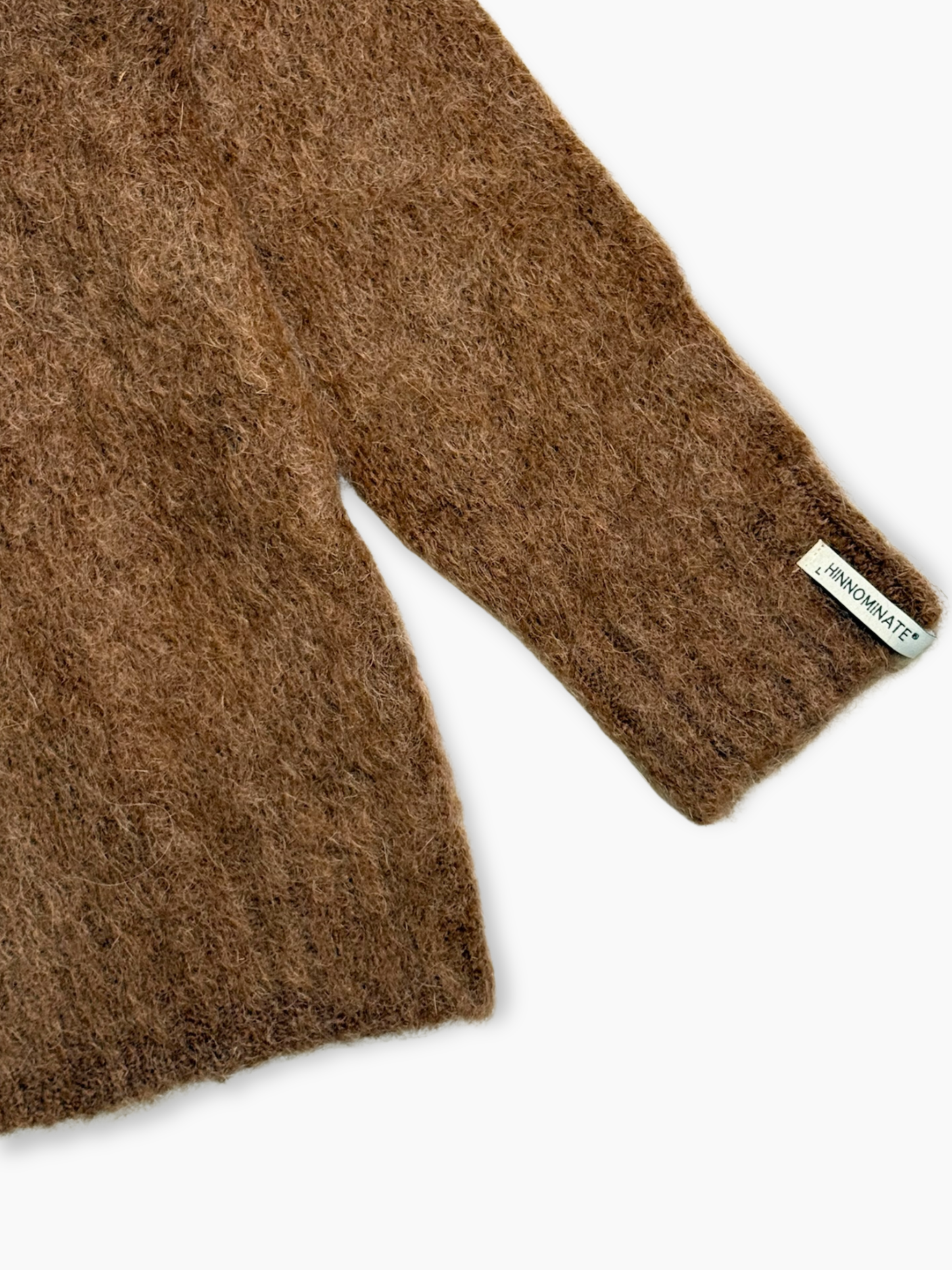 A classic revisited with a contemporary twist. The brown Hinnominate mohair sweater is the ideal piece for embracing the season with style and softness. Perfect with cargo pants, jeans, or midi skirts for a cozy yet sophisticated look.