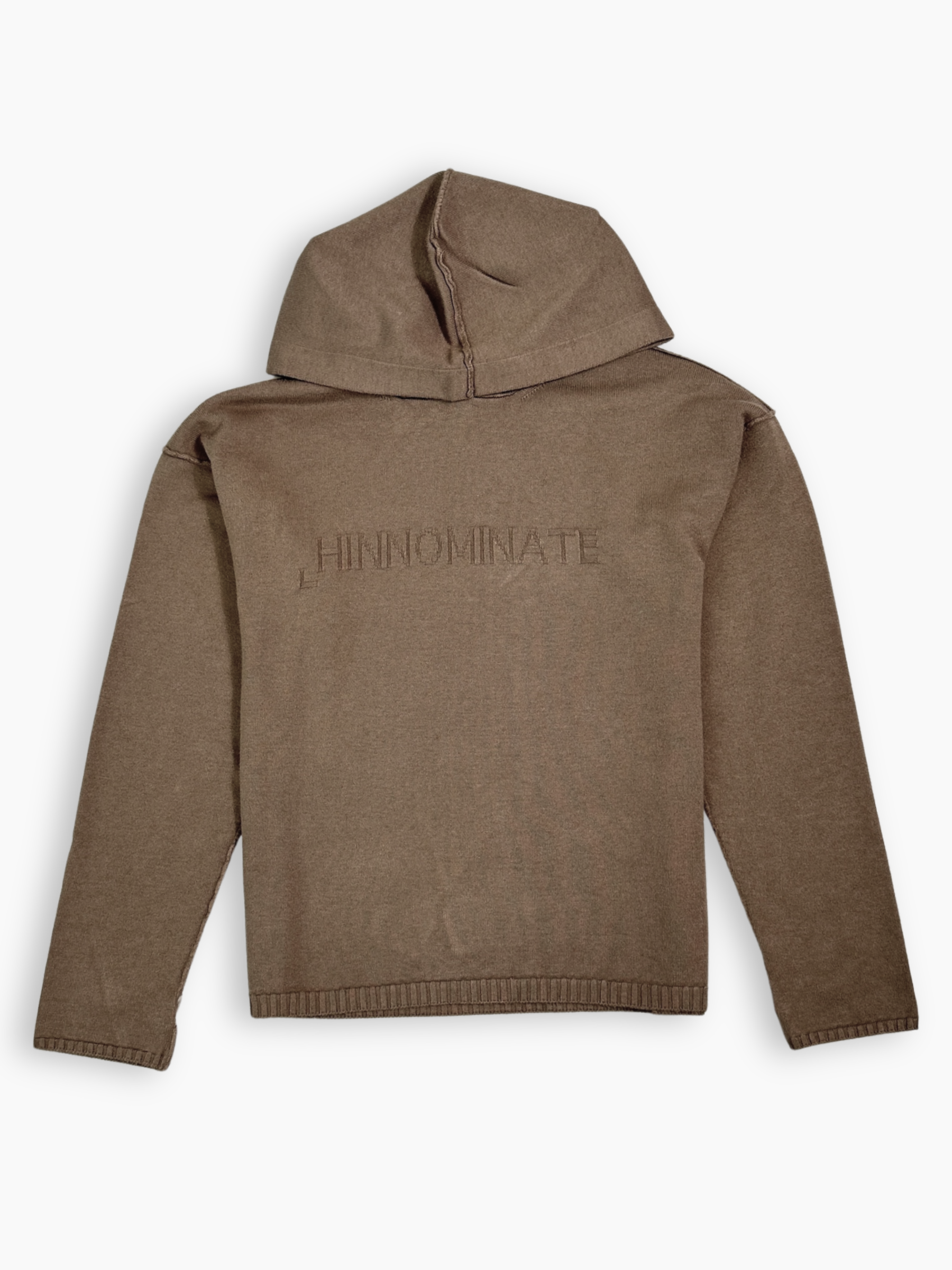 Minimalismo e morbidezza si incontrano in questa maglia con cappuccio firmata _HINNOMINATE. Realizzata in un filato leggero e piacevole al tatto, dona un look rilassato ma curato, perfetto per outfit casual ma distintivi. Il logo tono su tono ricamato aggiunge un dettaglio essenziale e sofisticato.