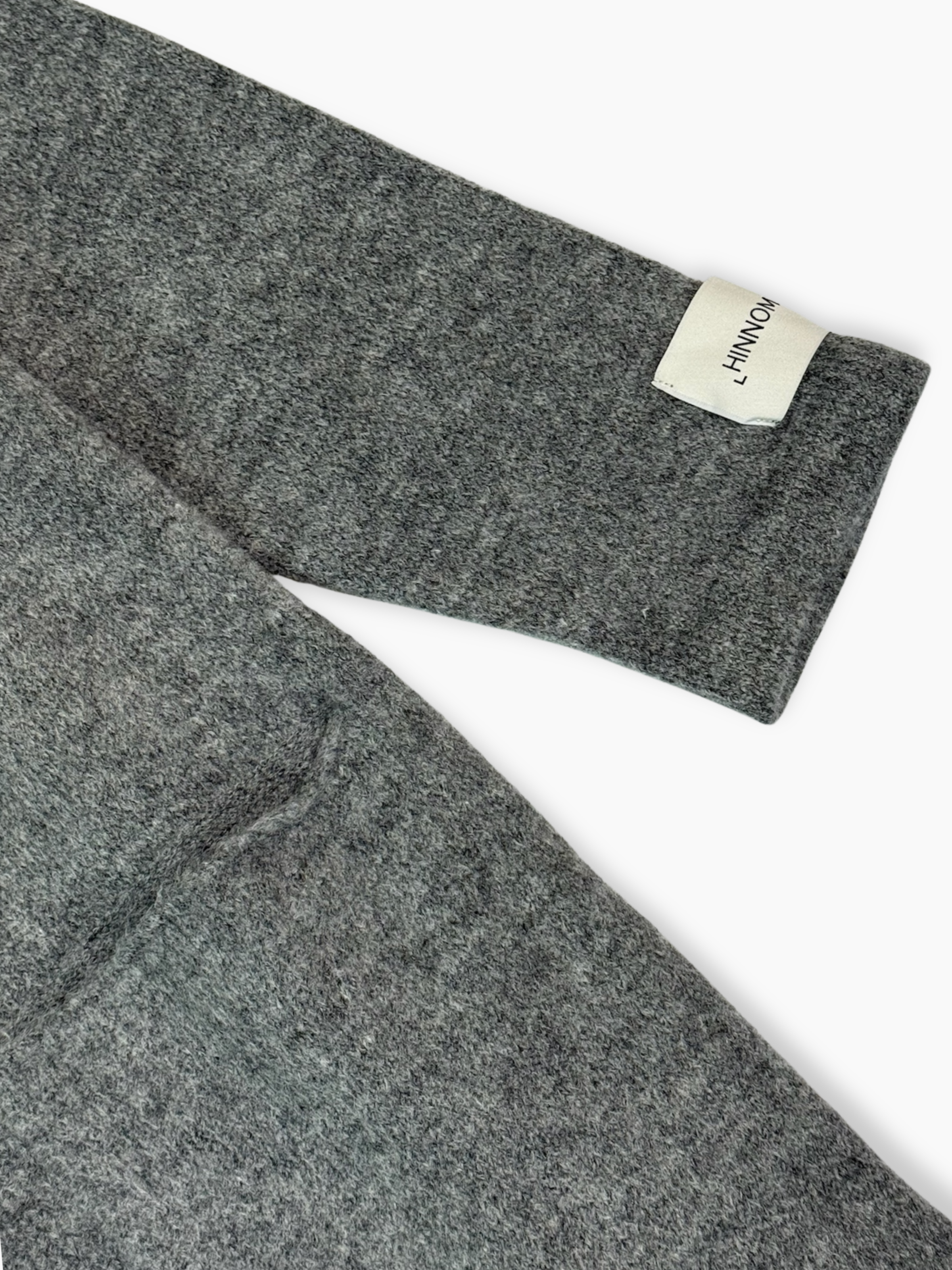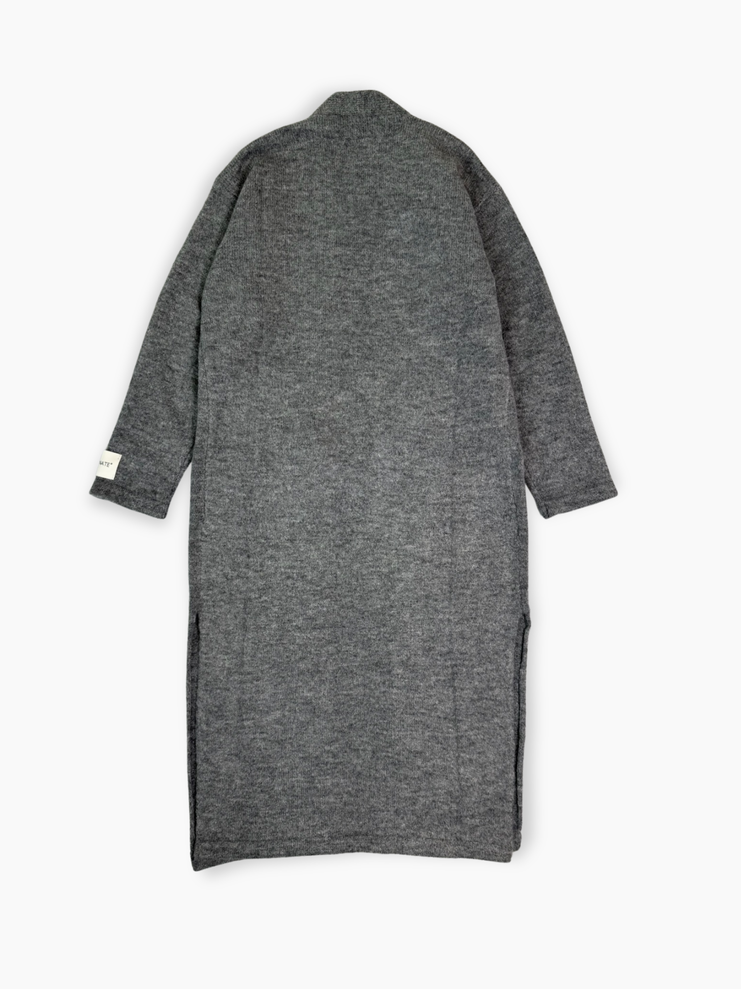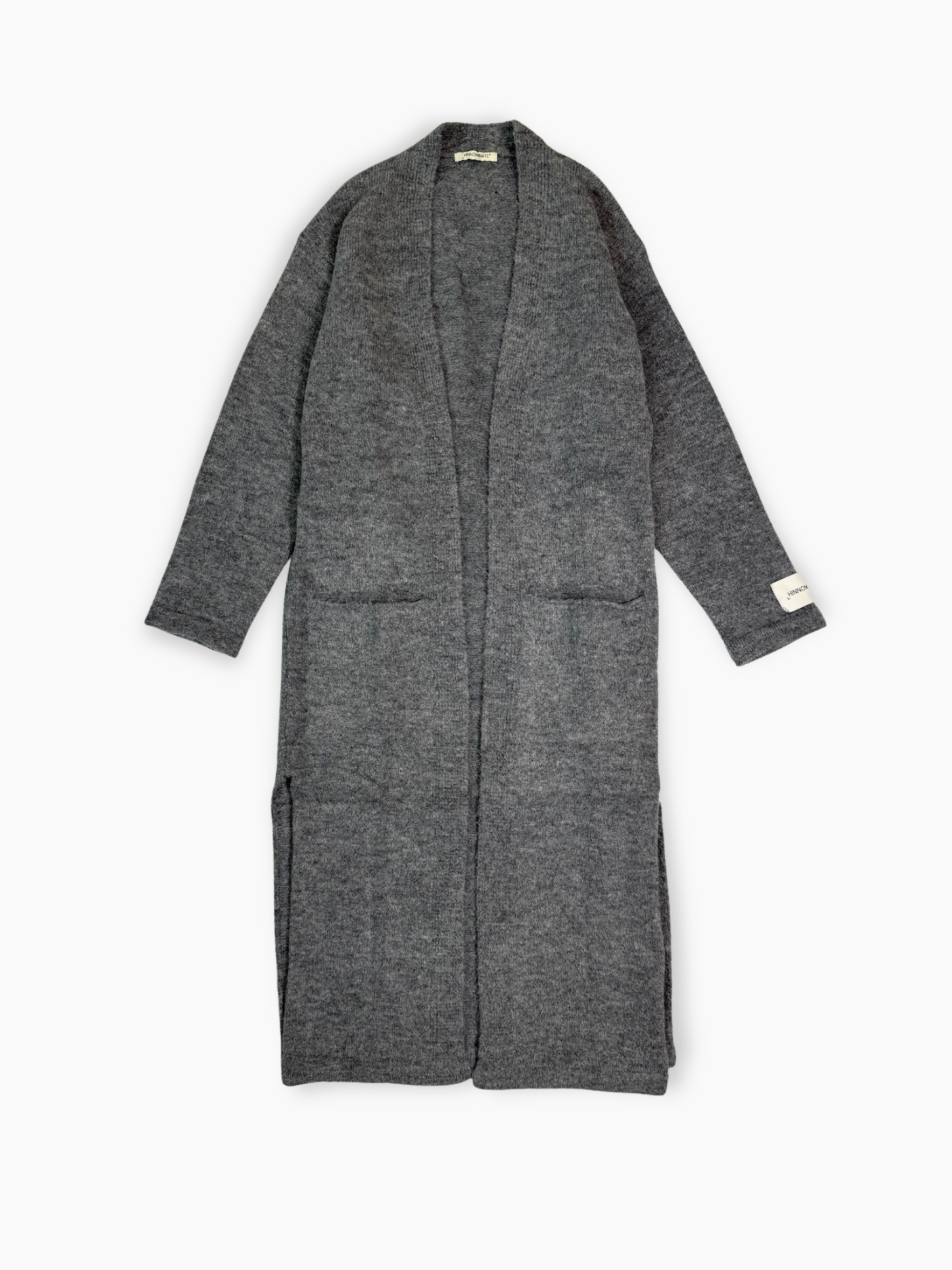Hinnominate long sweater made of soft melange gray knit. The open design with front pockets and a straight fit combines comfort and versatility, perfect as a cardigan over a top or turtleneck for a cozy and refined look.