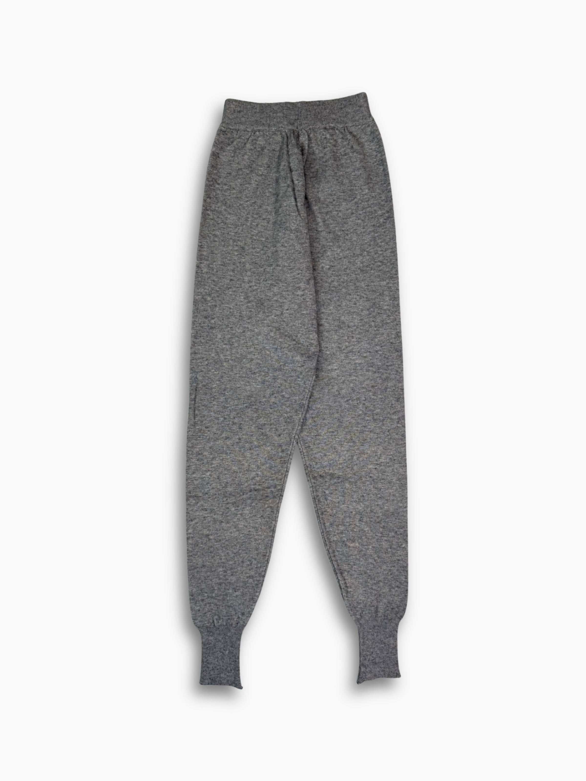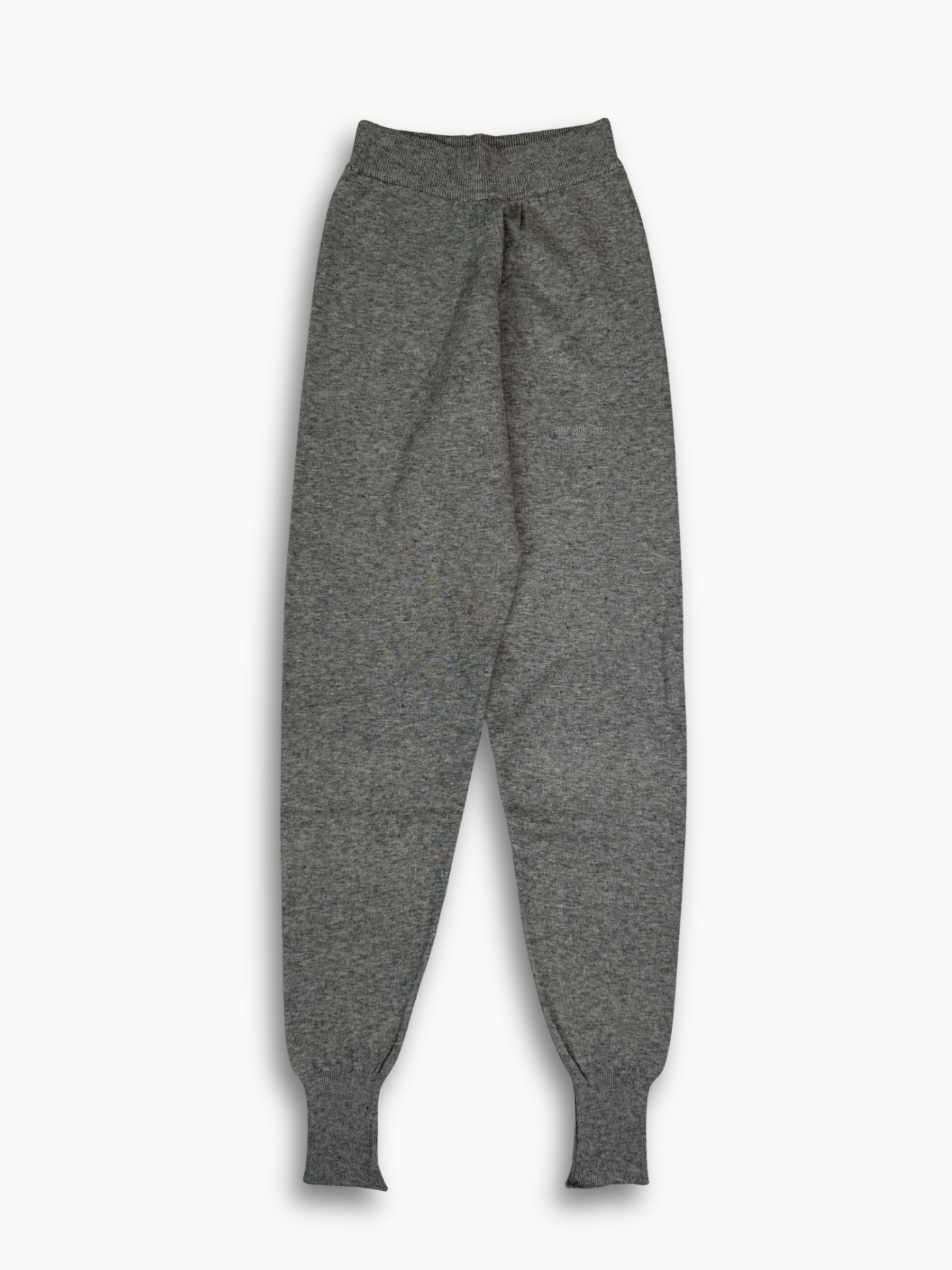 Hinnominate trousers crafted from soft melange grey knit. The minimal design with an elastic waist and straight hem offers everyday comfort with an elegant touch. Ideal for pairing with oversized sweaters or sweatshirts for a cozy and sophisticated look.