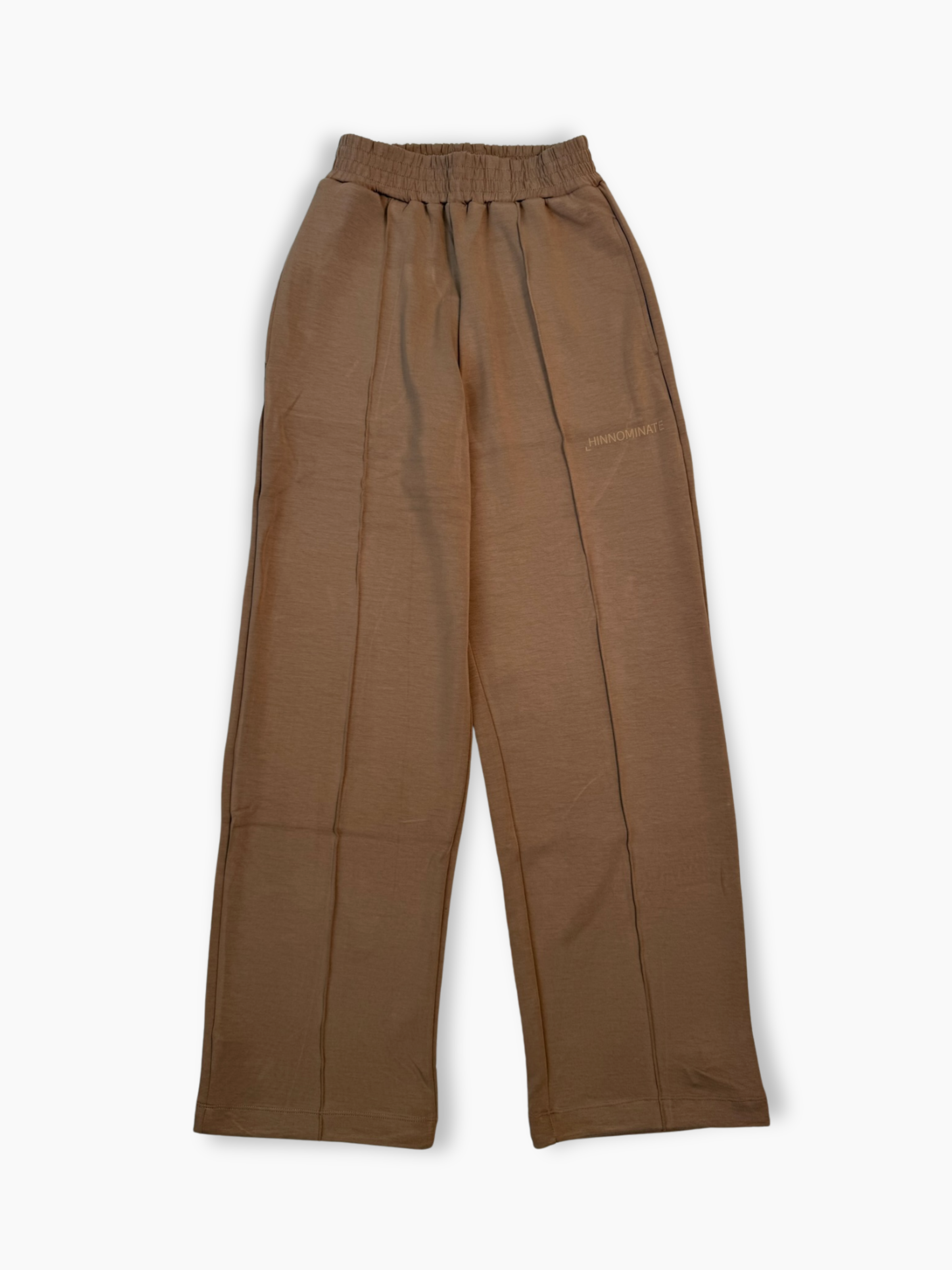 Minimalist and versatile, these brown Hinnominate modal trousers stand out for their straight fit with figure-flattering ribbing. The comfort of the flowing fabric pairs with a sophisticated, neutral palette.
