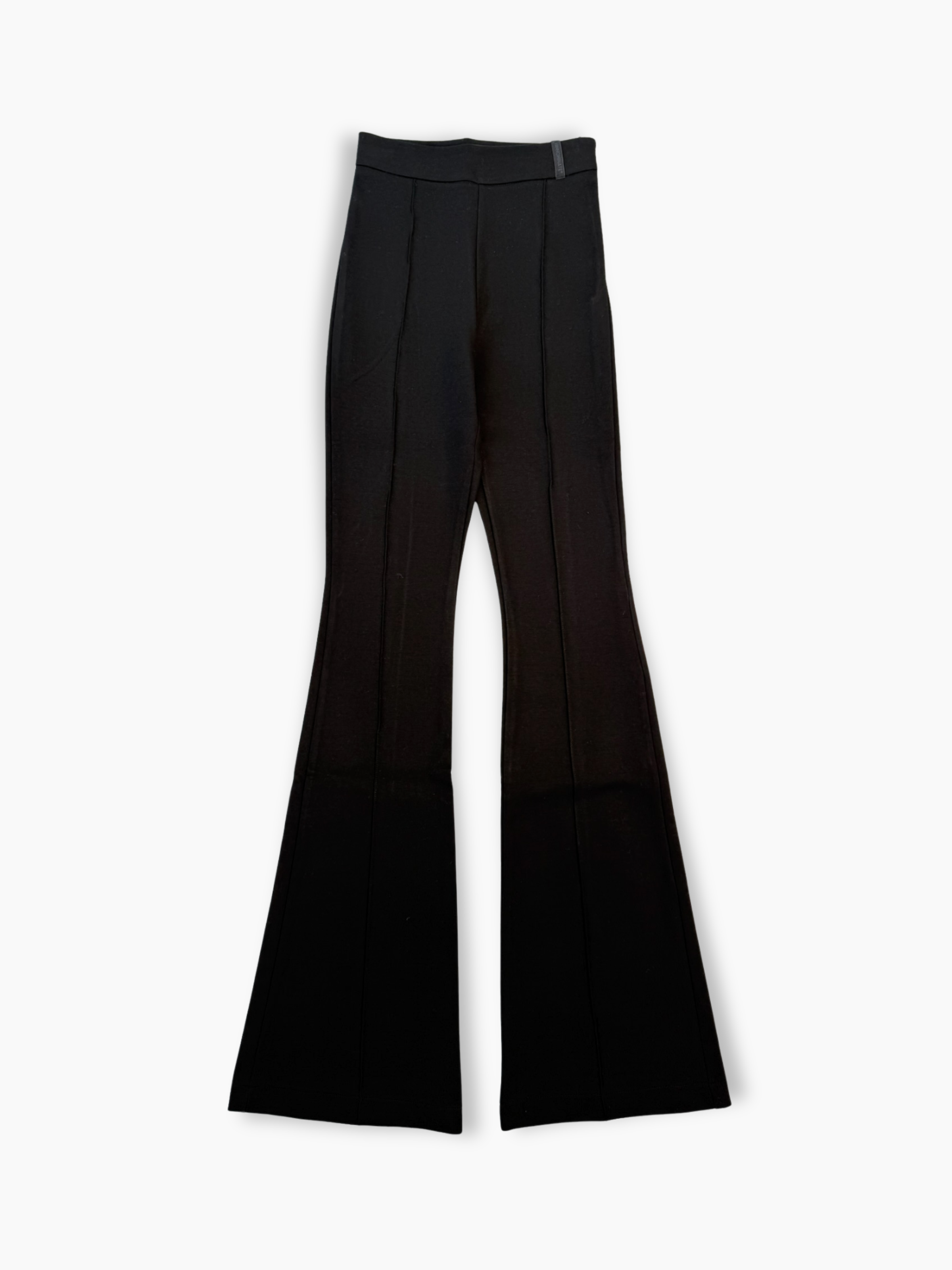 Clean lines, comfortable construction, and contemporary style: these black Hinnominate trousers in Milano stitch are a women's wardrobe essential. The slightly flared straight leg and vertical center seams slim the figure, offering a minimalist yet assertive look.