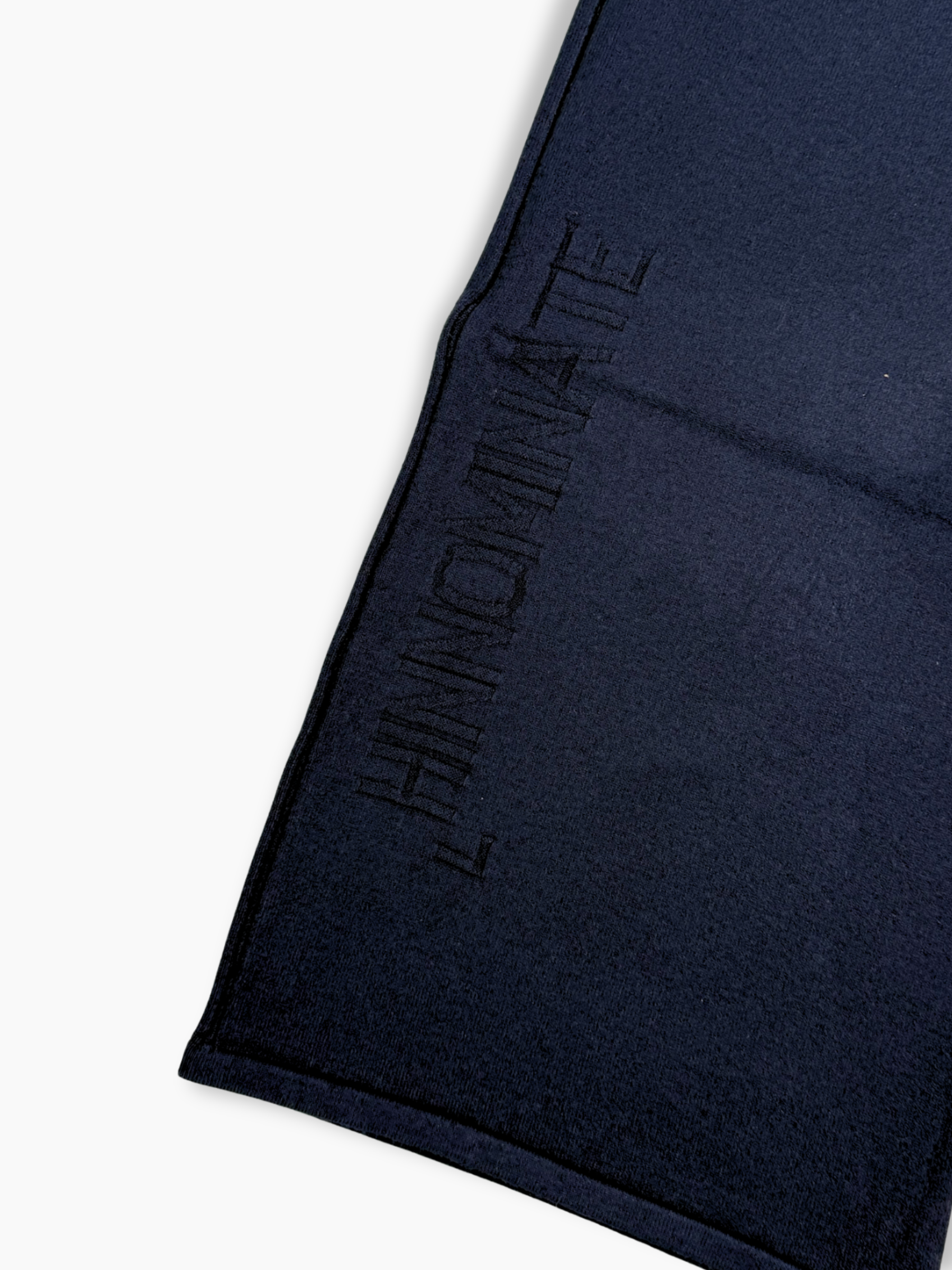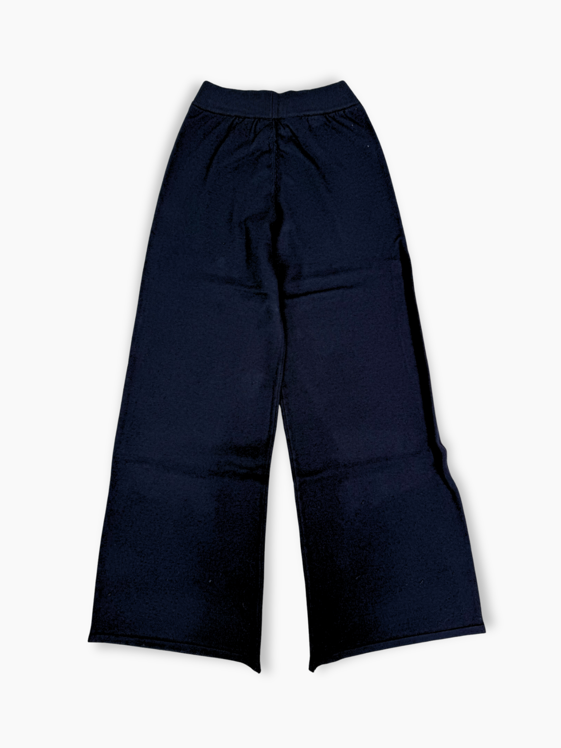 Elegant yet relaxed, these dark blue knit palazzo pants strike the perfect balance of comfort and style. The tonal embroidered logo on the leg adds a minimalist yet distinctive touch. The soft, structured knit moves naturally with you, ideal for day or travel outfits.