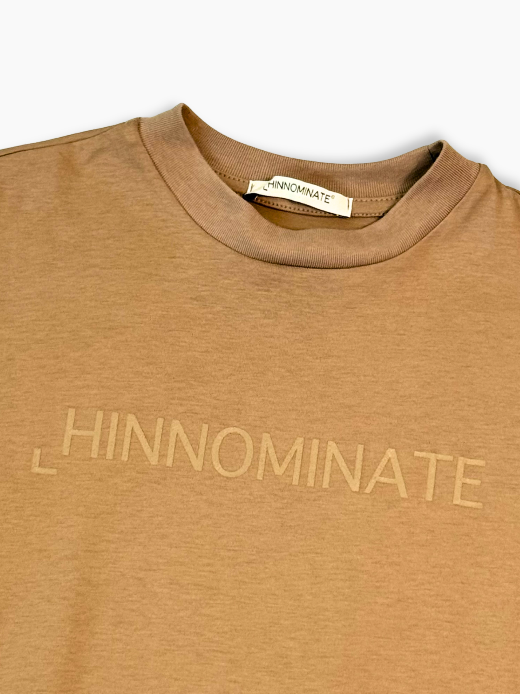 Taupe T-shirt in lightweight cotton from Hinnominate, featuring a minimal design with a tone-on-tone logo on the chest. A versatile and refined piece, ideal for everyday wear with a subtle touch of contemporary style.
