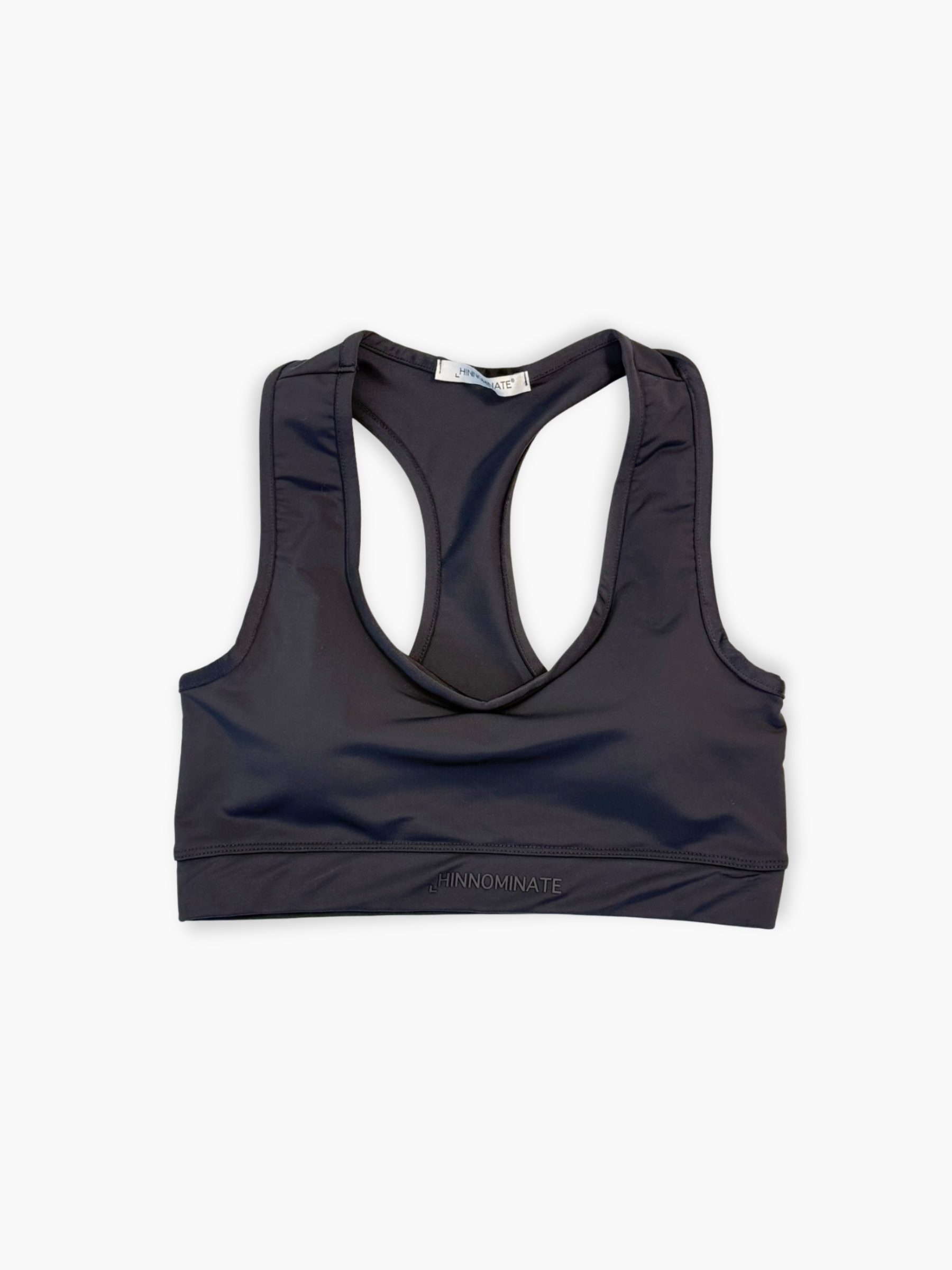 Black sports top with a minimalist design and racerback neckline. Made from stretch technical fabric, it ensures maximum comfort and support during physical activity or for a casual, modern look. A versatile piece, ideal for both the gym and your free time.