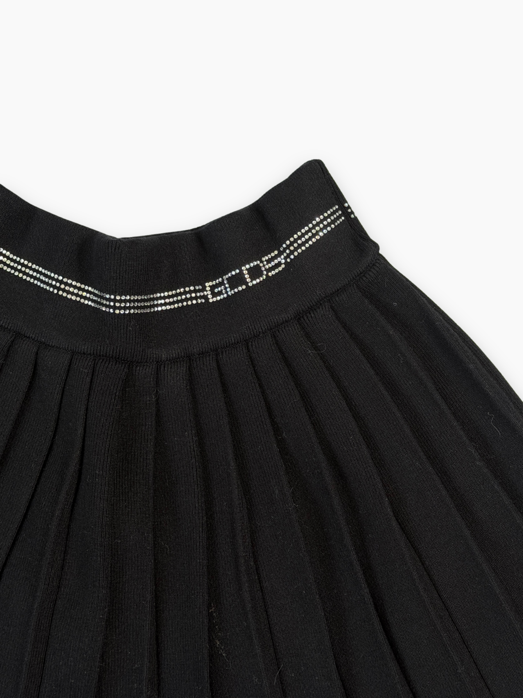Gonna nera plissé con costruzione svasata e vita elasticizzata. Il design morbido valorizza il movimento, mentre la fascia in vita con dettaglio GCDS aggiunge un tocco sport-chic. Un modello versatile perfetto per look casual o più ricercati.
