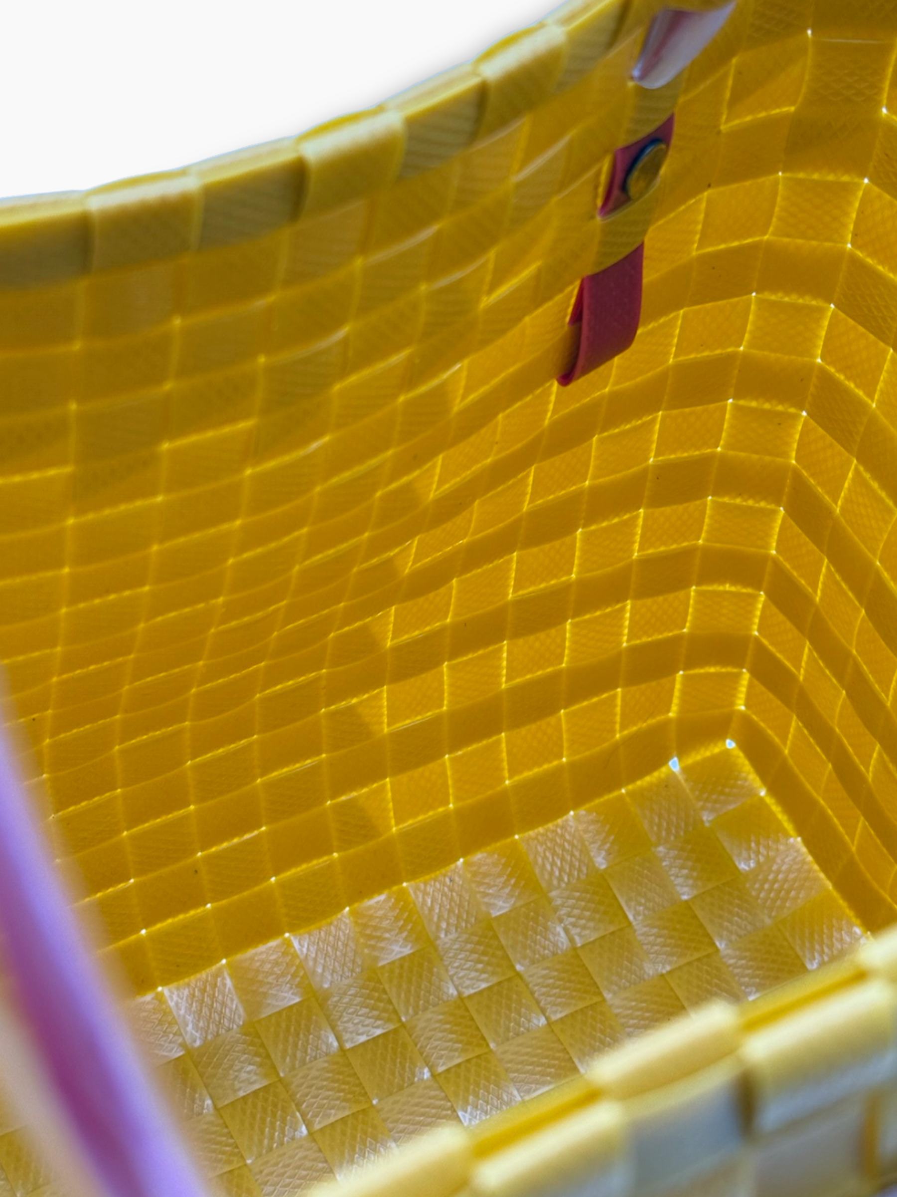 Marni's Basket bag expresses the brand's playful and contemporary spirit with its hand-woven, colorful plastic construction. The penguin graphic adds an irresistible pop touch, making it perfect for summer or adding color to urban looks.