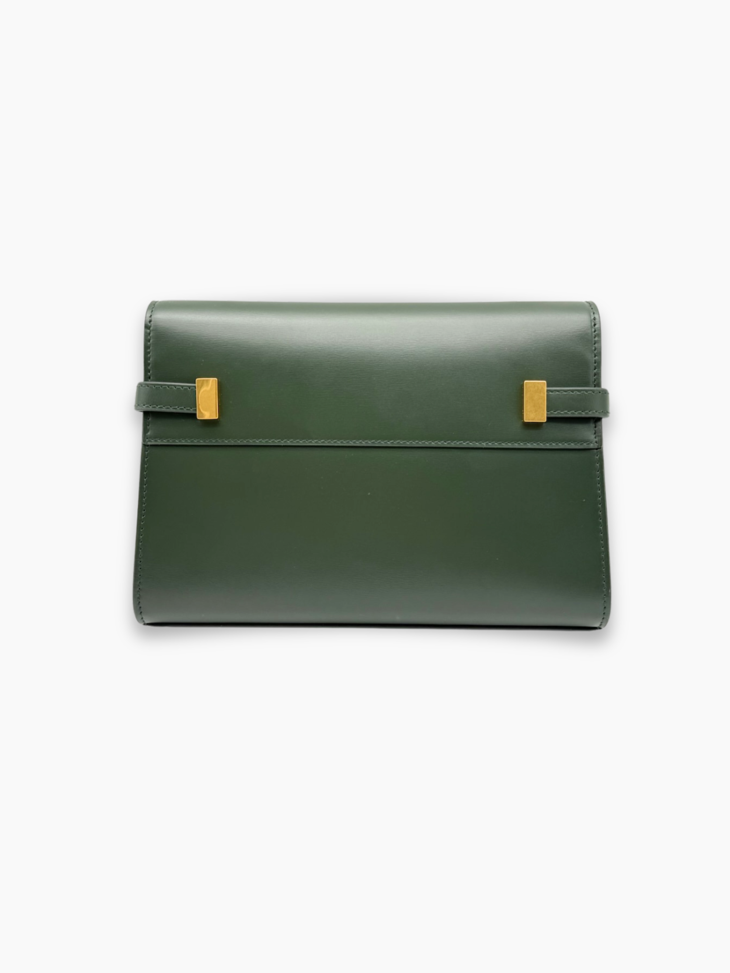 Saint Laurent's timeless elegance takes shape in the Manhattan Small: a compact bag in smooth green leather with gold-tone hardware that recalls the house's refined heritage. Minimalist yet striking, it's the perfect accessory to elevate any look—day or evening. The rigid structure enhances the clean lines, while the gold-tone magnetic closure adds a touch of luxury.