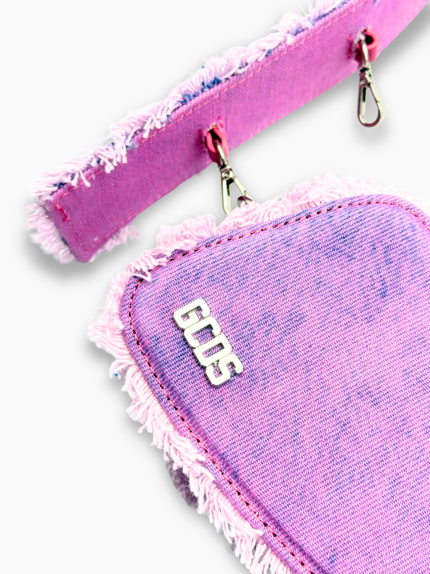 Compatta ma di grande impatto, la borsa rosa della linea Comma firmata GCDS si distingue per la sua silhouette curva e per il denim sfrangiato dal gusto urban. Il charm a cuore con lucchetto logato e la targhetta metallica GCDS completano questo accessorio dallo stile ironico e audace. Indossala a spalla o a mano per dare un twist pop al tuo look quotidiano.