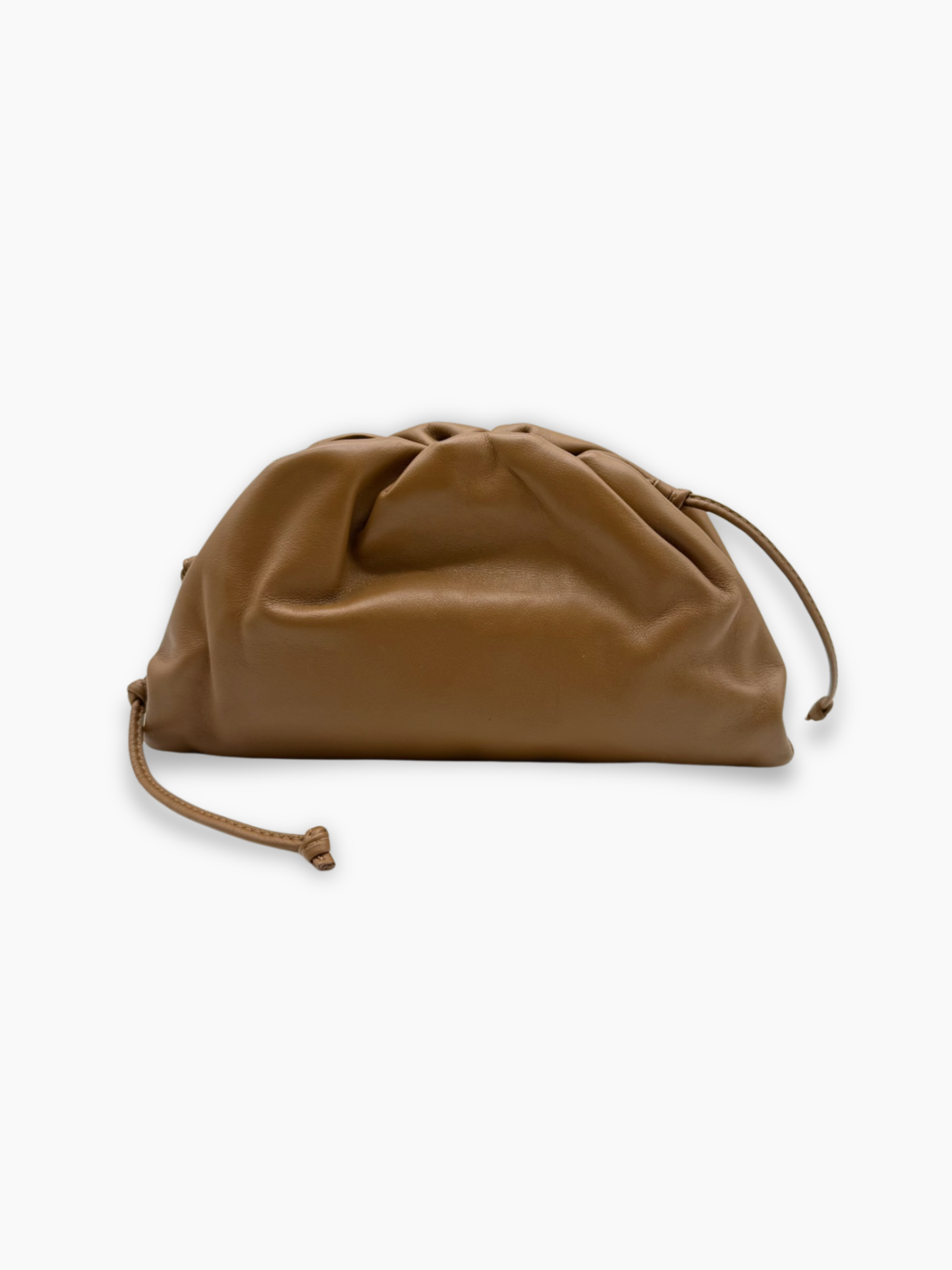 An icon of contemporary minimalism from Bottega Veneta. The Pouch clutch in soft caramel-colored leather features a clean design and an unmistakable gathered silhouette. Understated elegance and luxurious texture complete any outfit with style.