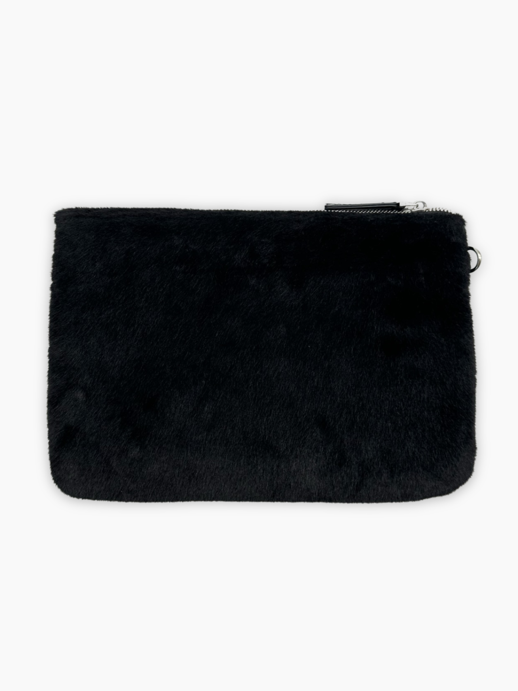 Minimalist and soft to the touch, the black Hinnominate faux fur clutch is the perfect accessory to complete your urban-chic looks. The compact design is enhanced by a metal zipper and logo label, for a simple yet distinctive style. Ideal both alone and paired with other accessories from the collection.