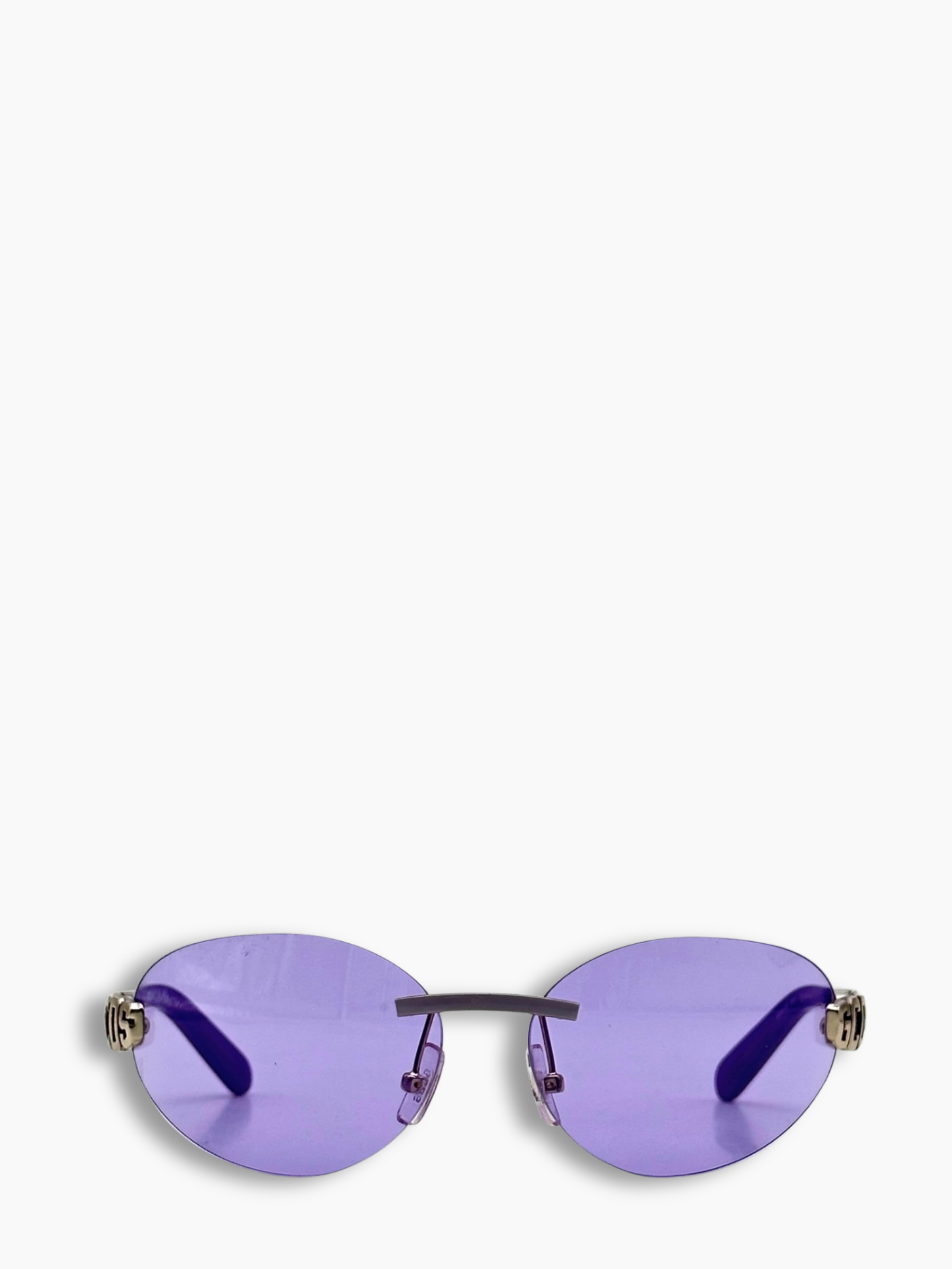 Occhiali da sole dal design ultraleggero e minimale, caratterizzati da lenti ovali viola e struttura metallica essenziale che dona un look futuristico e fashion. Perfetti per chi ama accessori unici e d’impatto.