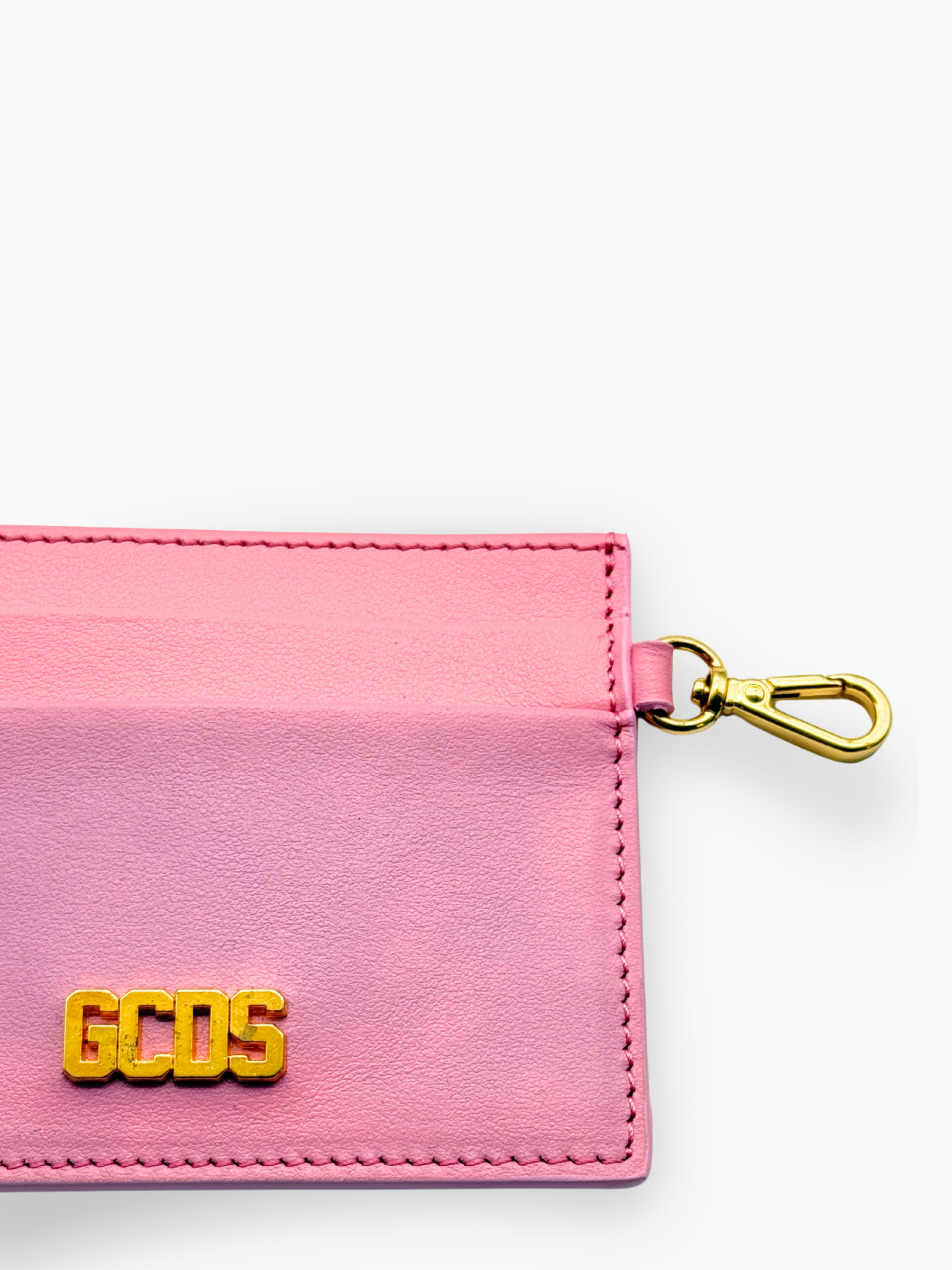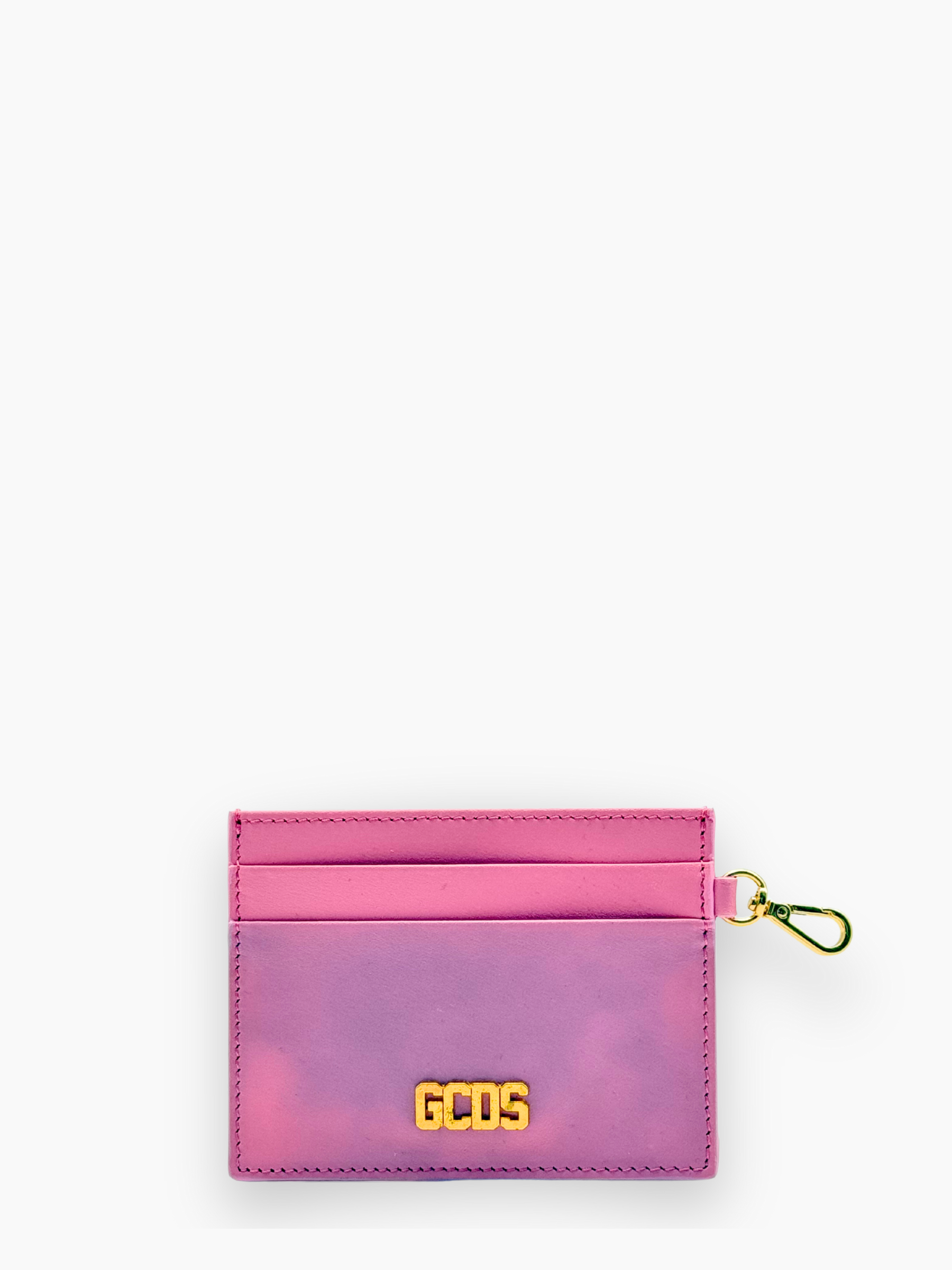 Un accessorio compatto e irresistibile: il porta carte rosa firmato GCDS è perfetto per aggiungere un tocco pop e glam alla tua quotidianità. Realizzato in pelle liscia con dettagli dorati e moschettone laterale, è pensato per chi ama unire funzionalità e stile. Da agganciare alla borsa o portare al polso, è il dettaglio che fa la differenza.