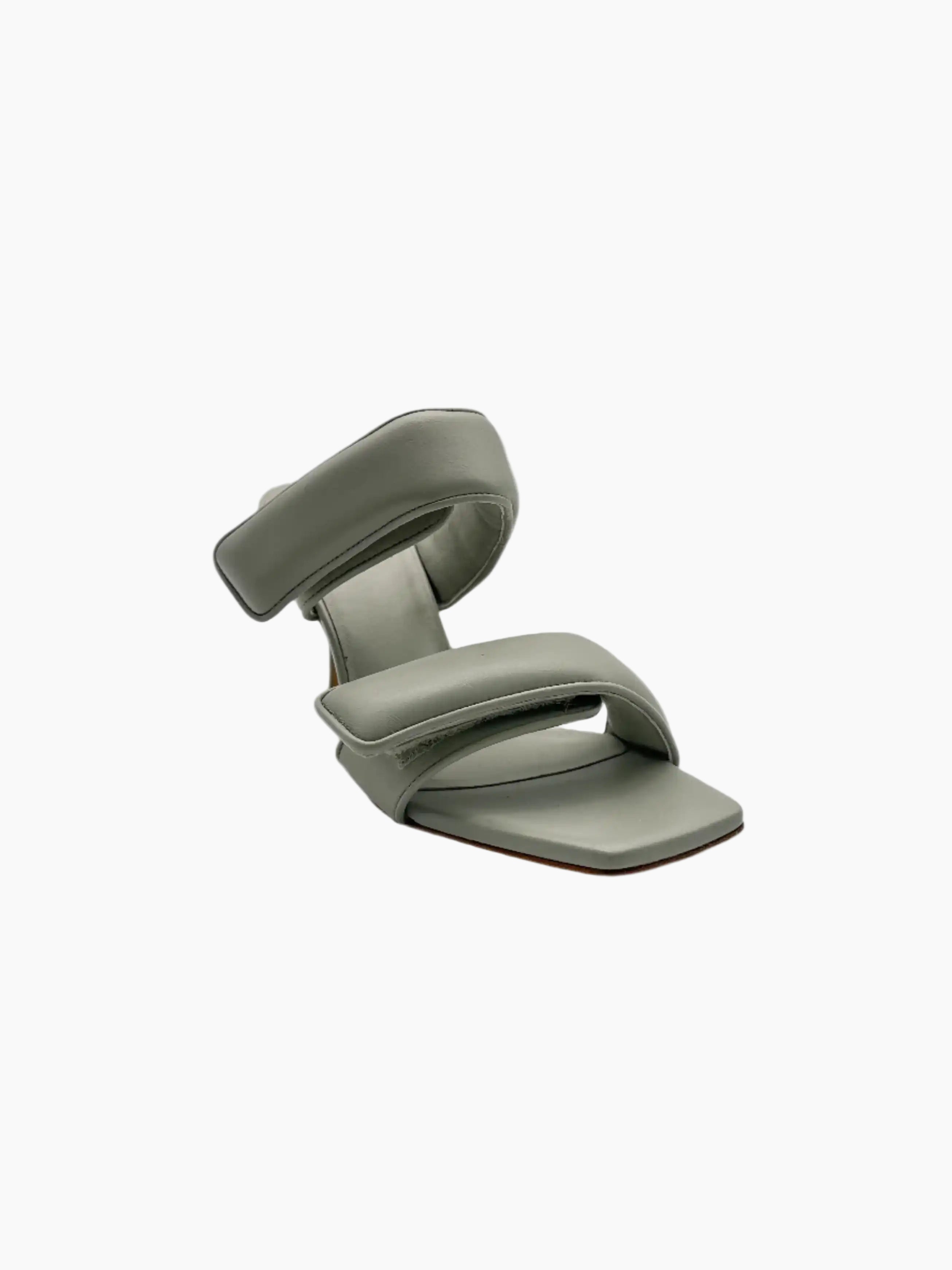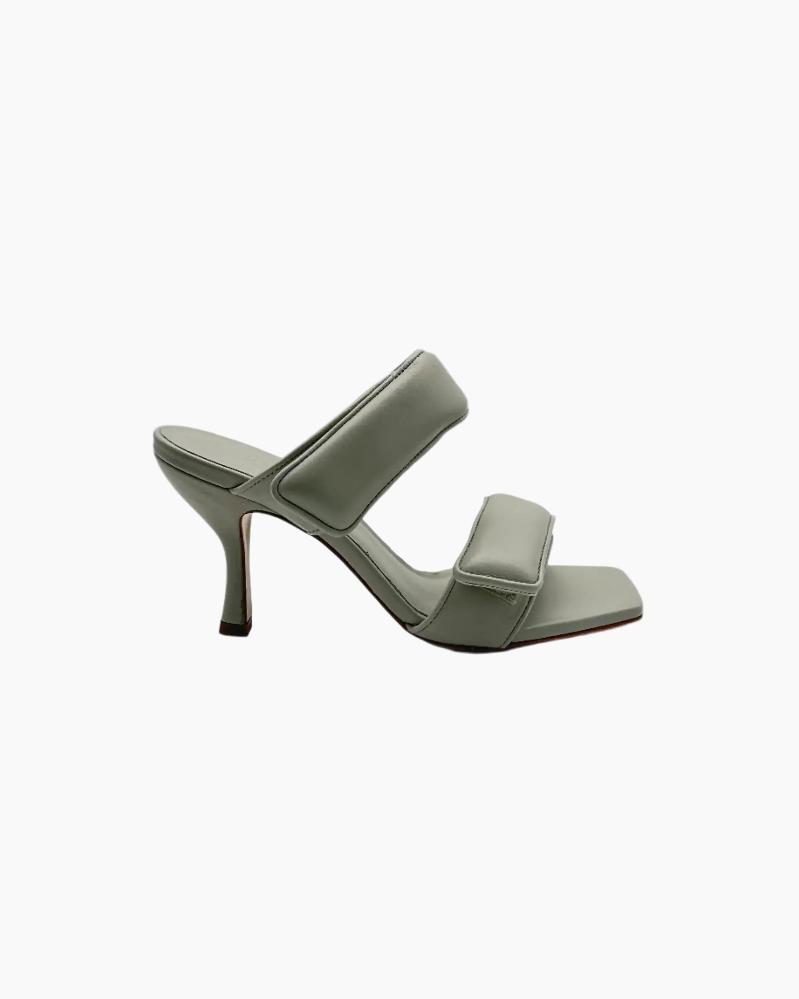 These elegant Gia Borghini sandals embody a refined and contemporary style. Crafted from soft white leather, they stand out for their minimalist design with a double padded strap and stiletto heel, ideal for enhancing any evening or special occasion look.