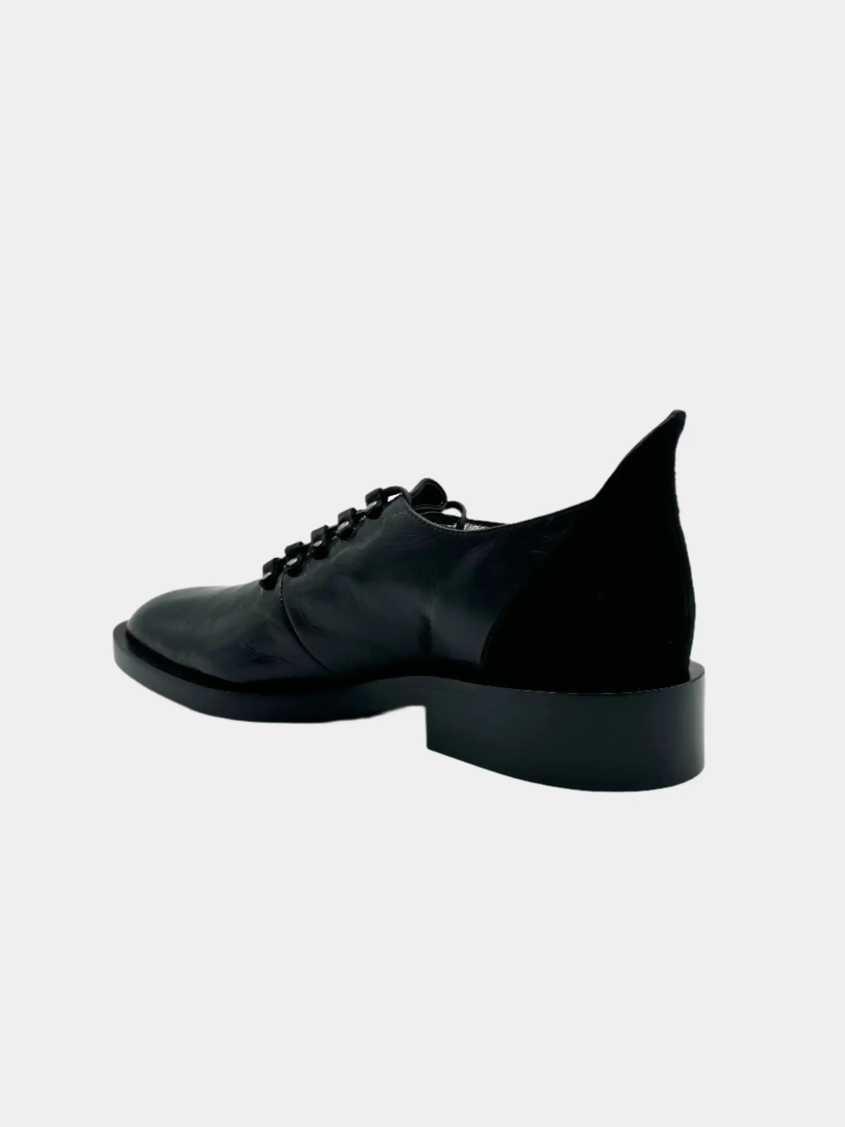 This black derby by Givenchy combines sophistication and contemporary design with a mix of fine materials. Crafted from hammered leather with suede inserts, it stands out for its original lacing decorated with metal elements and for its elegant and slender silhouette. Perfect for completing sophisticated looks with a decisive touch.