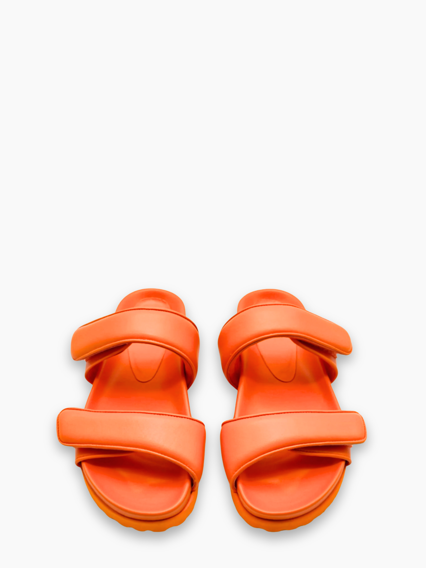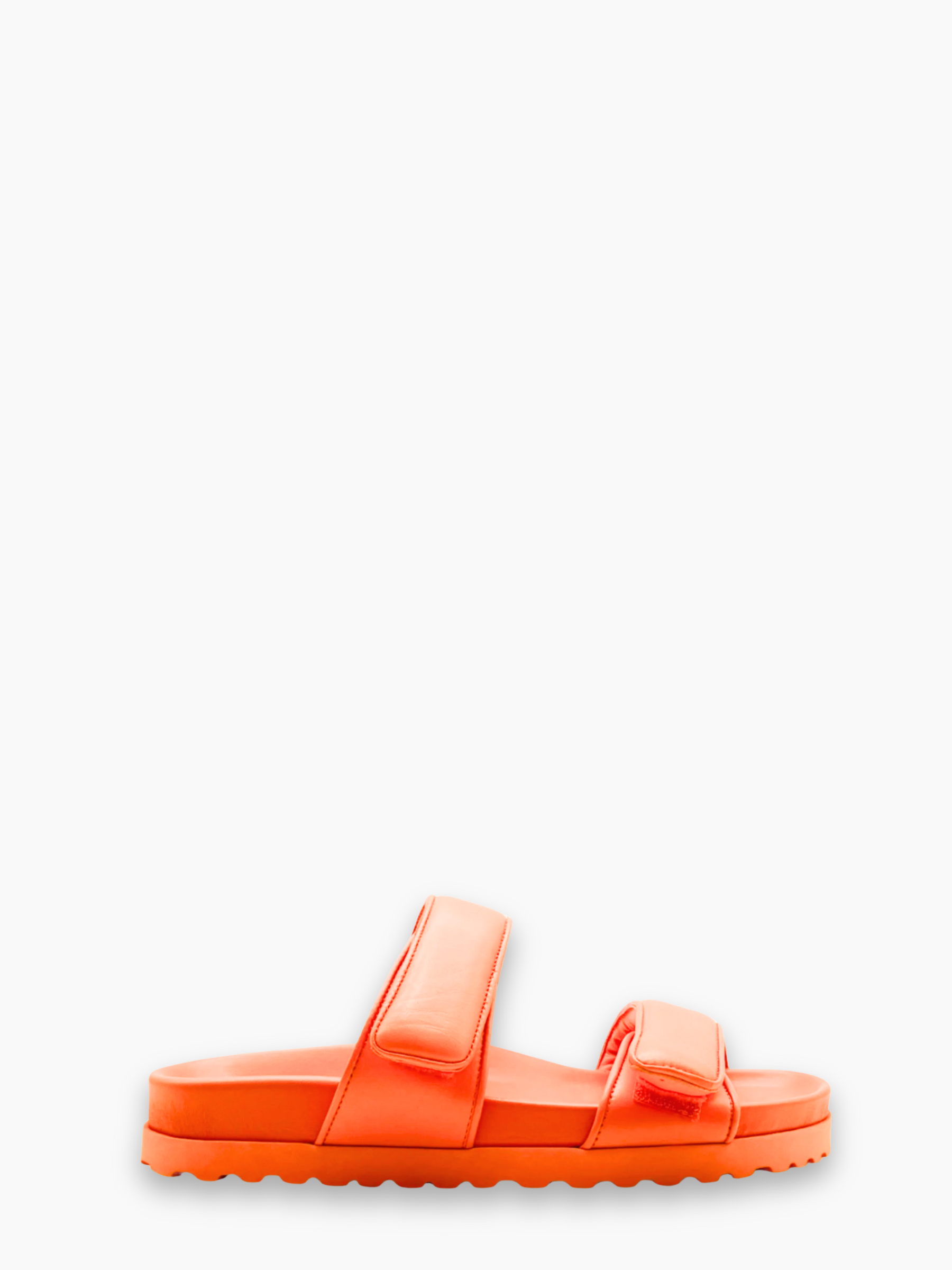 Gia Borghini sandals with a contemporary, casual-luxury design. Crafted from soft orange leather with a double padded strap and thick, serrated sole, they offer the perfect balance of comfort and style. Ideal for adding a modern, vibrant touch to summer looks.