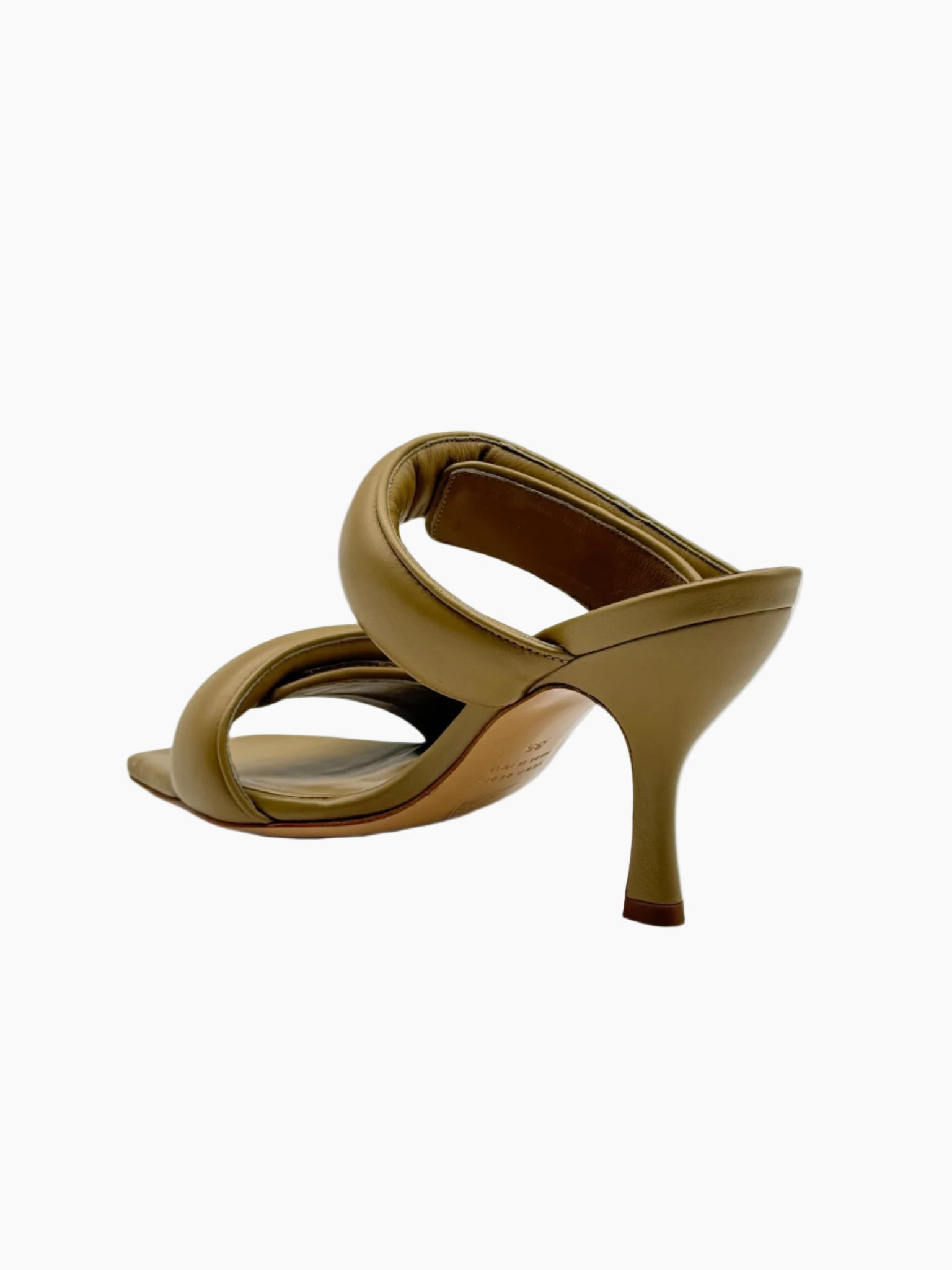 Contemporary elegance and comfort meet in these camel sandals by Gia Borghini. The simple yet striking design is enhanced by the double padded strap and the sleek silhouette with a square toe. A sophisticated style, perfect for completing summer looks and special evenings with a modern touch.