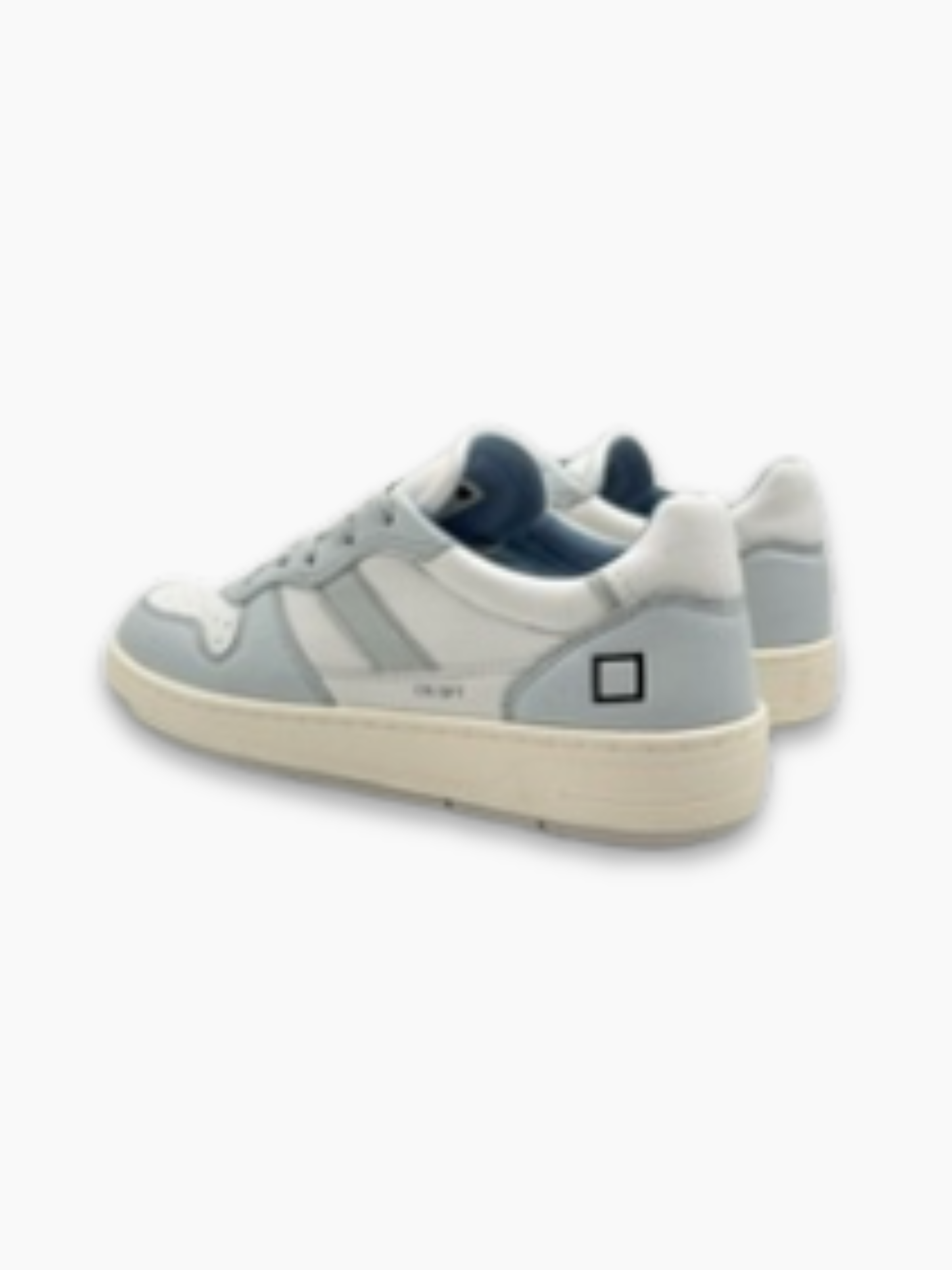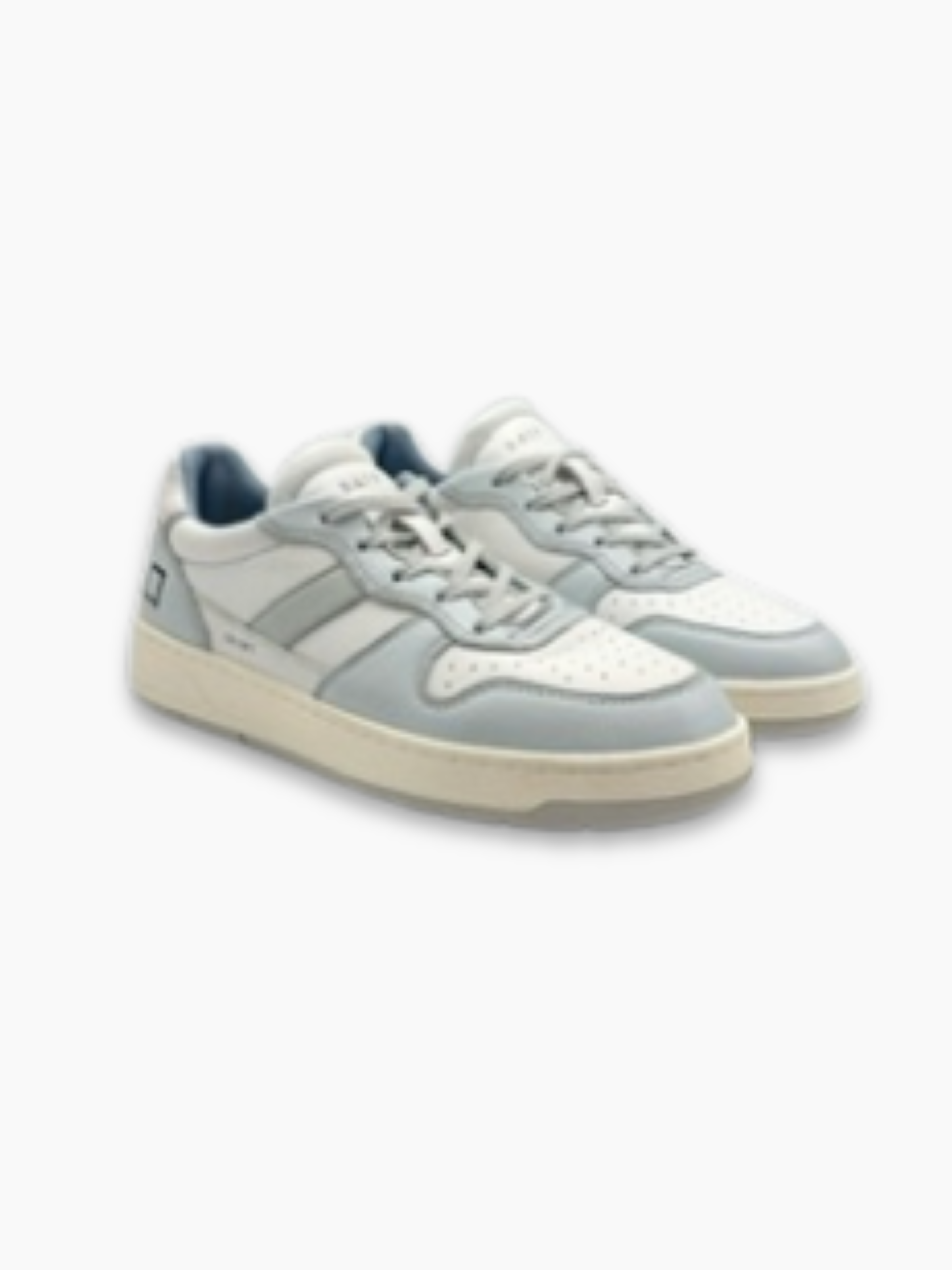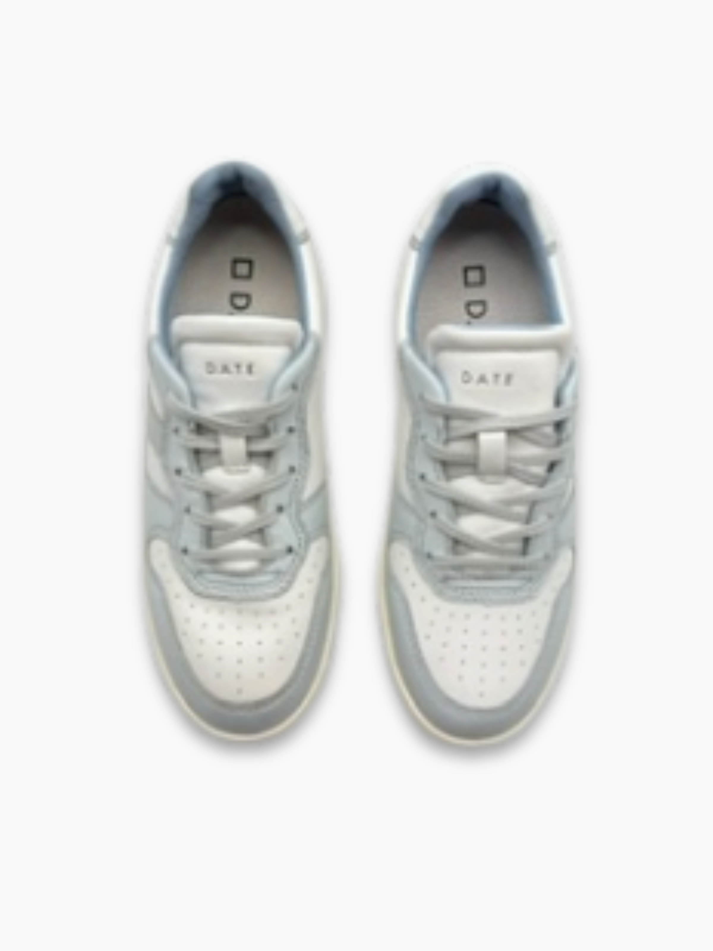 These low-top DATE sneakers feature a clean, contemporary design. Crafted from white leather with grey suede inserts and light blue details, they offer everyday comfort and a versatile style that easily pairs with any outfit.