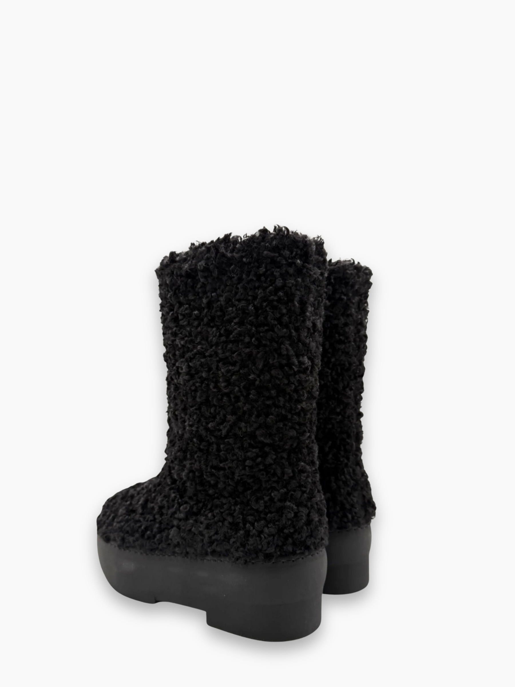 Gia Borghini boots with a cozy, contemporary design. Crafted from soft black shearling, they wrap the foot and leg in a warm, soft feel, while the platform sole adds a modern, bold touch. Perfect for completing relaxed yet sophisticated winter looks.