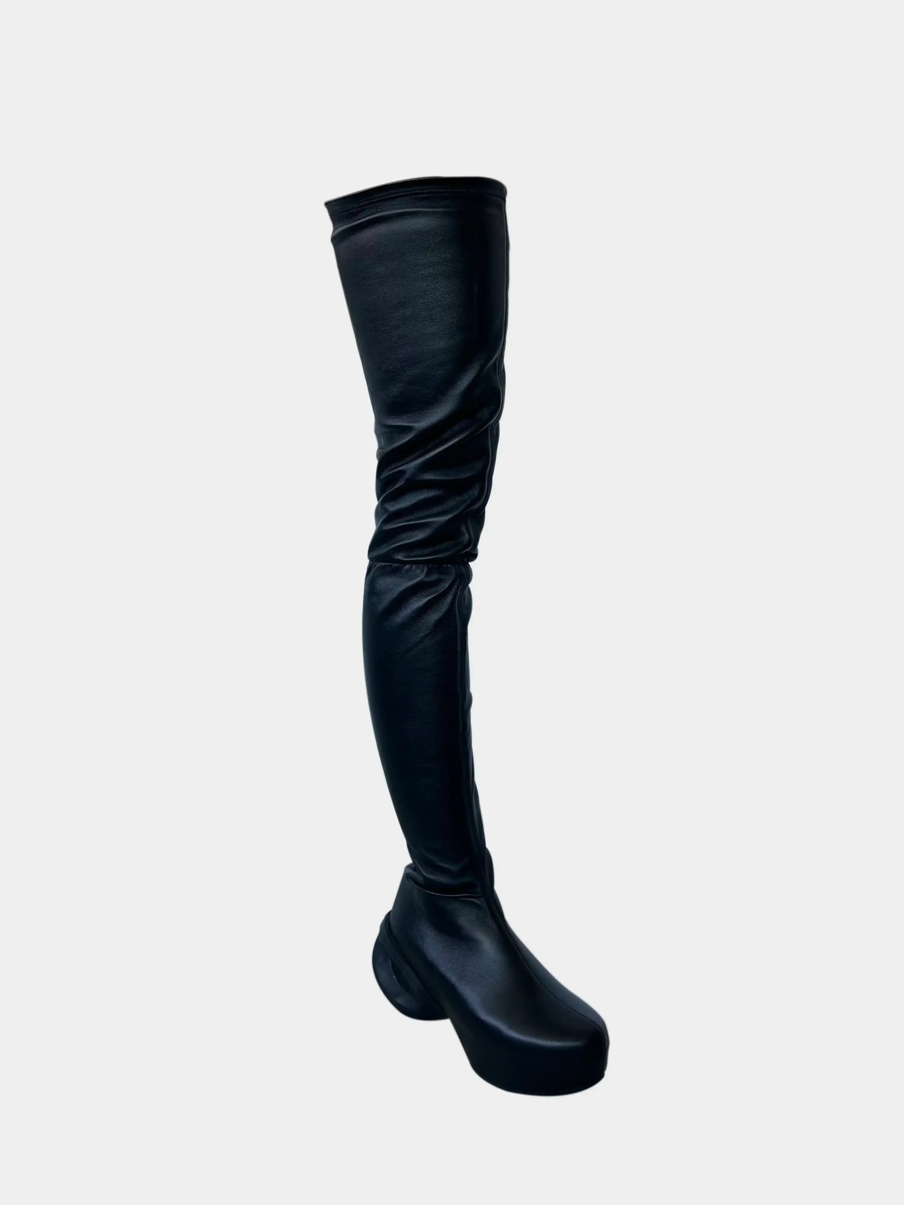 The Over The Knee boots by Givenchy are a bold and contemporary style statement. Crafted from matte black leather, they stand out for their high line that hugs the leg and their chunky sculptural sole that gives them a bold yet refined look. A unique design that combines urban elegance and practicality, completed by a logoed side zip and artisanal Made in Italy finishes.