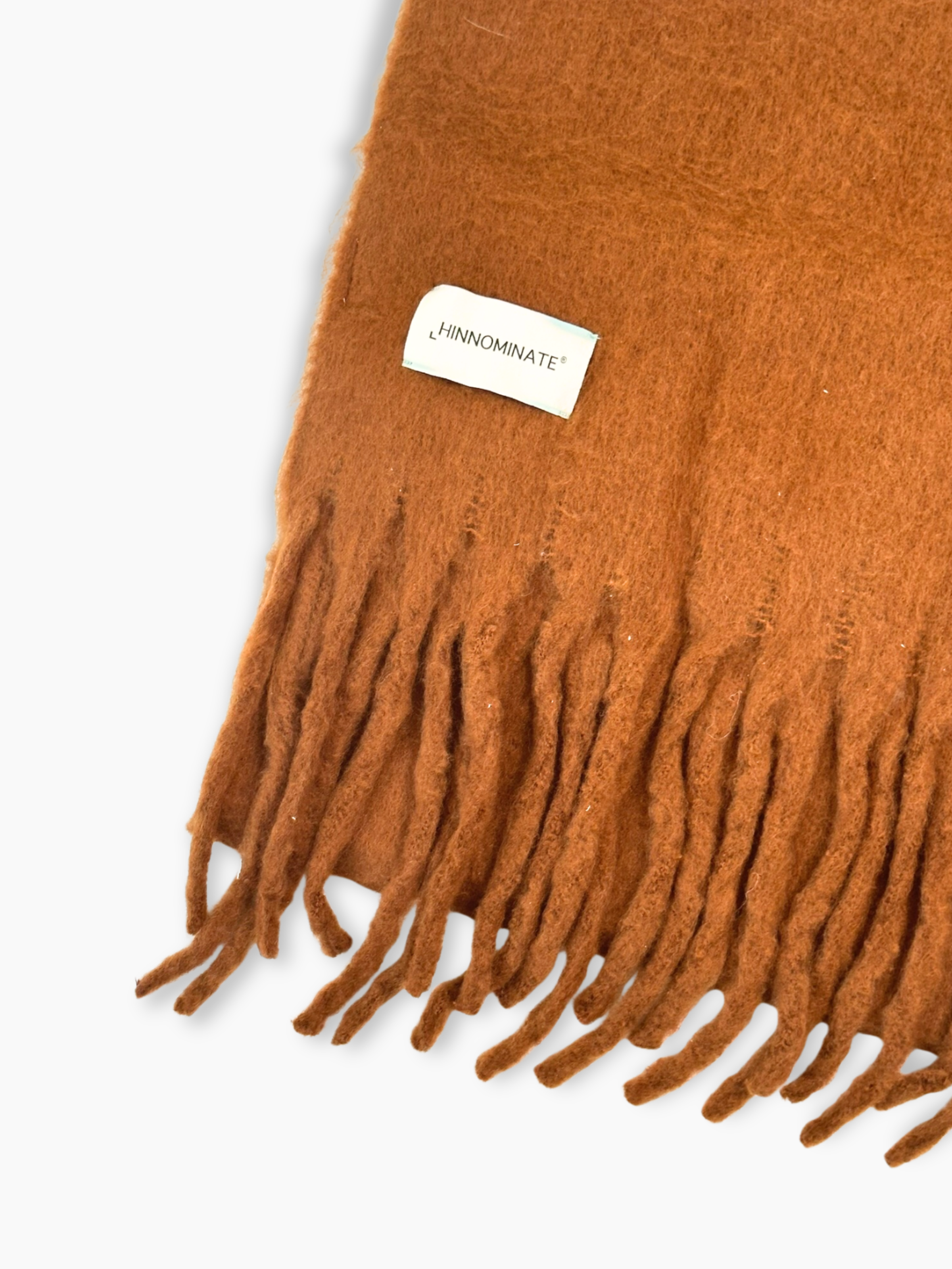 Cozy, warm, and on-trend: the brown Hinnominate scarf is the perfect accessory for facing winter in style. Crafted from a soft mohair-effect knit, it's embellished with long fringe and a logo label sewn onto the side. A must-have for any urban, cozy look.