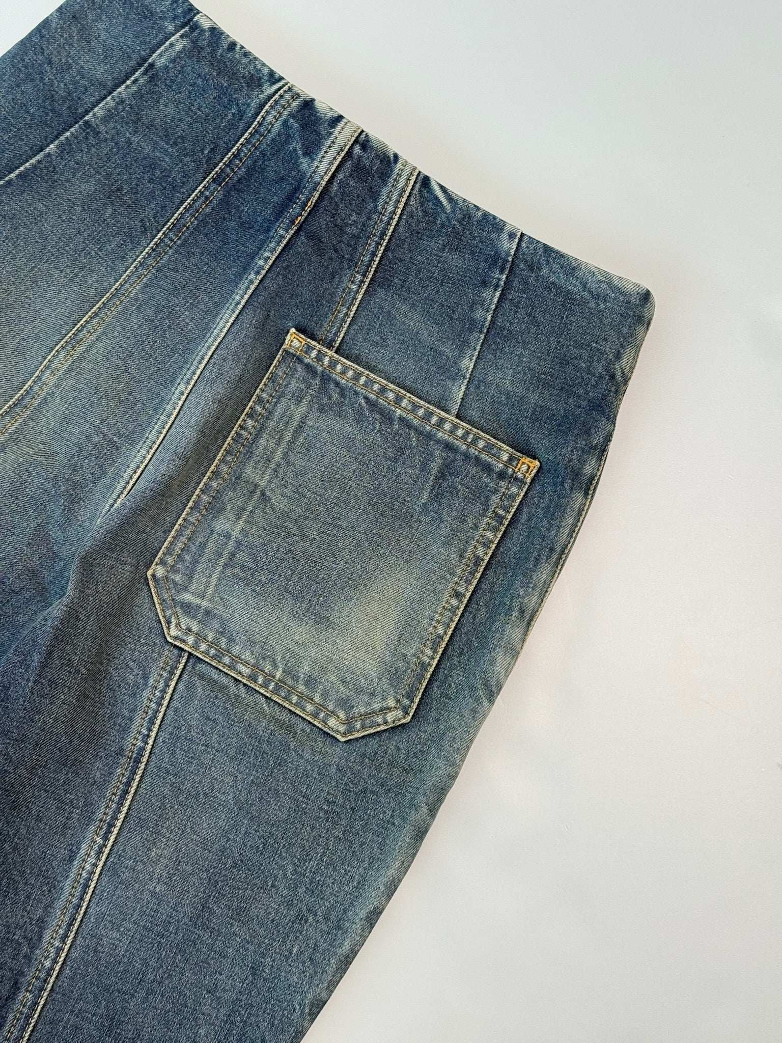 Ambush flared jeans feature a distinctive vintage wash with bold stitching that slims the silhouette. This style combines '70s references with a modern, sophisticated design, perfect for creating bold, on-trend looks. Crafted from high-quality denim, they offer a comfortable yet structured fit, ideal for pairing with both ankle boots and sneakers.